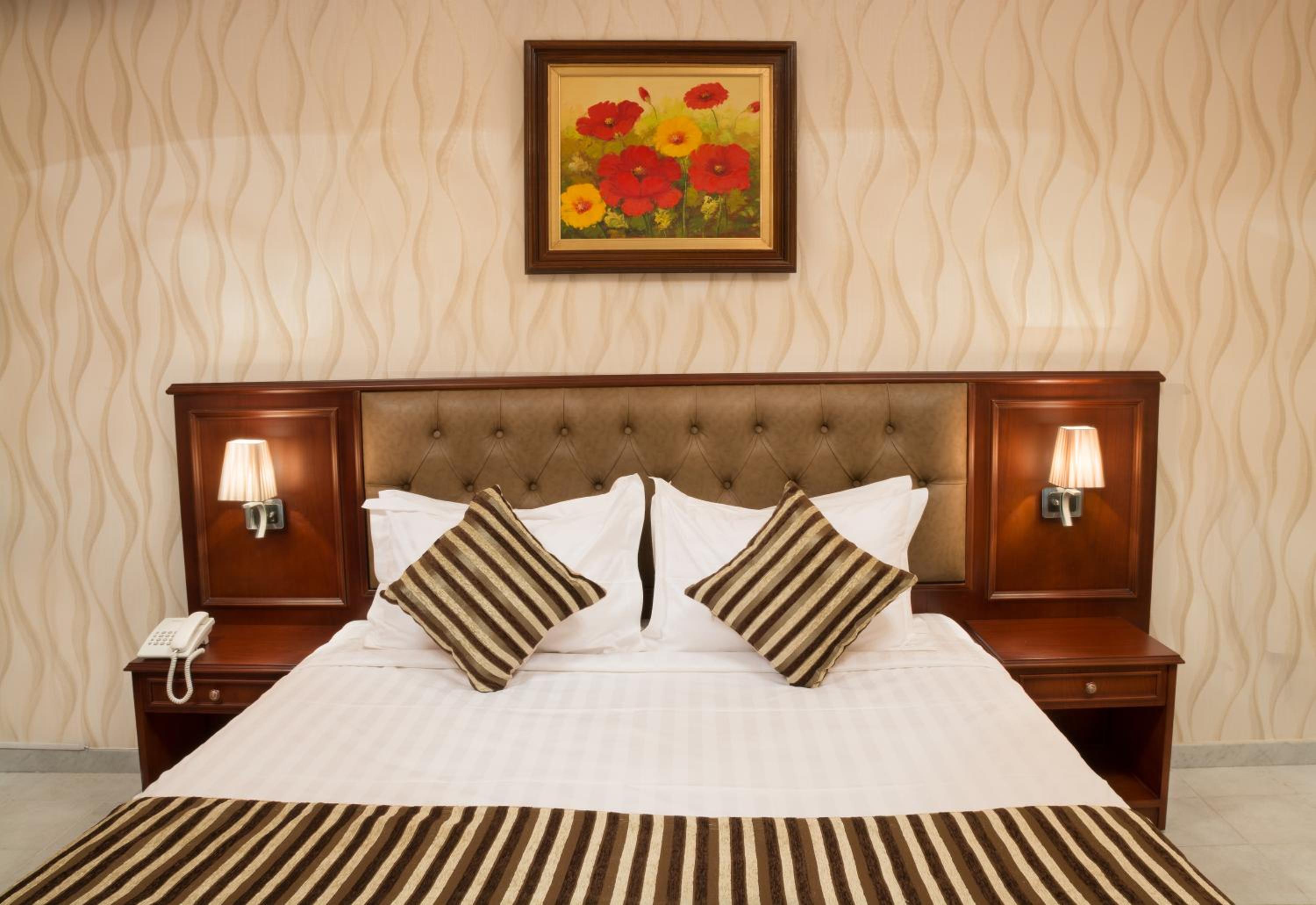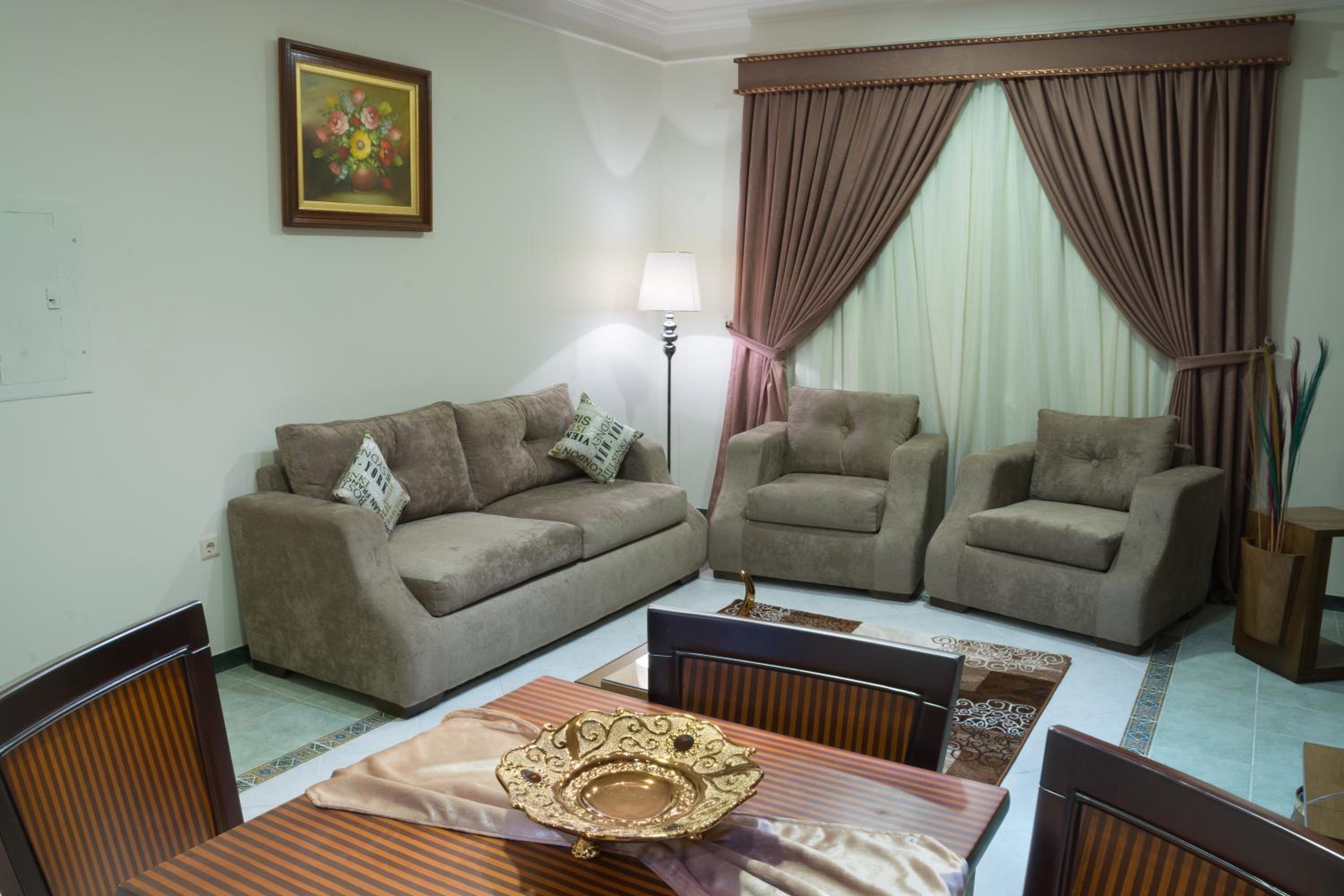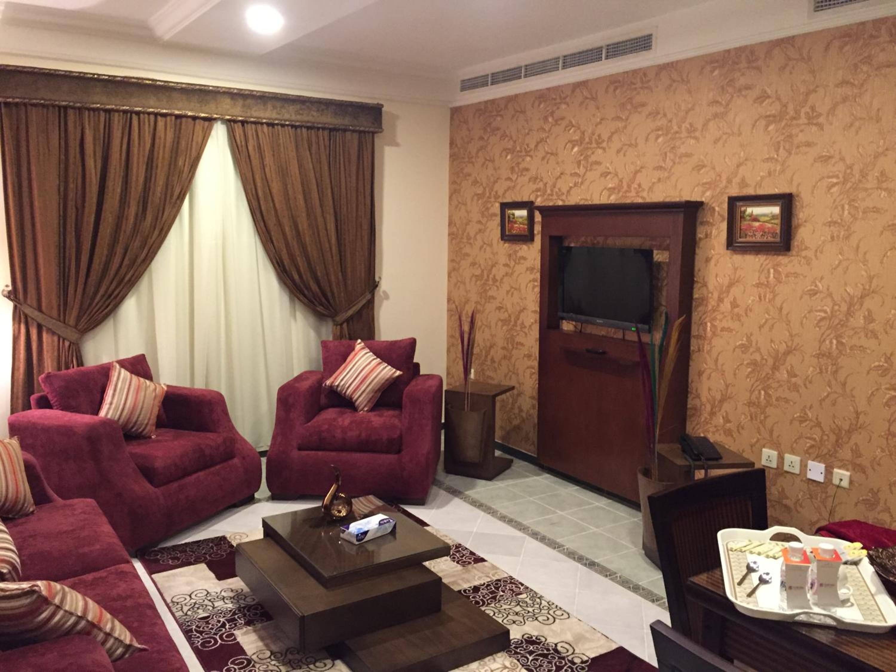 Safari Hotel Apartment offers spacious suites adorned with traditional sofas and wooden furniture, providing a cozy and authentic atmosphere for guests. Each suite features a full kitchen, dining area, and living room for ultimate comfort and relaxation.