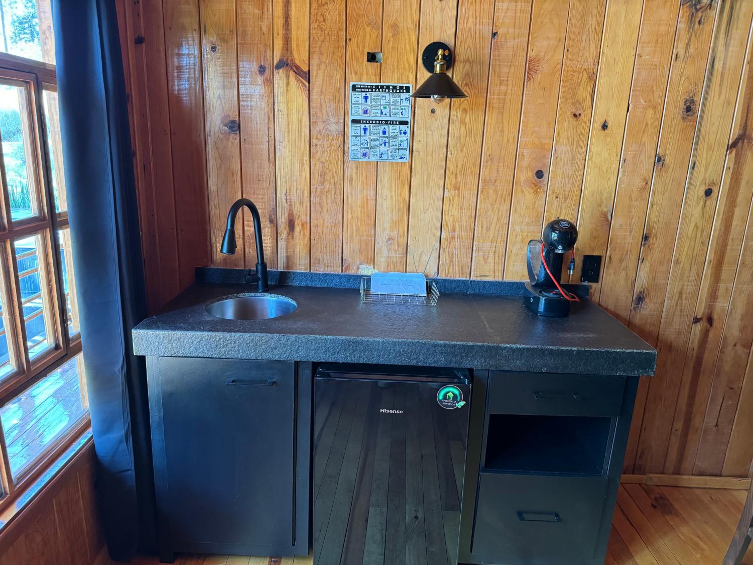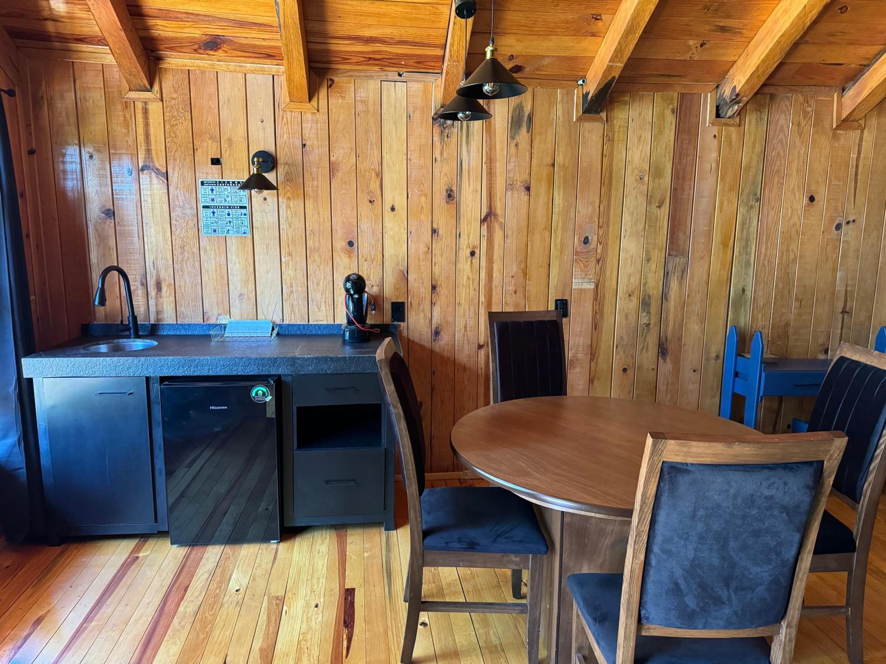 La atmósfera de cabaña en medio de bosque es lo mejor.