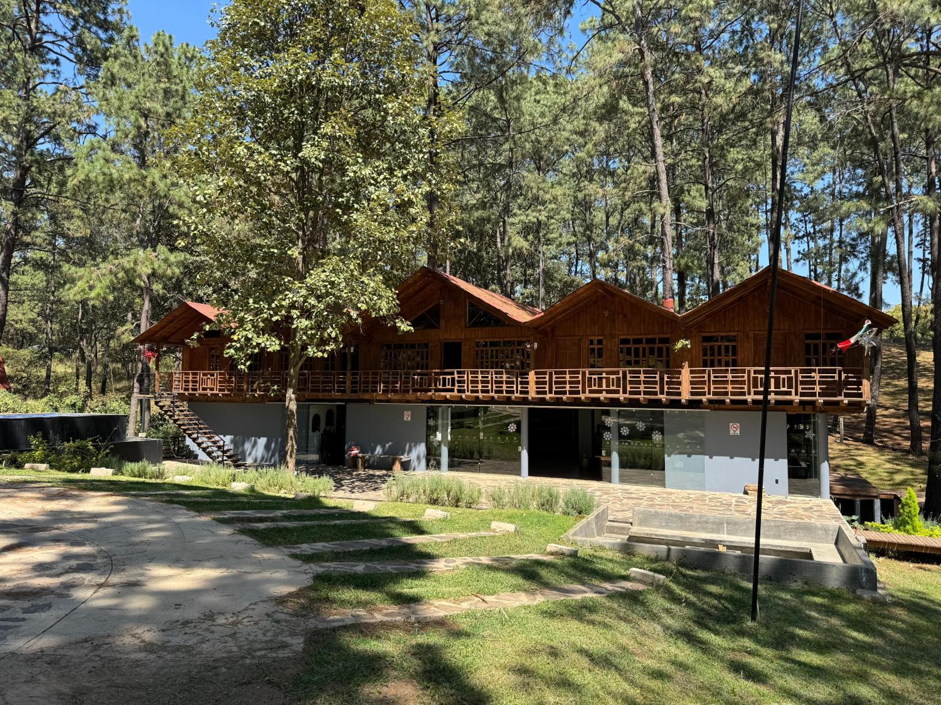 Guests can unwind in the hotel's outdoor swimming pool or stroll through the lush garden, perfect for a peaceful retreat surrounded by nature. Whether enjoying a refreshing swim or simply basking in the serene atmosphere, relaxation is guaranteed at PINE TREE Mazamitla.