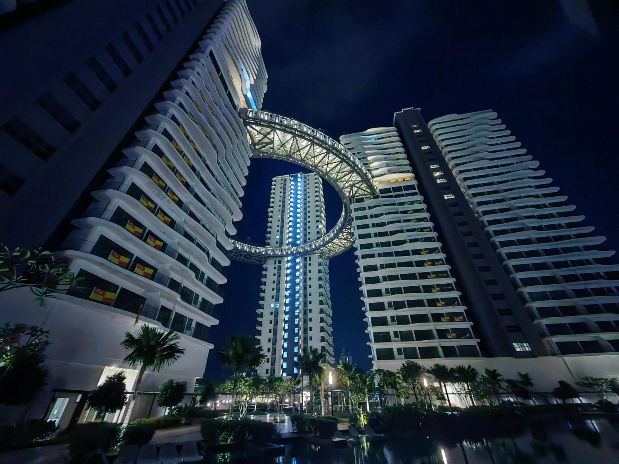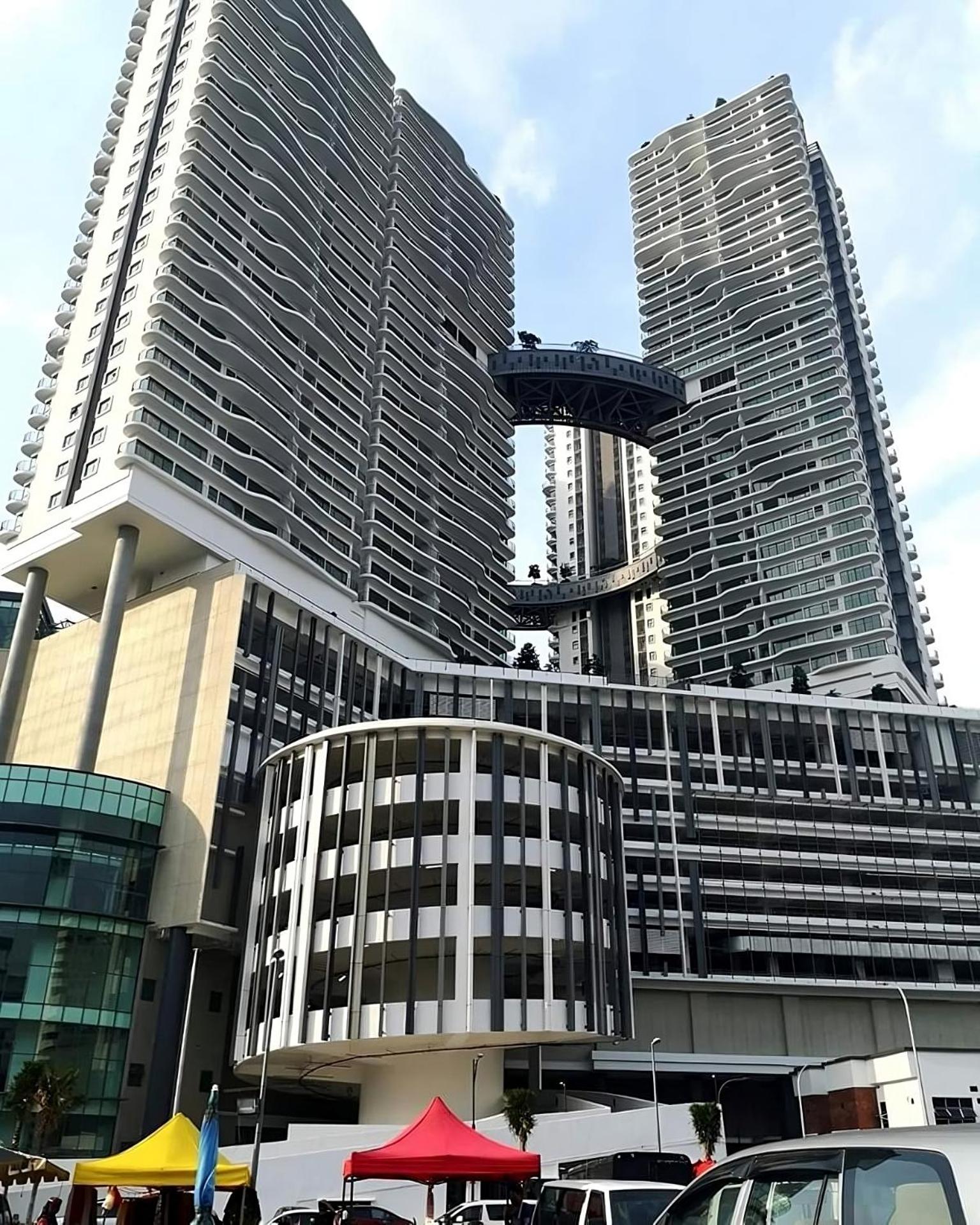 1. Excellent location! Mall below it with good food. Big pasar malam next to it.