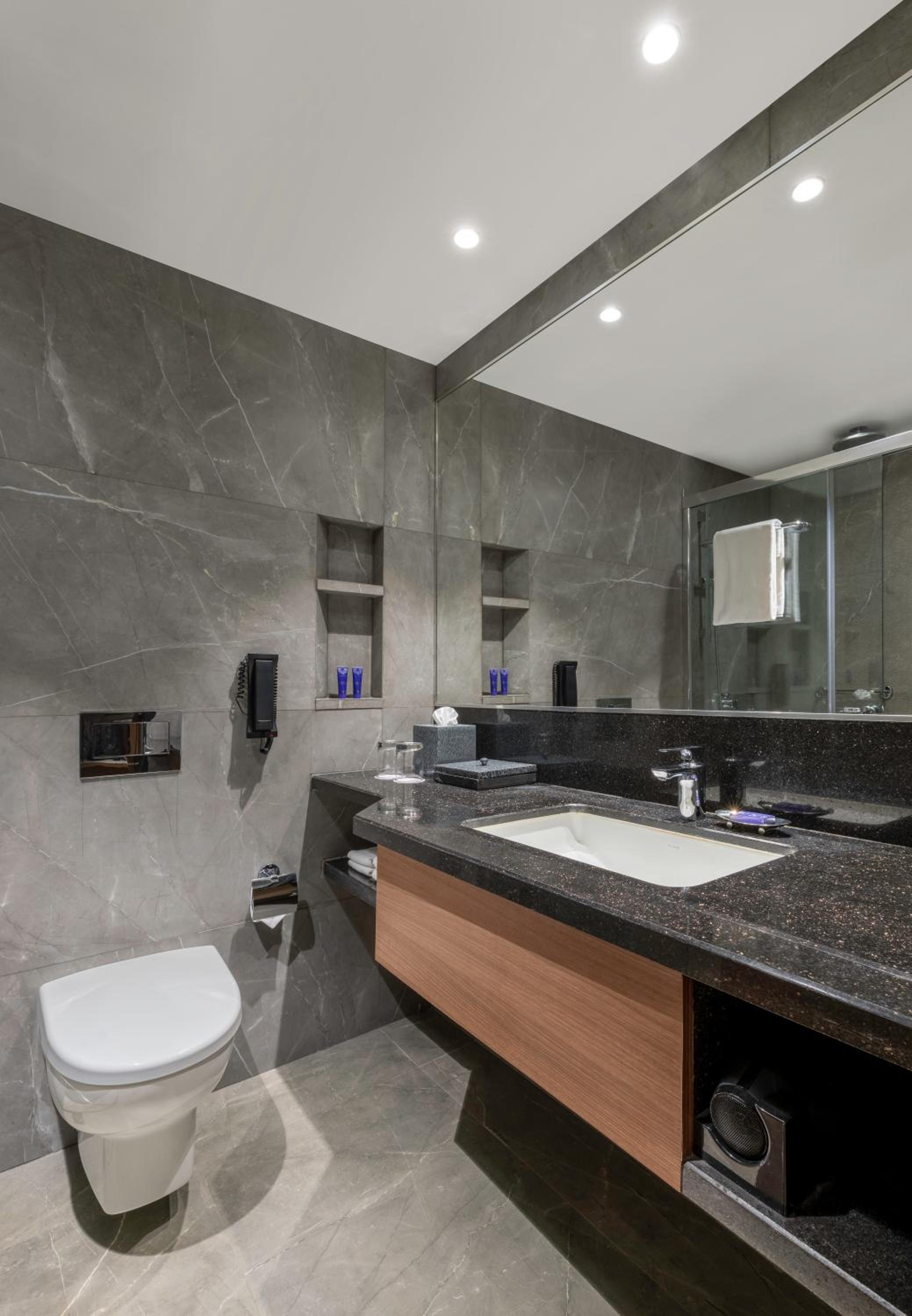 Stay in our modern, air-conditioned rooms featuring a flat-screen satellite TV, minibar, and complimentary tea/coffee making facilities, ensuring every comfort at your fingertips. Selected rooms offer added security with electronic safes and indulgent en suite bathrooms with bathtubs.