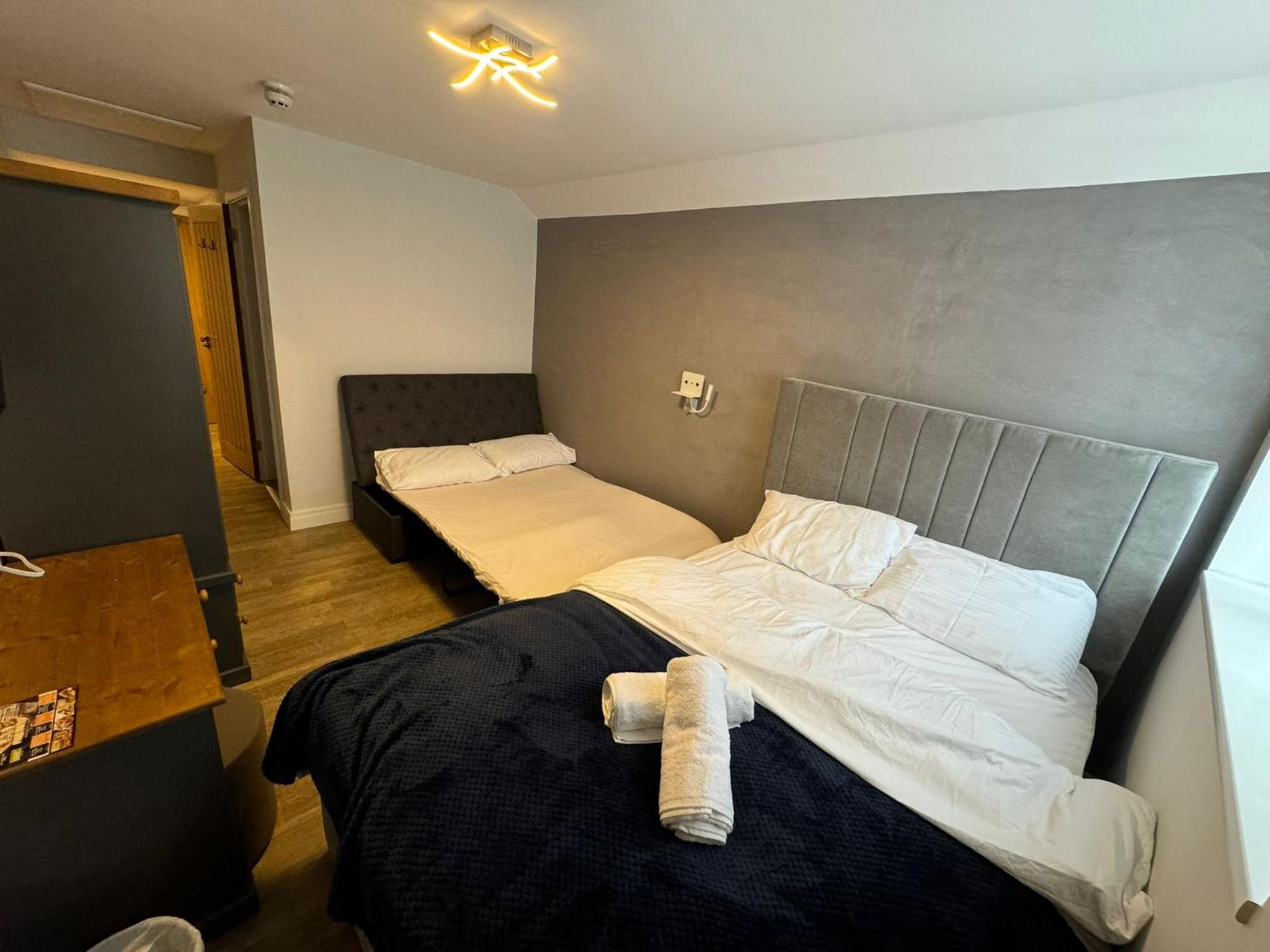 Stayed in room 2. Very loud getting into accommodation with footstepsamd doors banging. Heating wasn’t working & no hot water so no shower in the morning. The hot tub is a nice touch but didn’t use as £25 an hour extra seems a bit steep even though we usually pay that price for a exclusive private hot tub. I see the idea but didn’t grasp it for us.