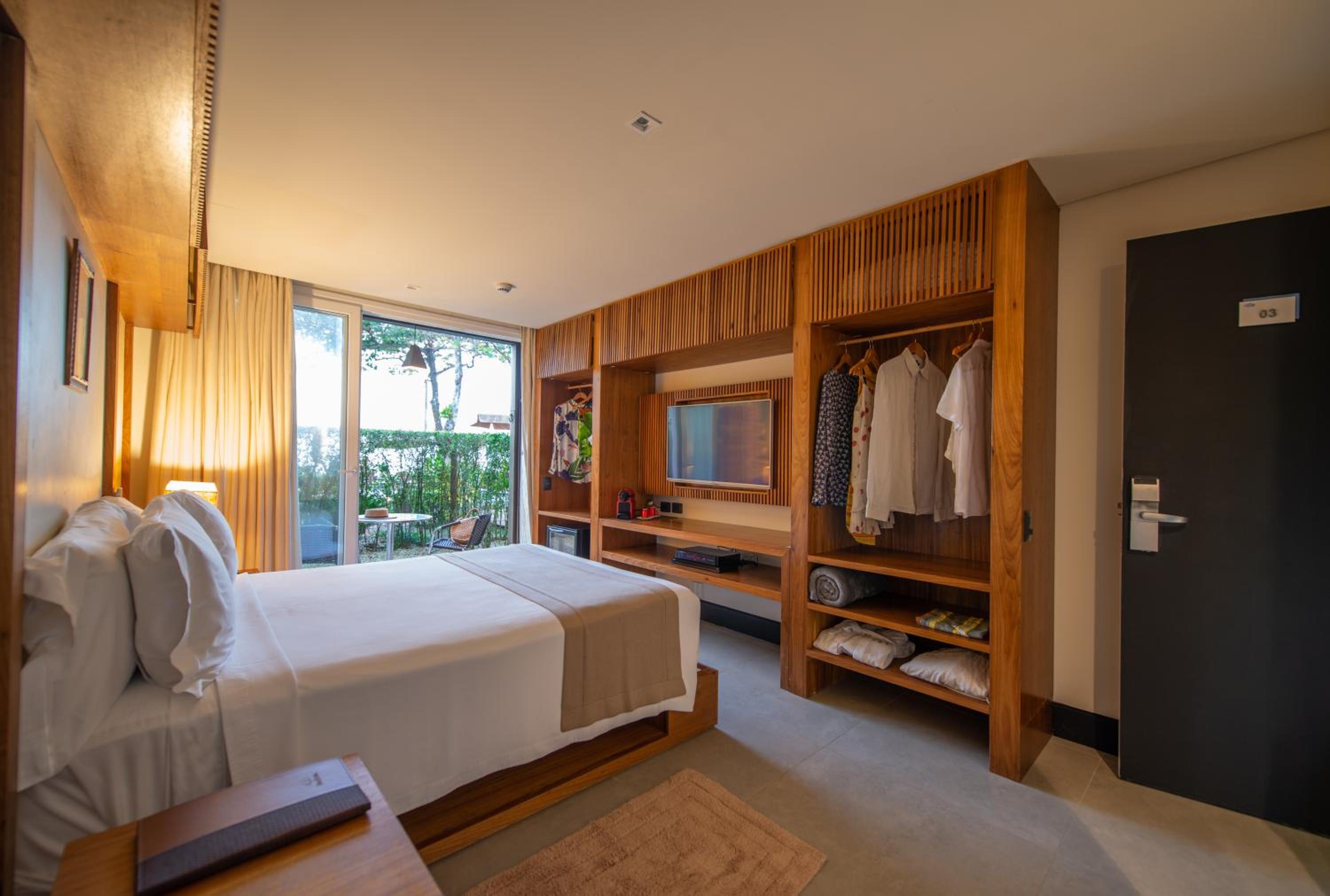 Atendimento dos funcionários é excepcional. O quarto é bastante amplo e confortável. A área externa, pé na areia é maravilhosa. Café da manhã perfeito.
