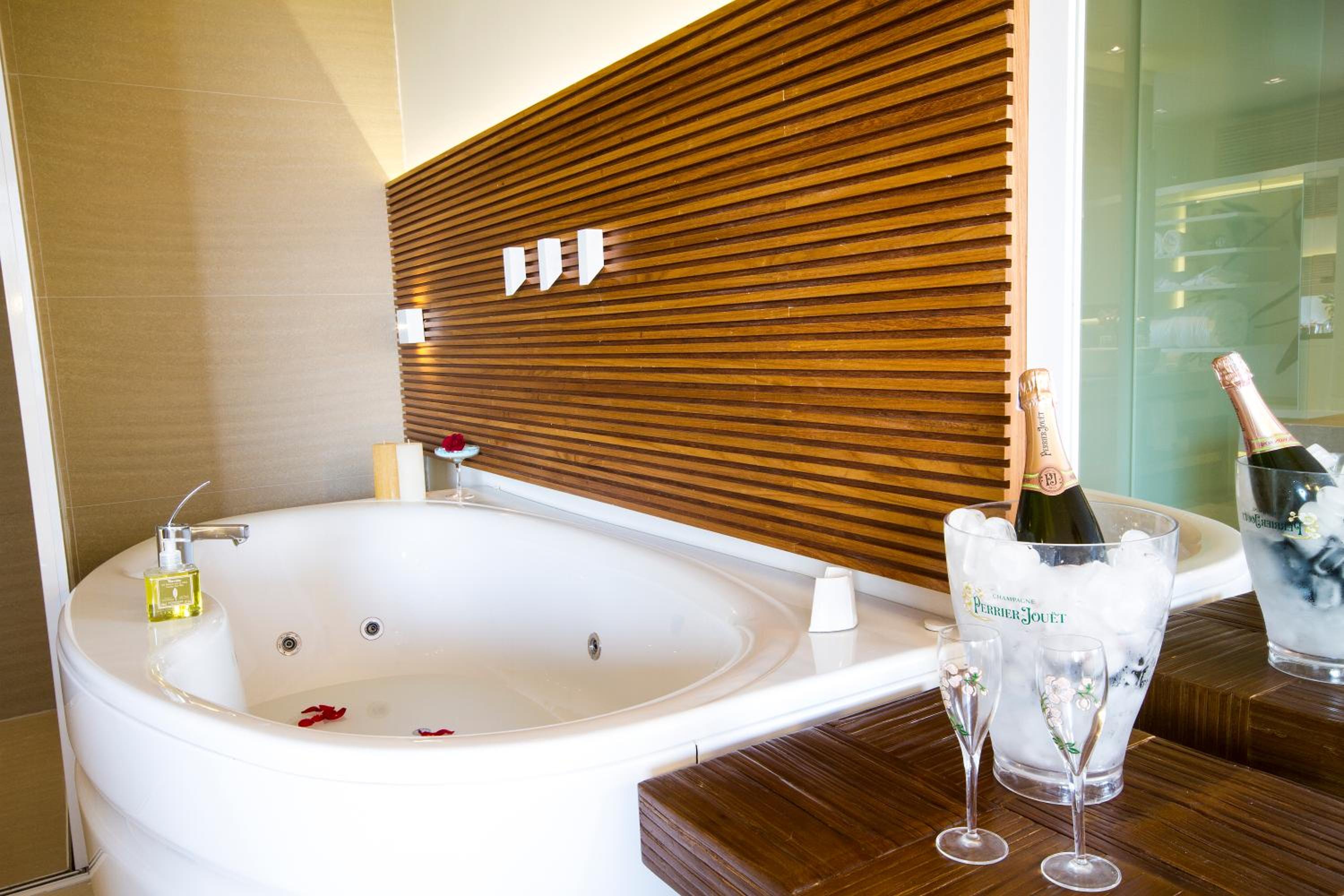 needs more shower towels in room. cushion on long chairs at room terrace and beach towels for those chairs, more options to purchase at room bar besides drinks, like chocolates, fruit bars and different kind of nuts. needs sleepers to walk in room and the toilet inside a glass to in front of bed and sharing the glass with showers very emberassing. not romantic at all. the staff amazing. but the jacuzzi was not workinh with hot water close to the pool.