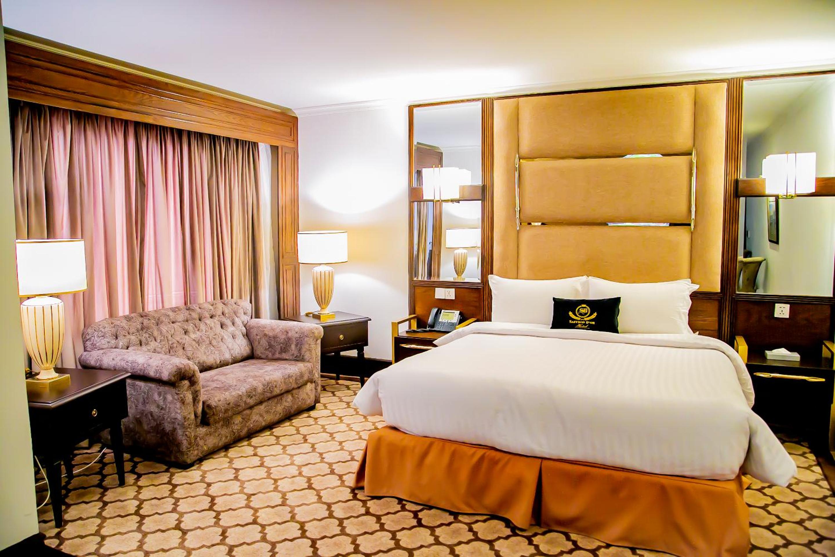 Saffron D'or Hotels, located in Lahore, offers a luxurious stay with top-notch amenities. The rooms are equipped with air conditioning, flat-screen TVs, and modern bathrooms, ensuring a comfortable experience for guests.