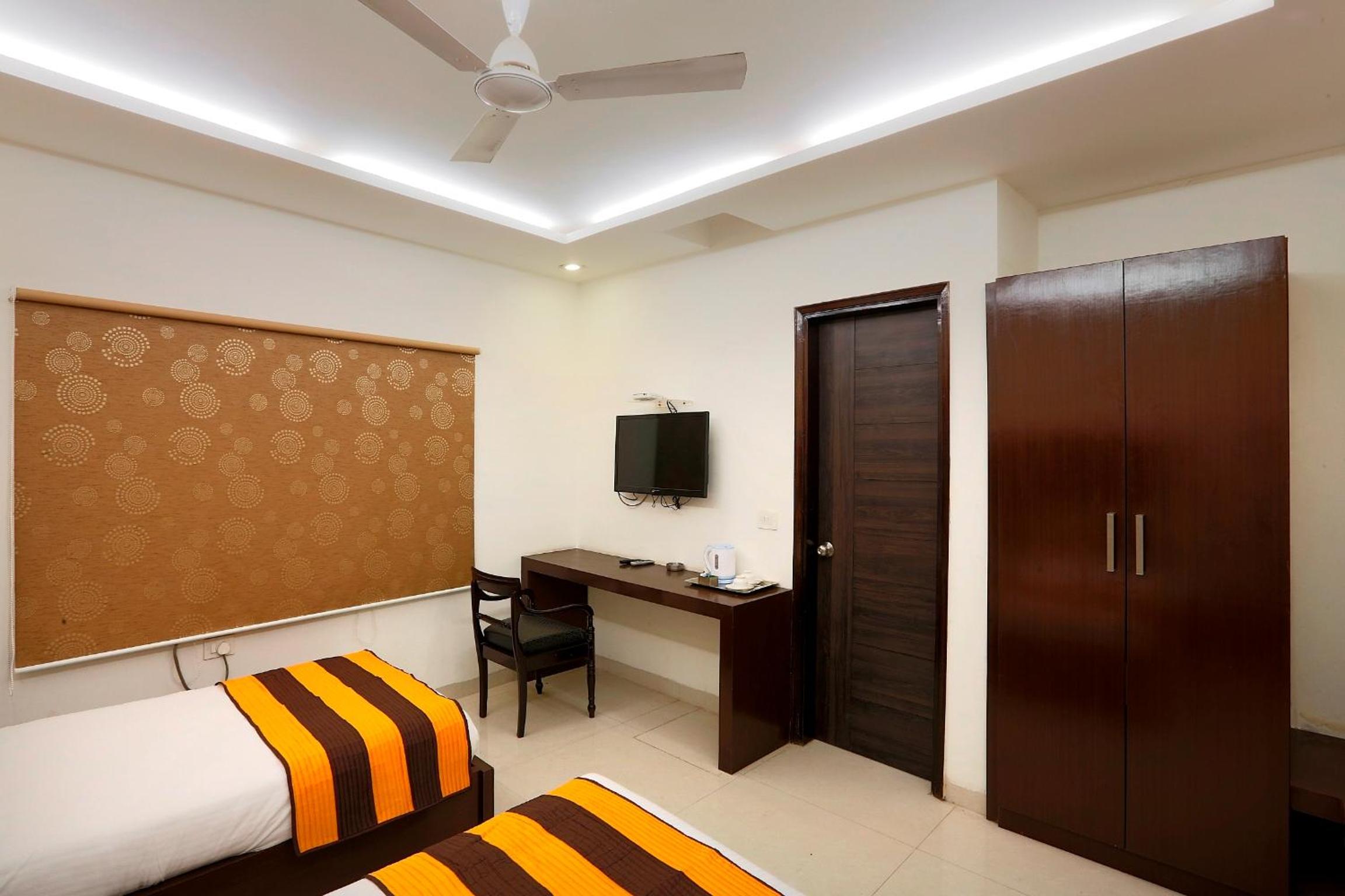 The hotel is near to Airport. Staff is polite. Rooms are cleaned daily. Value for money. Complimentary breakfast Is available. and that has a variety of food. Overall a good friendly hotel. They provide cabs on payment basis. The chair and a desk in room are helpful for work