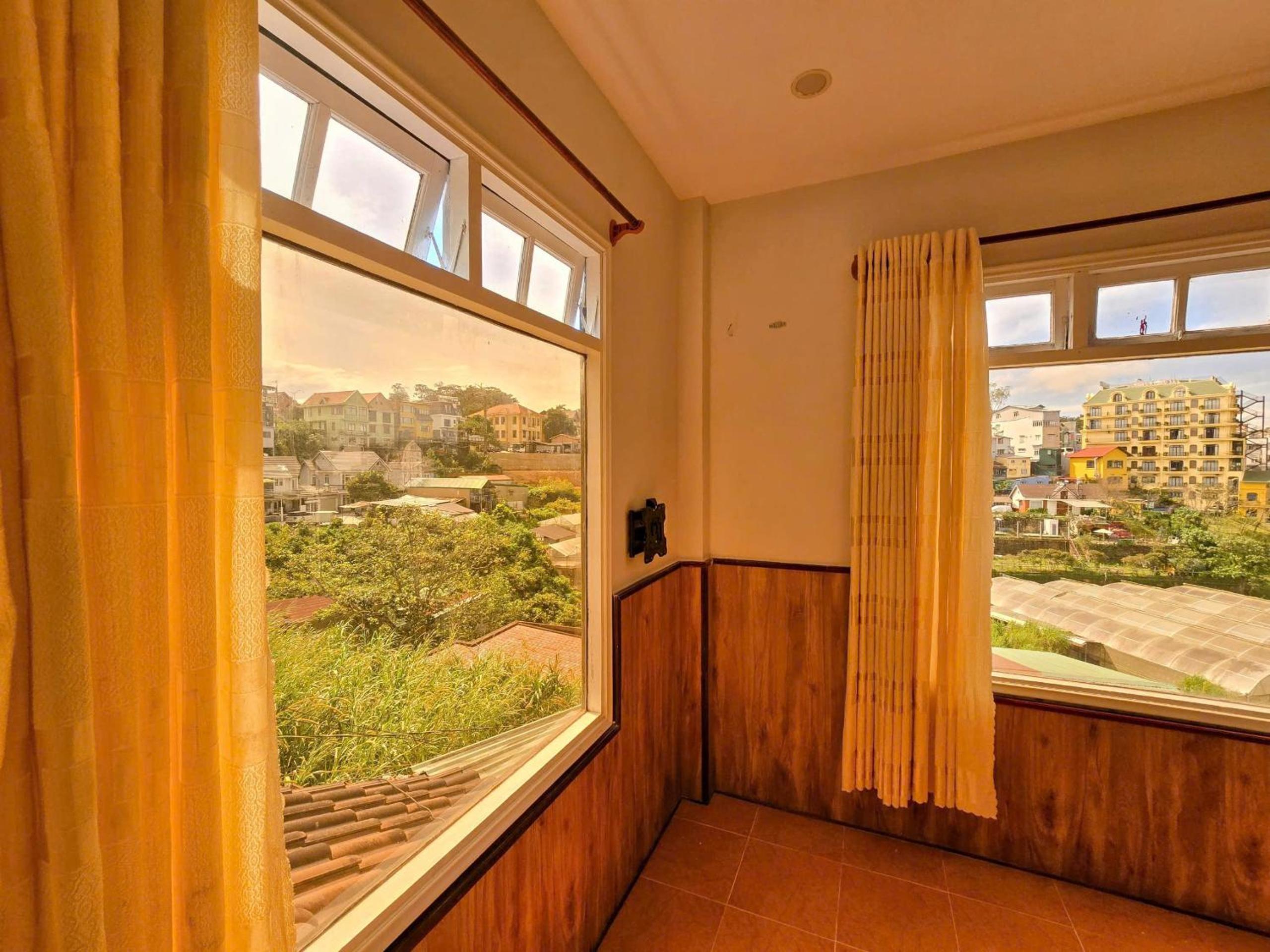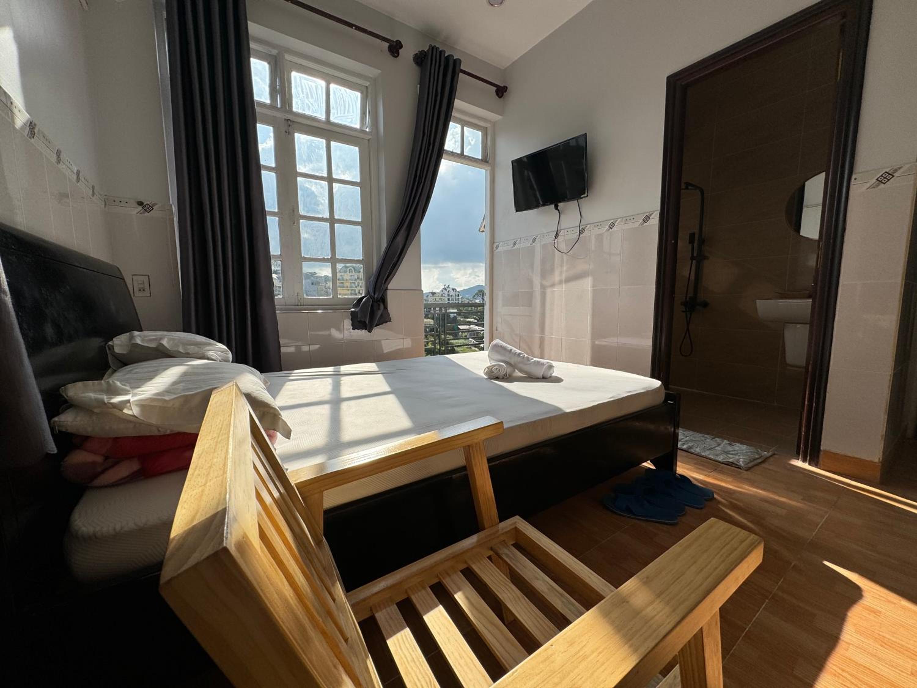 Comfortable Accommodation - Enjoy a comfortable stay in rooms featuring a balcony with city views, perfect for unwinding after a day of exploring Yersin Park Da Lat and Lam Vien Square.
