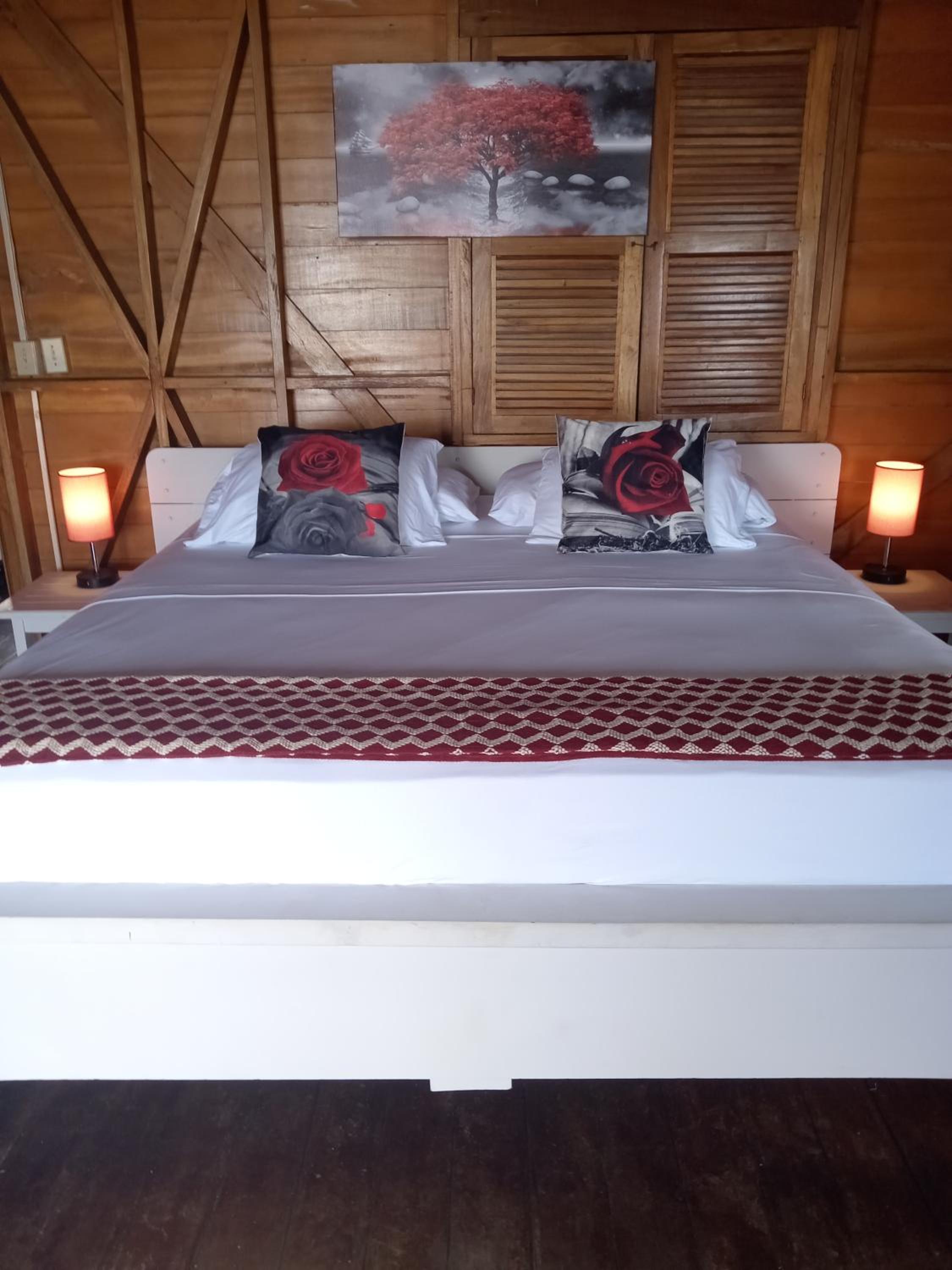 La habitación deja que desear, no salía agua caliente siempre. La mosquitera estaba rota y nos comieron los mosquitos. Mucho ruido, ya que todo es de madera, cada vez que entra alguien se oye, si estornudas se oye, absolutamente todo.