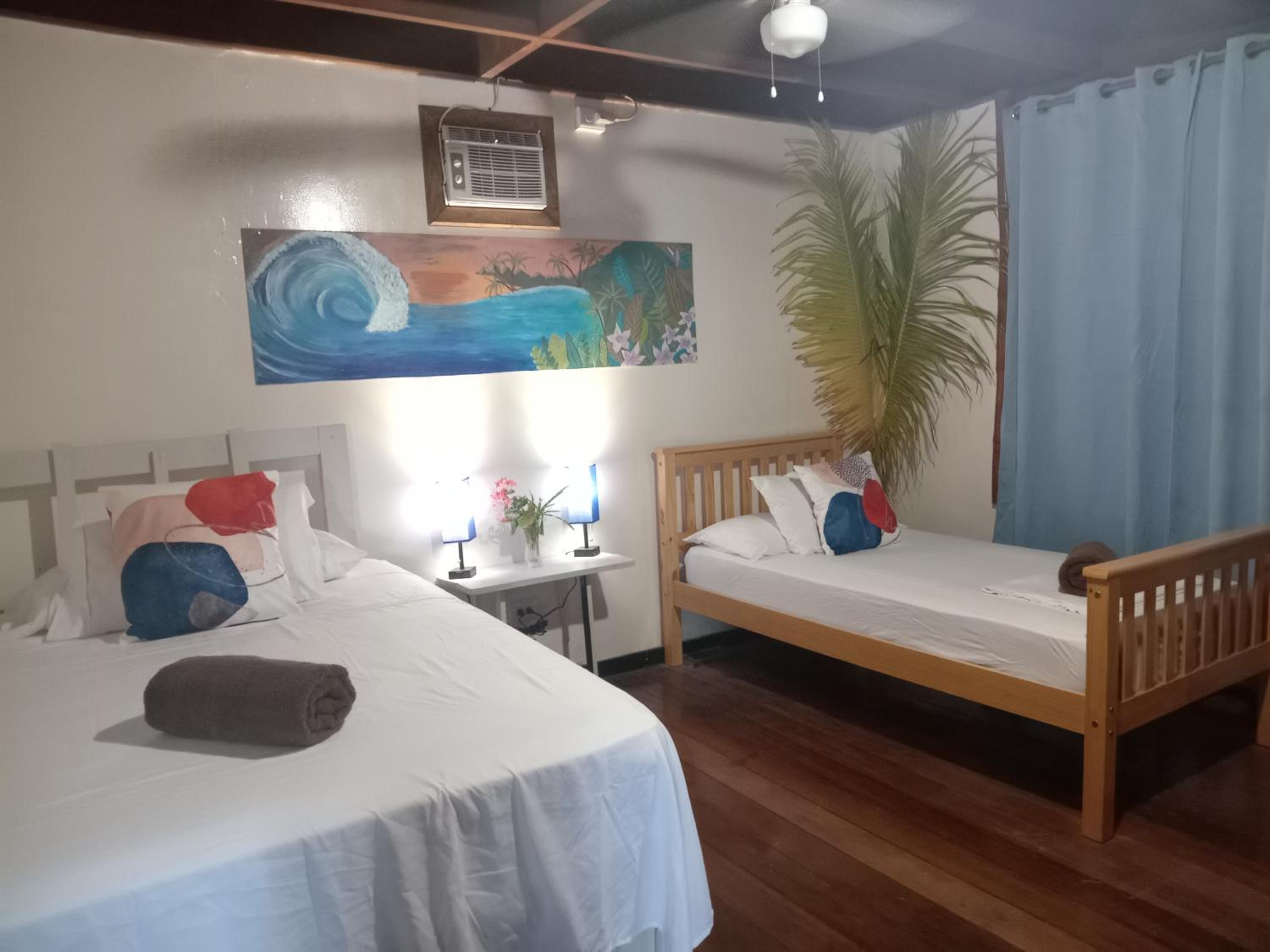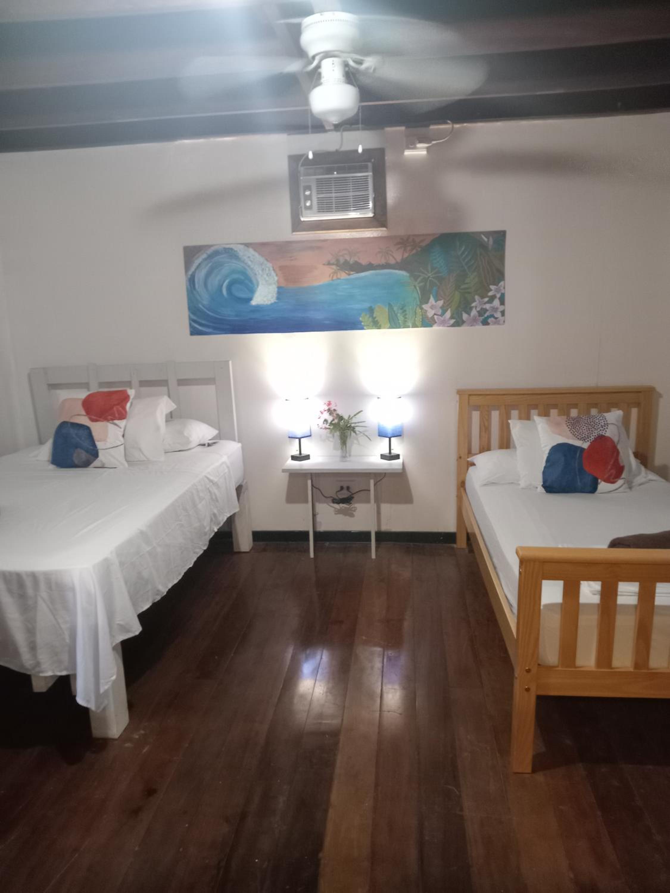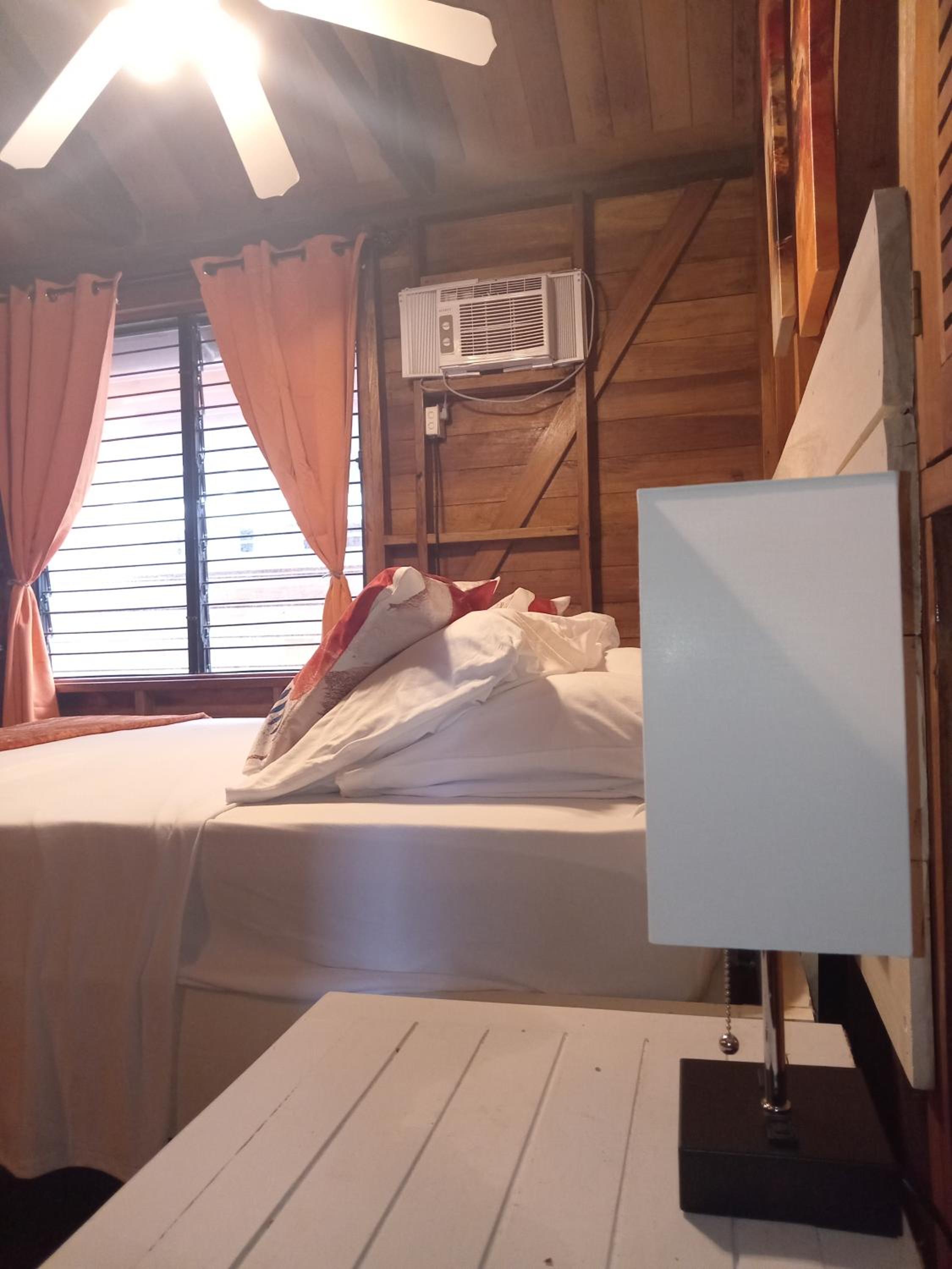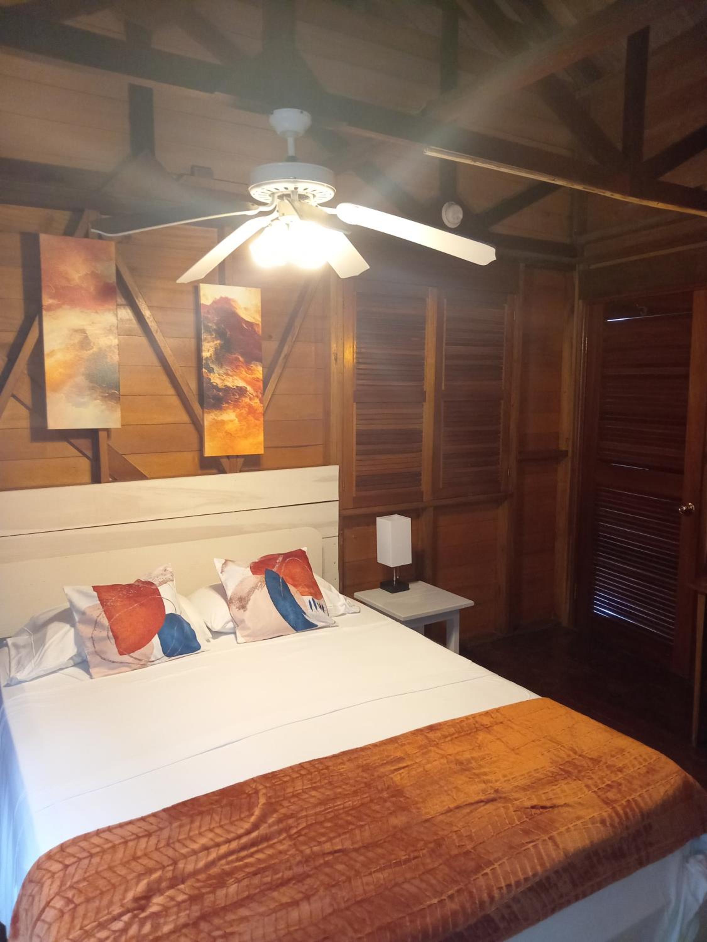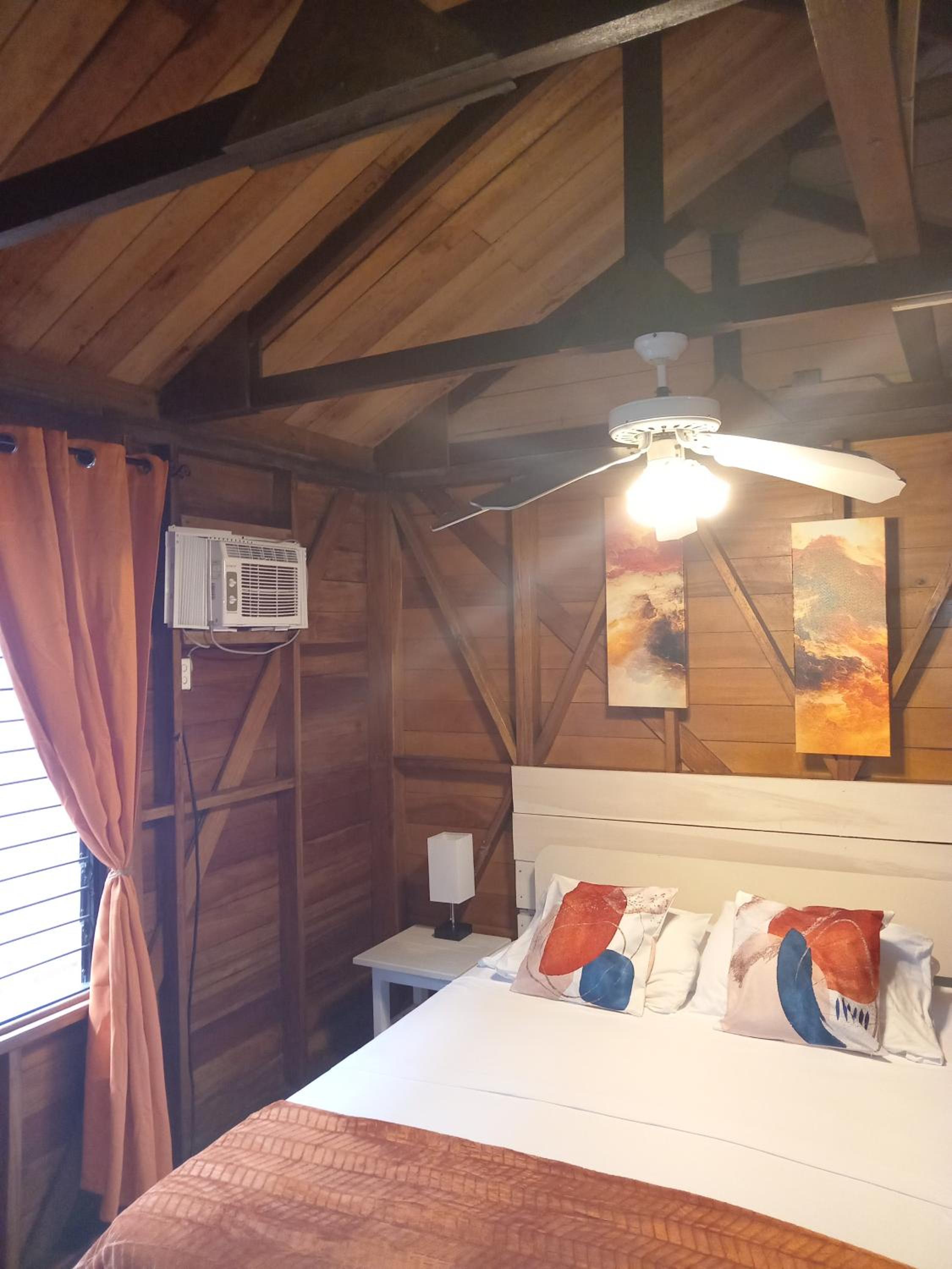 Cama enorme, cómoda y viendo y oliendo el mar! Buen ventilador de techo, algo viejo tal vez pero con potencia!