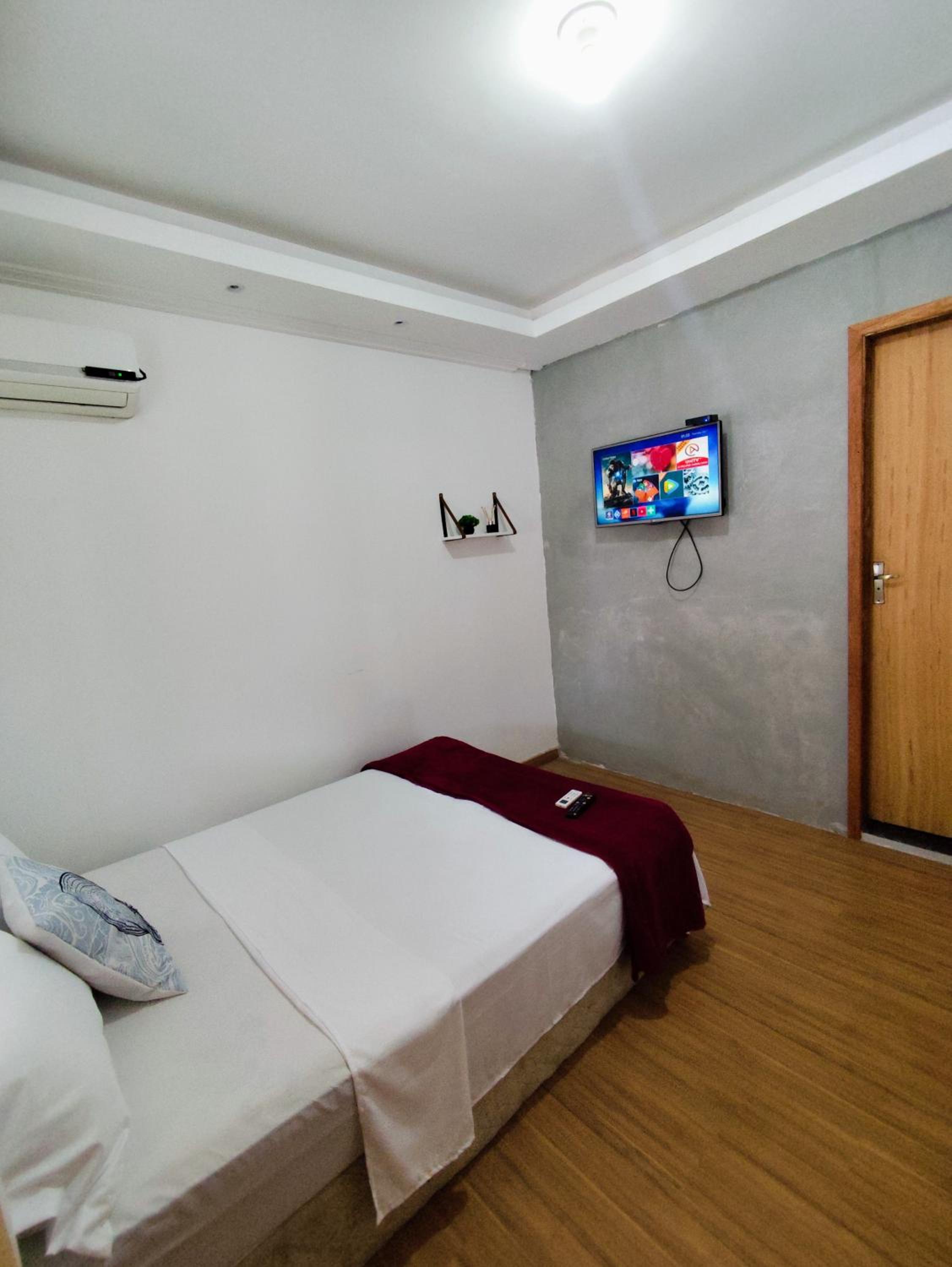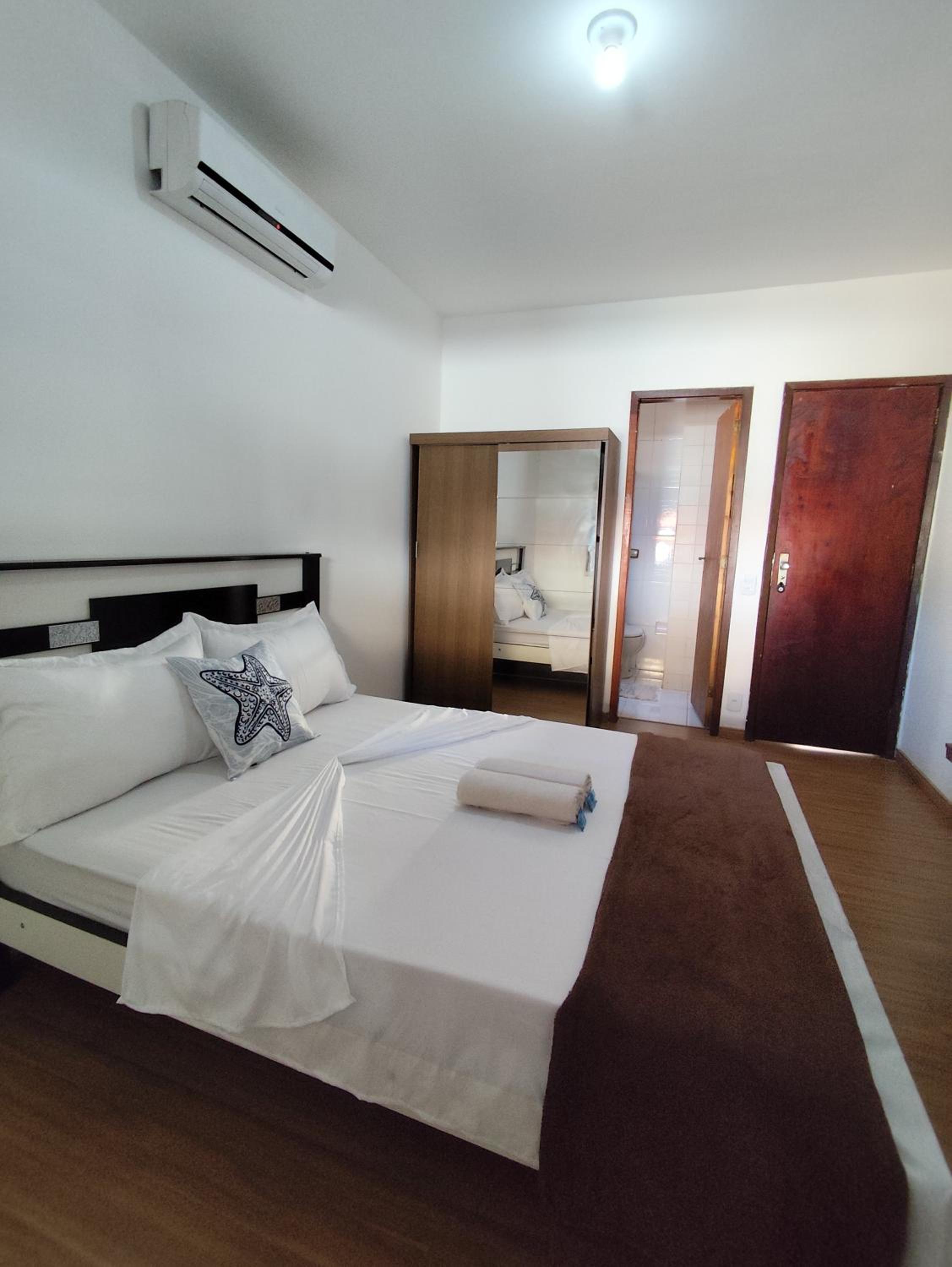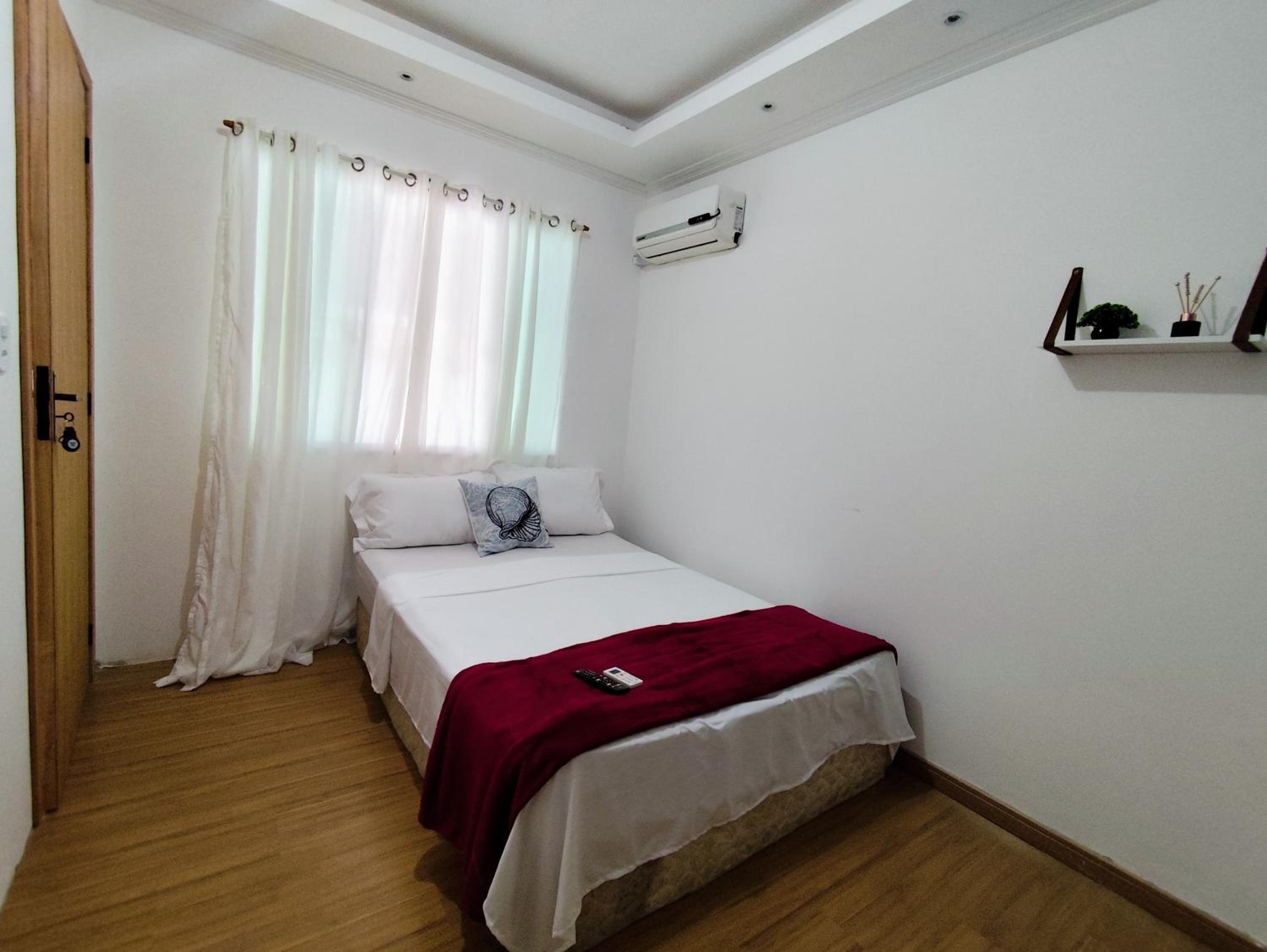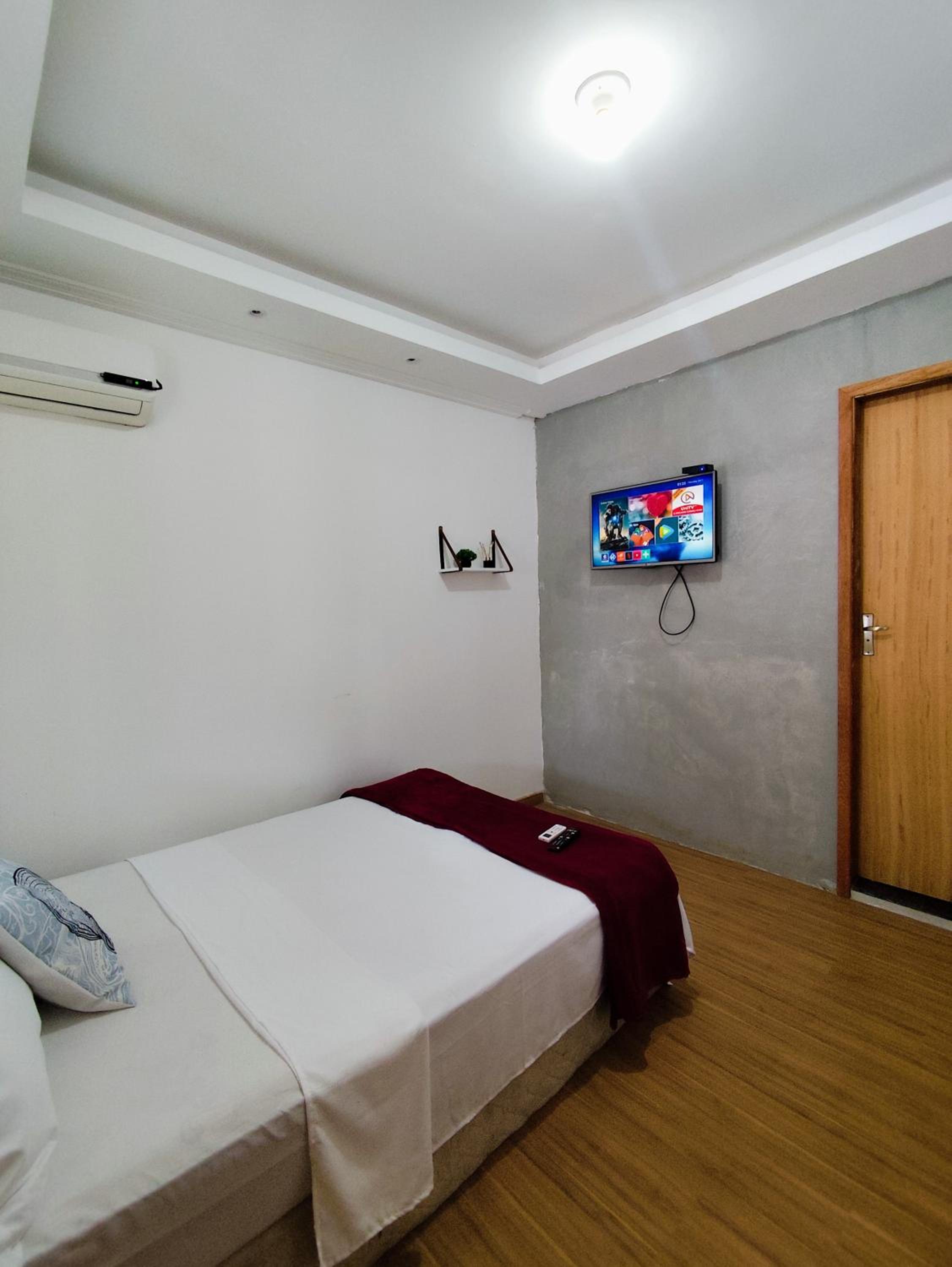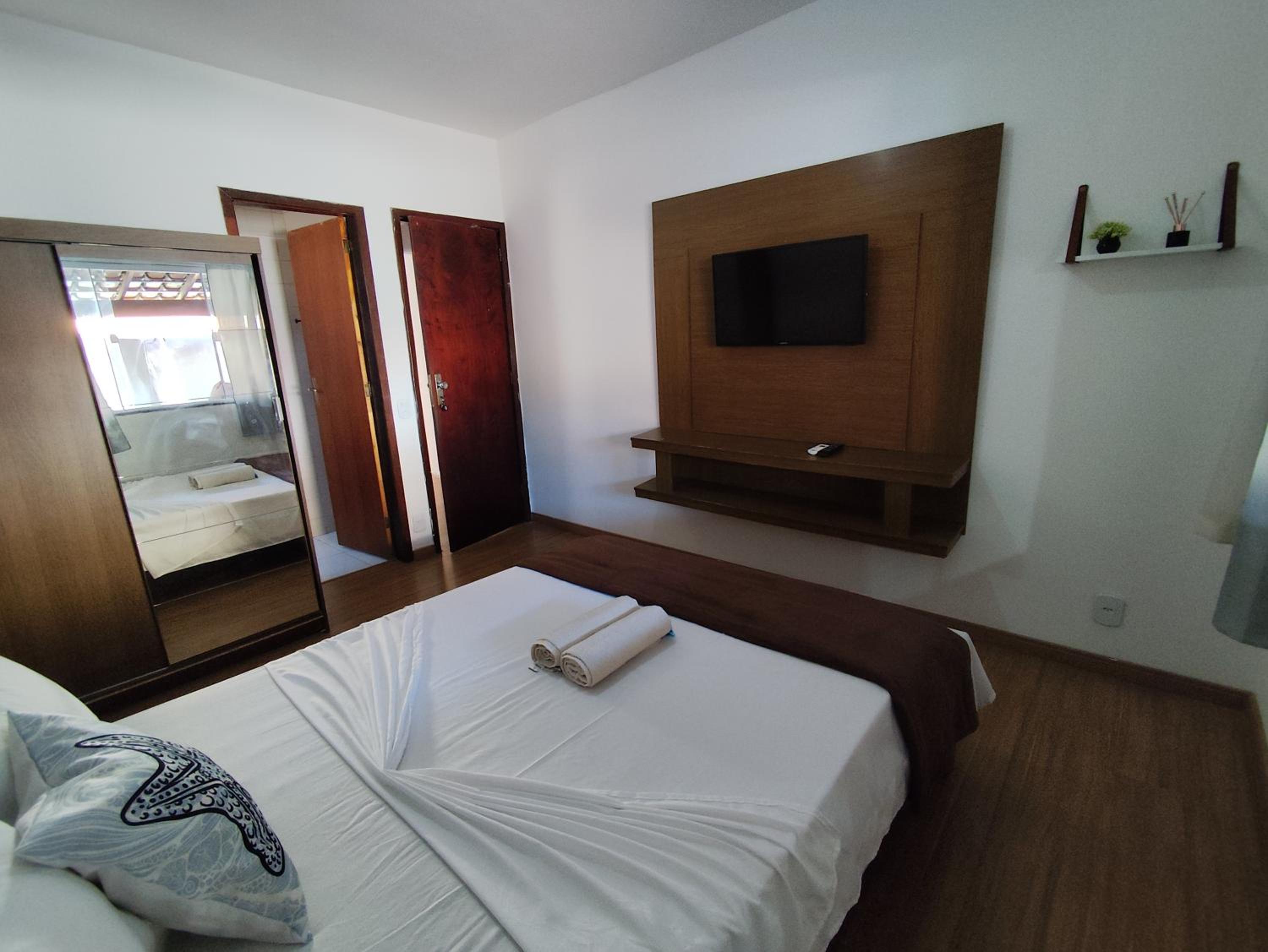 Sugestão: O quarto poderia ter um local para apoiar a mala ou uma cadeira de apoio para organizar as roupas.