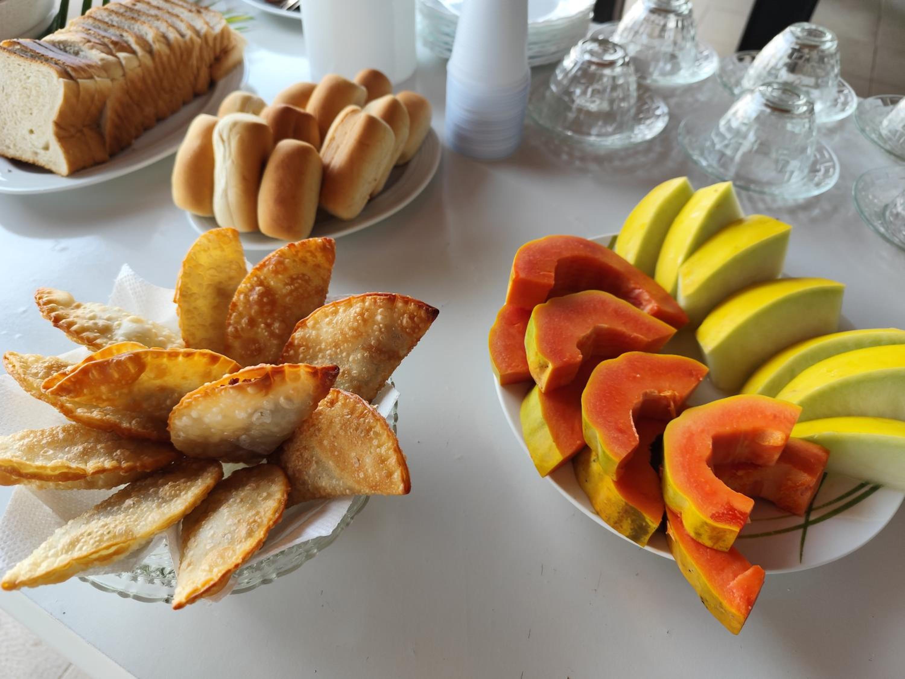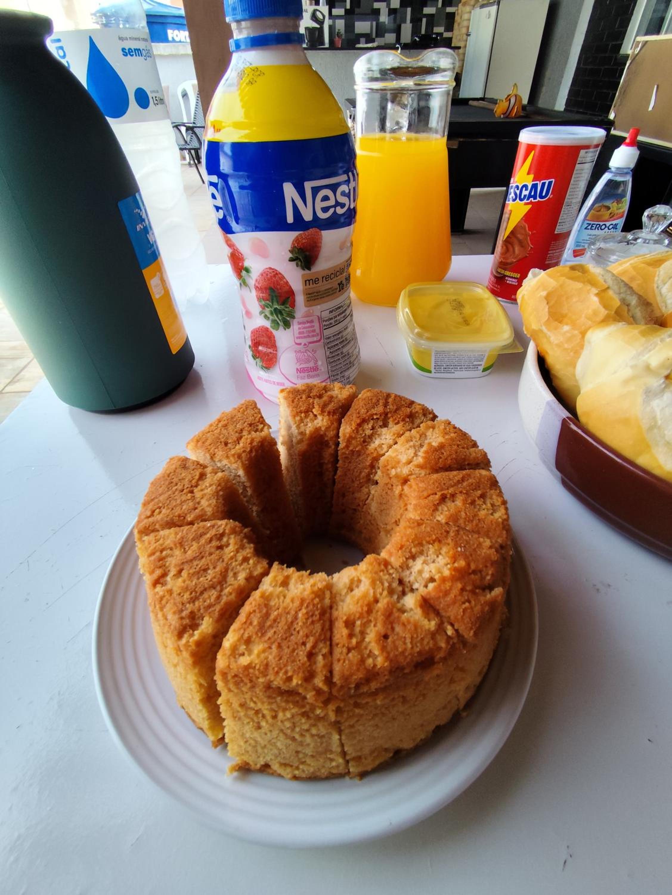Café da manhã simples, porém muito gostoso. Ambiente extremamente limpo e organizado.