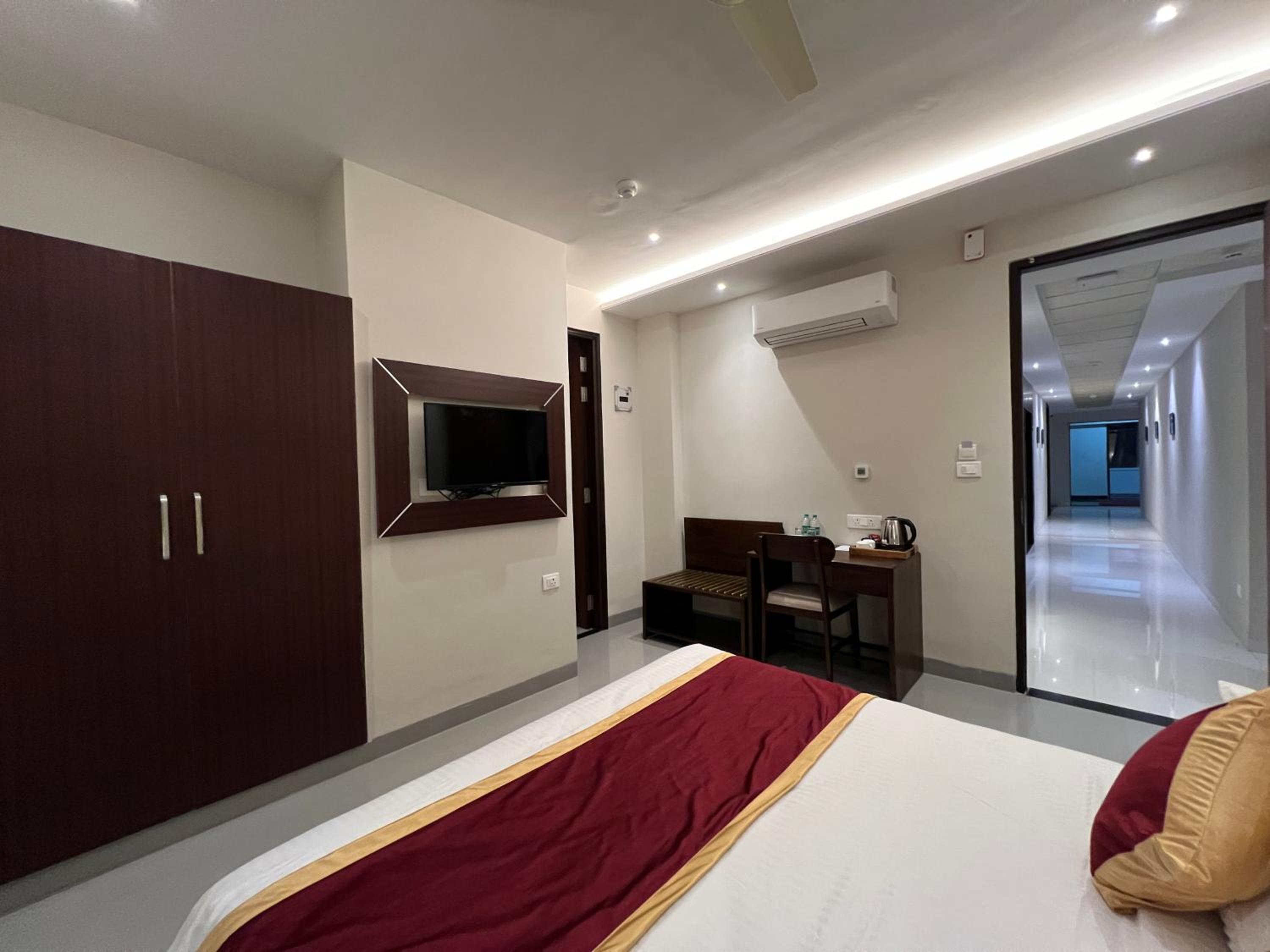 Guest rooms are equipped with modern amenities including flat-screen TVs, air conditioning, and private bathrooms with free toiletries.