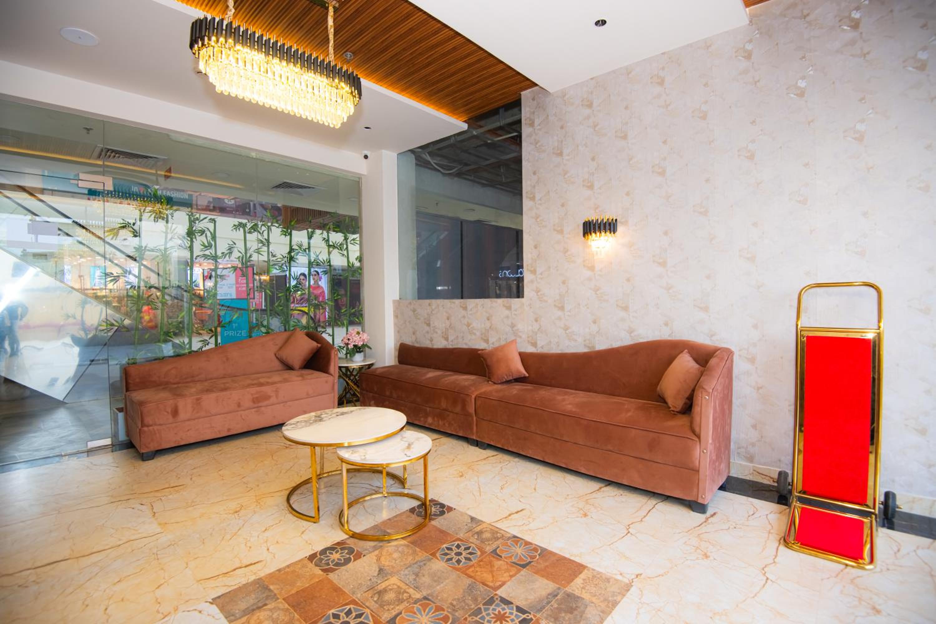 The hotel is conveniently located at the Mall of Avadh on Niyawan Road, Ayodhya. The location is a big plus, with several popular brands and attractions nearby such as Dishoom Cinema (like PVR), Masala Food Court, Meena Bazaar, Pizza Hut, Pantaloons, Market 99, and a Gaming Zone. It's a one-stop destination with provisions for food, shopping, entertainment, children’s play area, and ample parking space for over 100 vehicles.