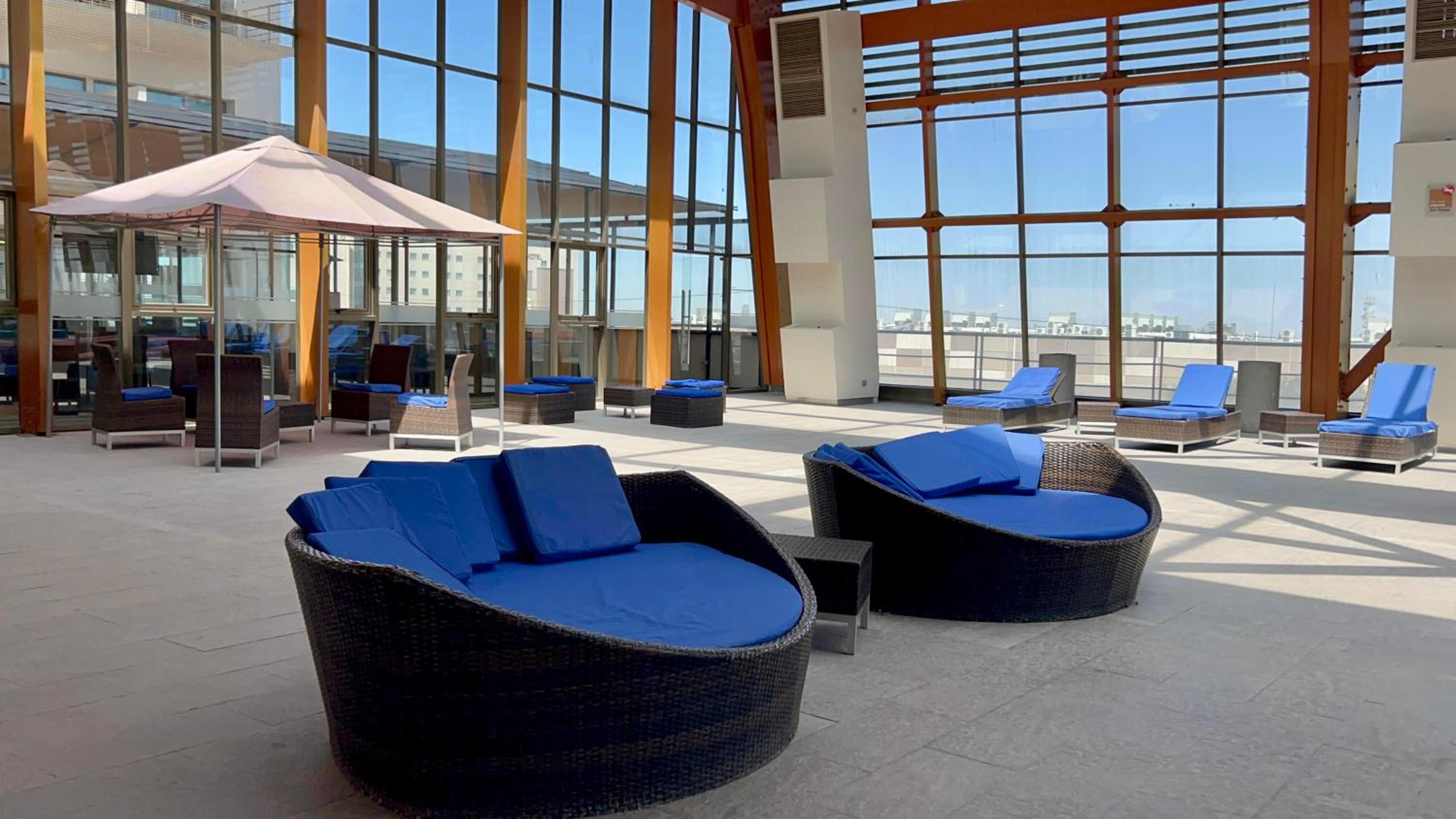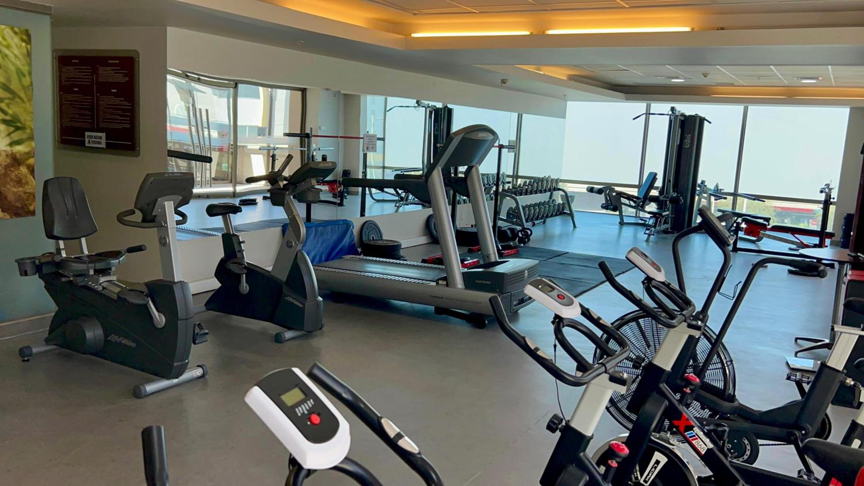 Есть спорт-зал и закрытый бассейн, но там было очень душно.