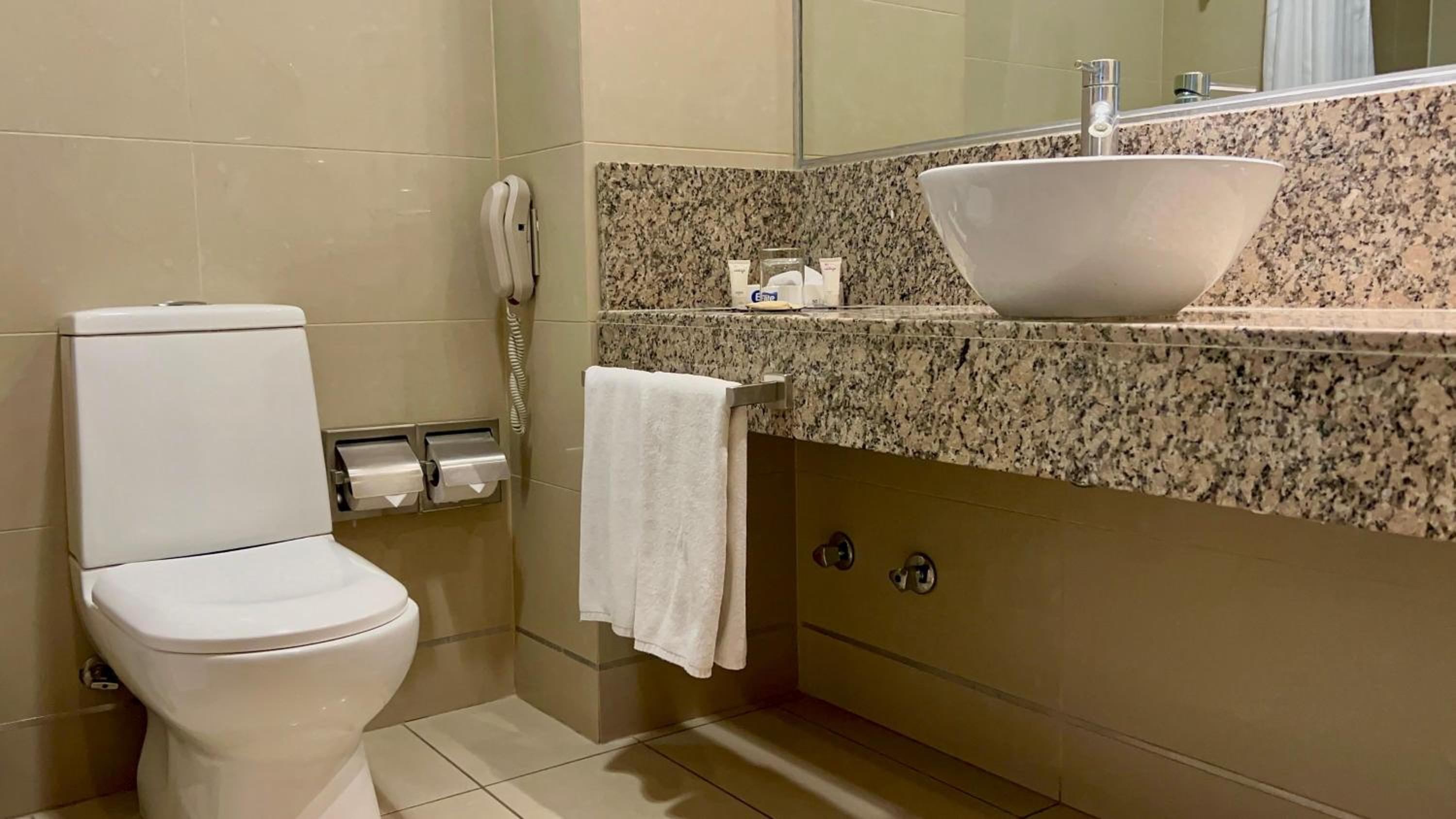 Our room was very large and had a comfortable bed. Good air conditioning. Lovely towels and sheets. Kettle in the room. The reception staff were helpful. We received a complimentary small bottle of wine and some really lovely sweet biscuits on arrival - a nice touch that left a good impression.