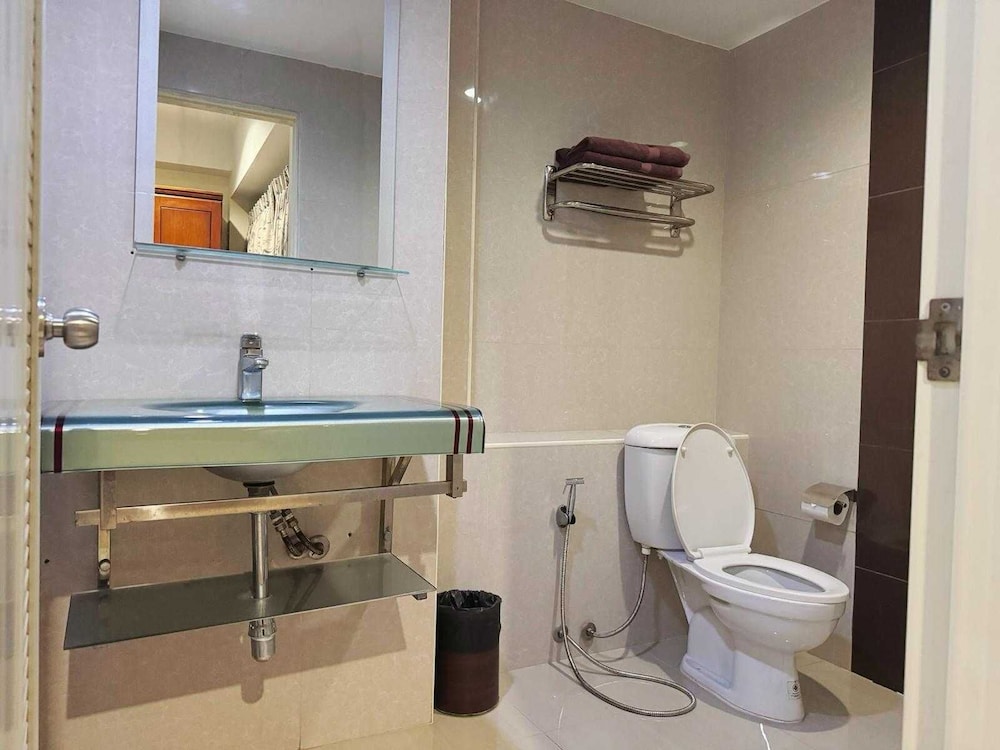 On the positive: Staff was Thai friendly. Close to MRT and a local (Tonsak) market. Two botles of water and a roll of toilet paper every other day or so.