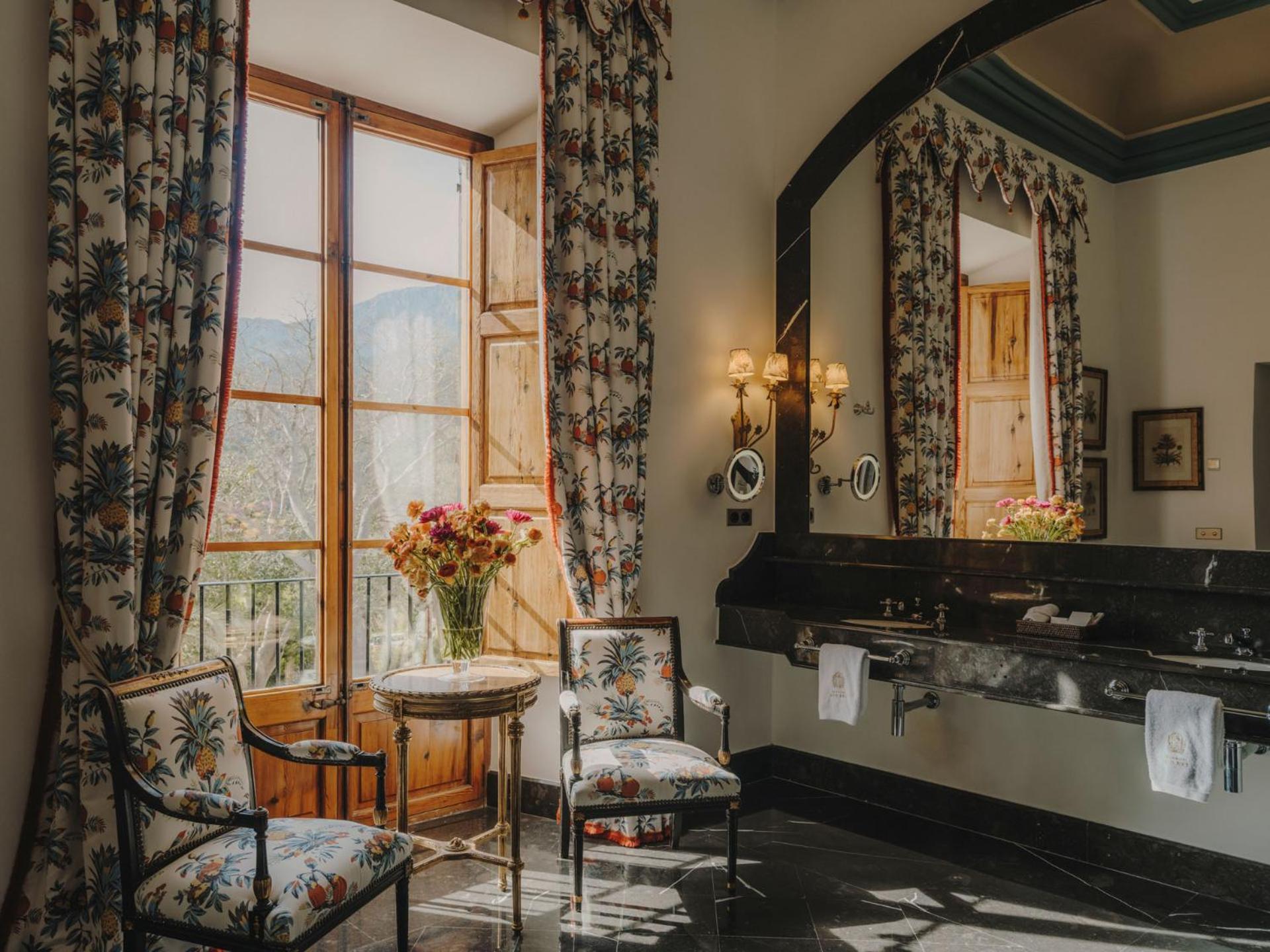 Surrounded by citrus orchards and lush gardens, overlooking the village of Puigpunyent and the mountains, the hotel offers a 30-metre outdoor swimming pool with private cabins and the gourmet MAR&DUIX Restaurant for an extra touch of luxury.