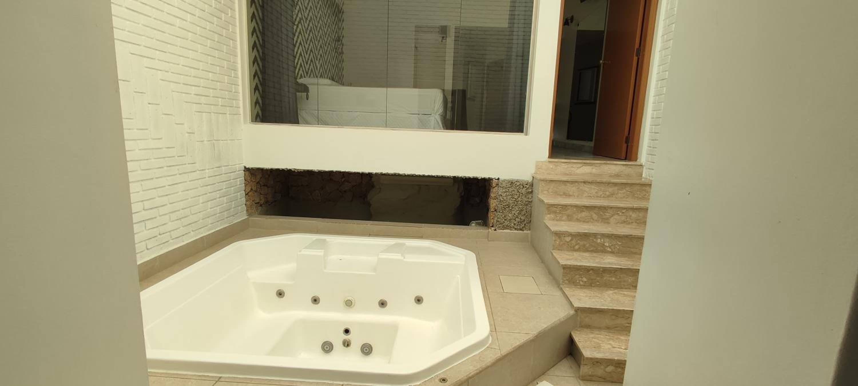 O quarto que fiquei pelo menos precisa de uma reforma urgente com paredes manchadas móveis danificados