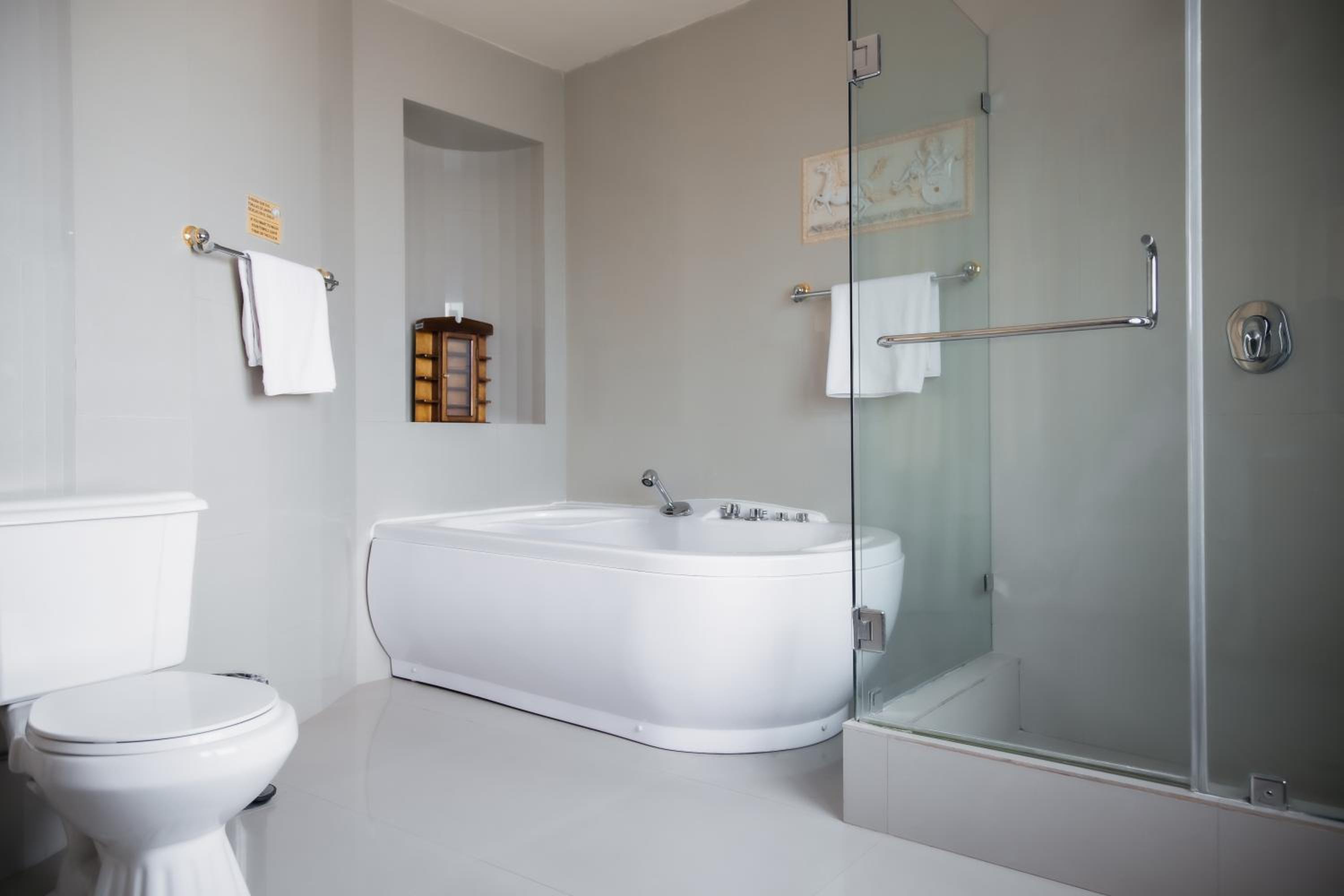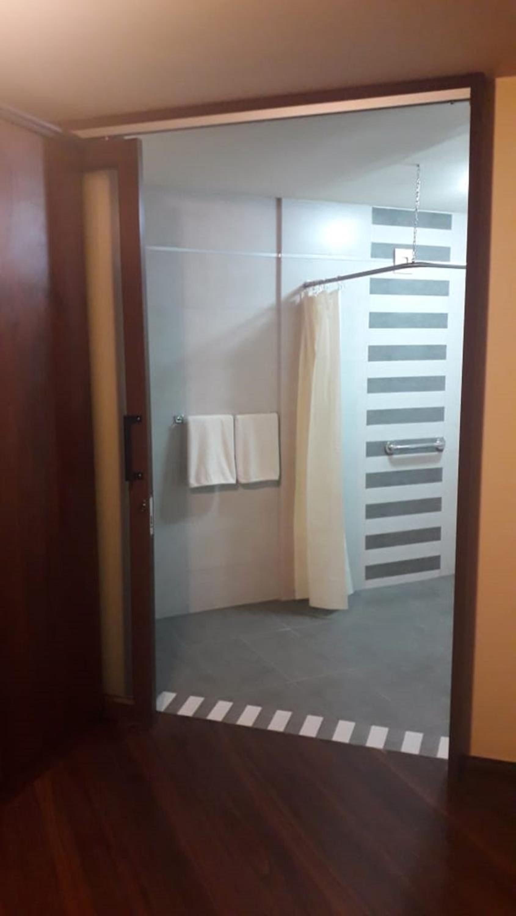 La cortina de baño de tela, seria conveniente que tengan una cortina de vidrio