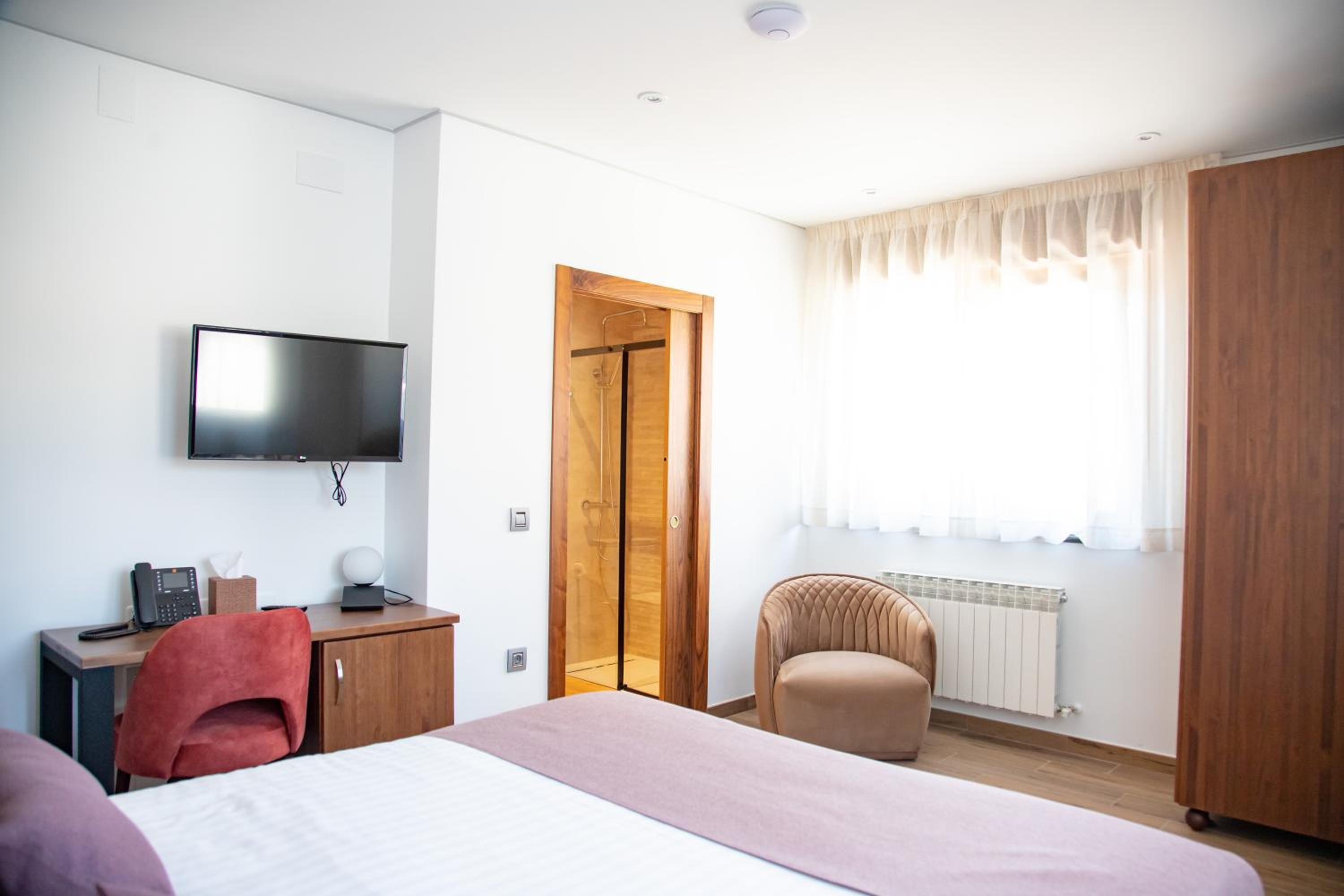 La ubicación cerca de Avila y Segovia, decoración habitación, está en un pueblo tranquilo. Muy buena atención y personal muy amable.