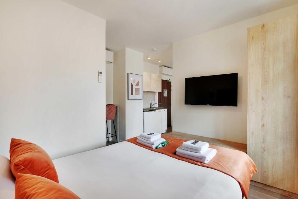 Nette studio op een goede ligging. Goede bedden en aangename handdoeken! Smaakvol ingericht. Alle benodigdheden aanwezig voor een aangenaam kort verblijf. De metro is ongeveer 8 à 10 minuten stappen om de stad te bezichtigen.