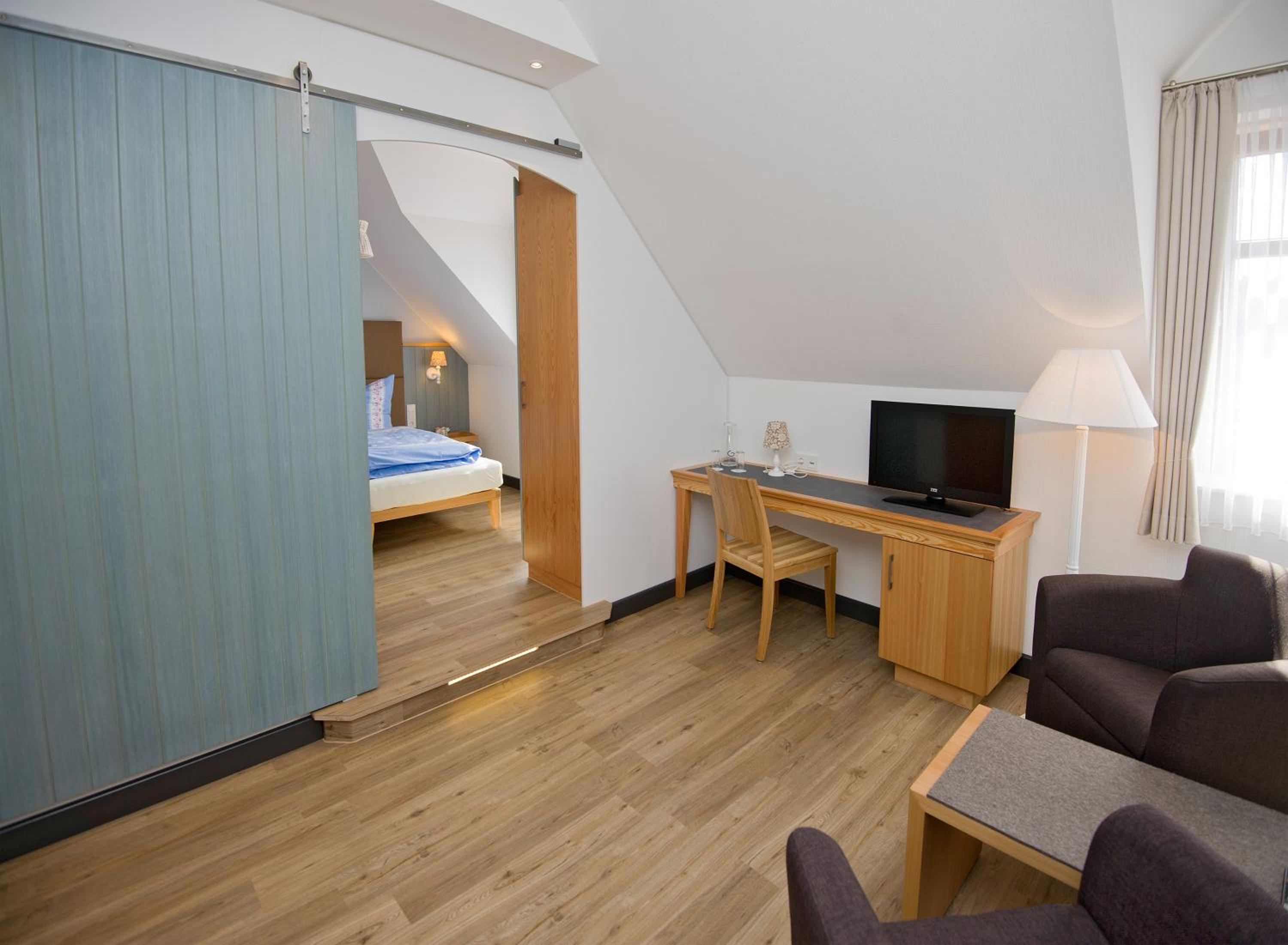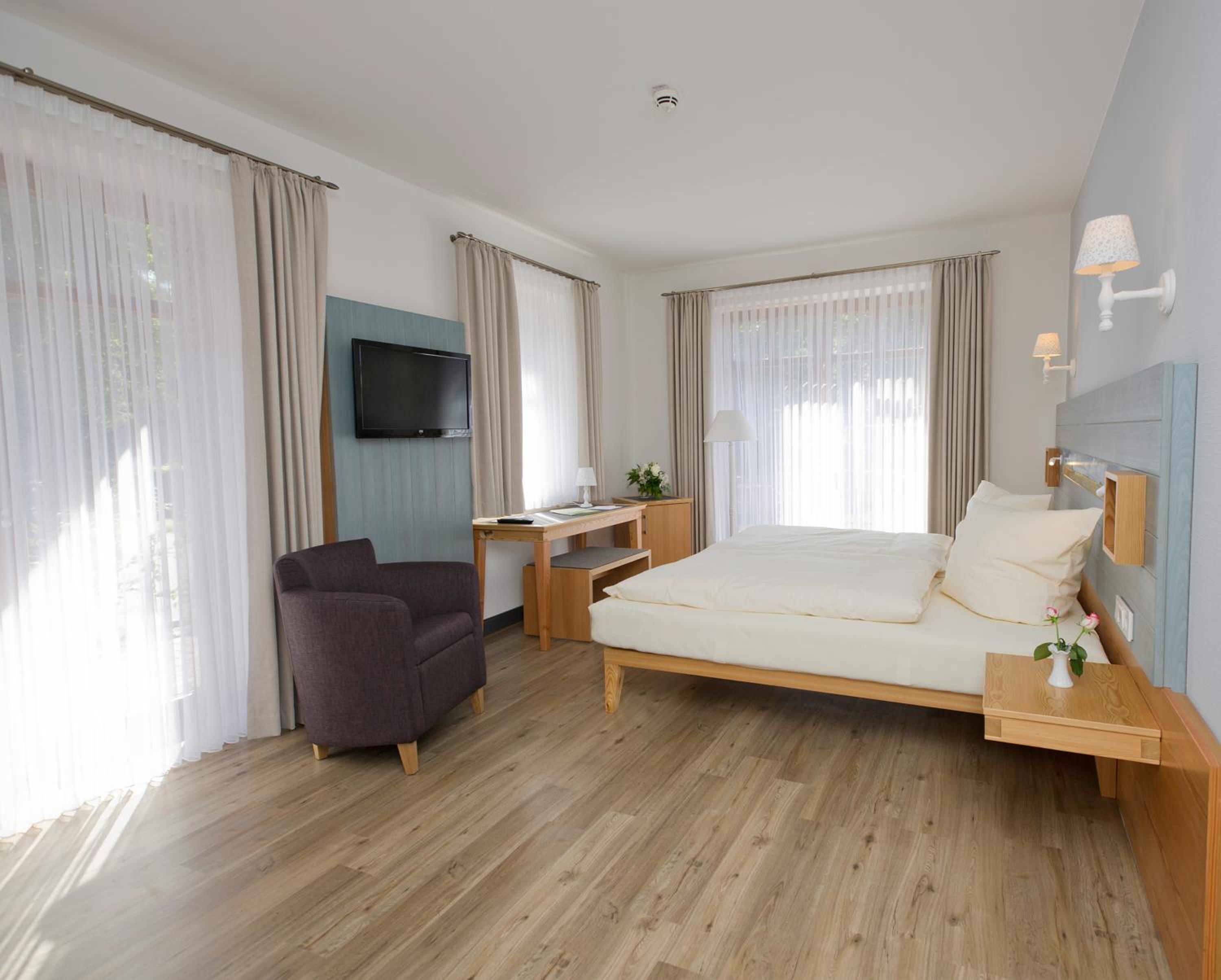 Experience a stay at Hotel Okelmann's where each room is adorned with modern decor using natural materials, providing a cozy retreat. Enjoy amenities like a flat-screen TV, minibar, and complimentary toiletries in your bright and stylish room.