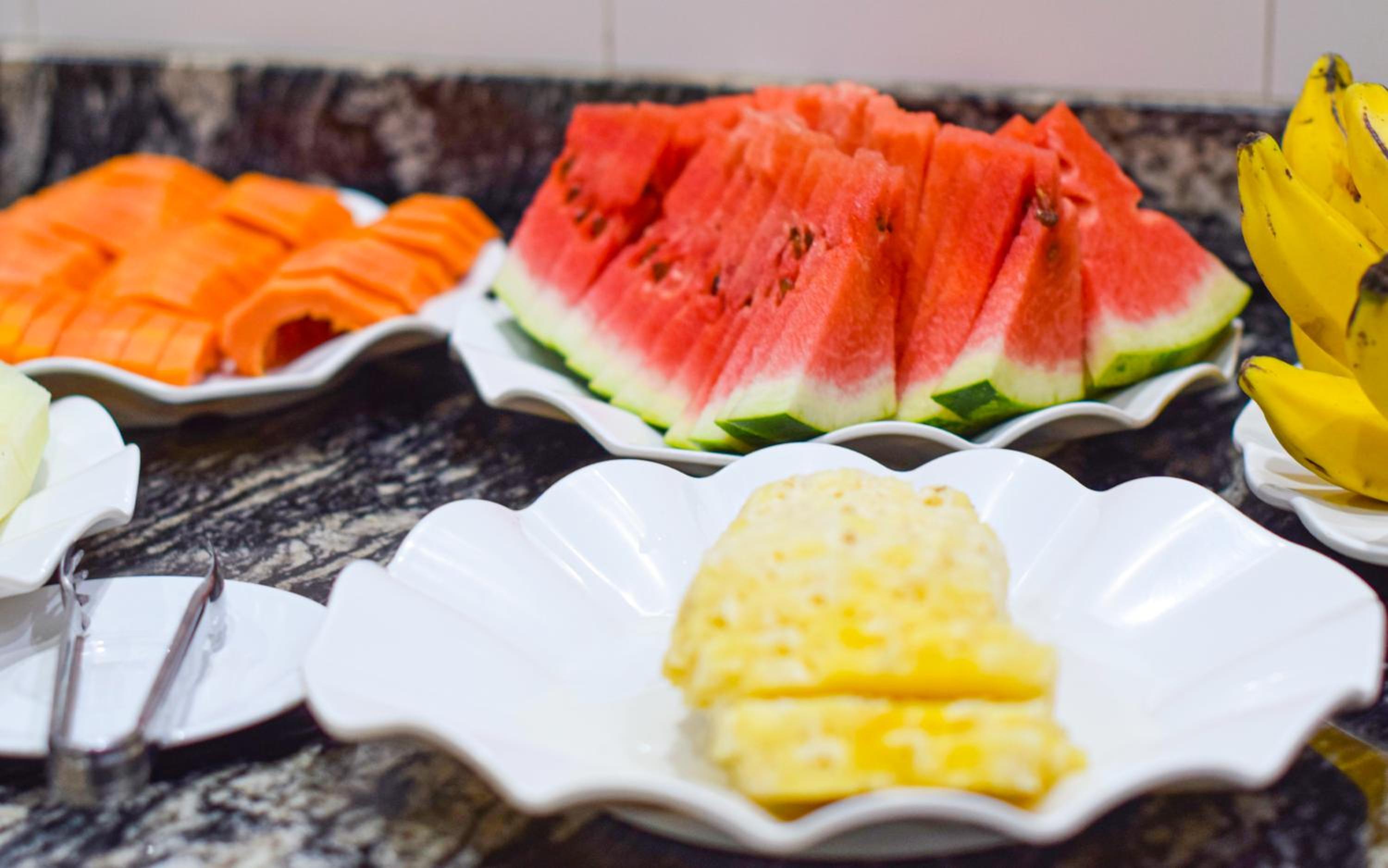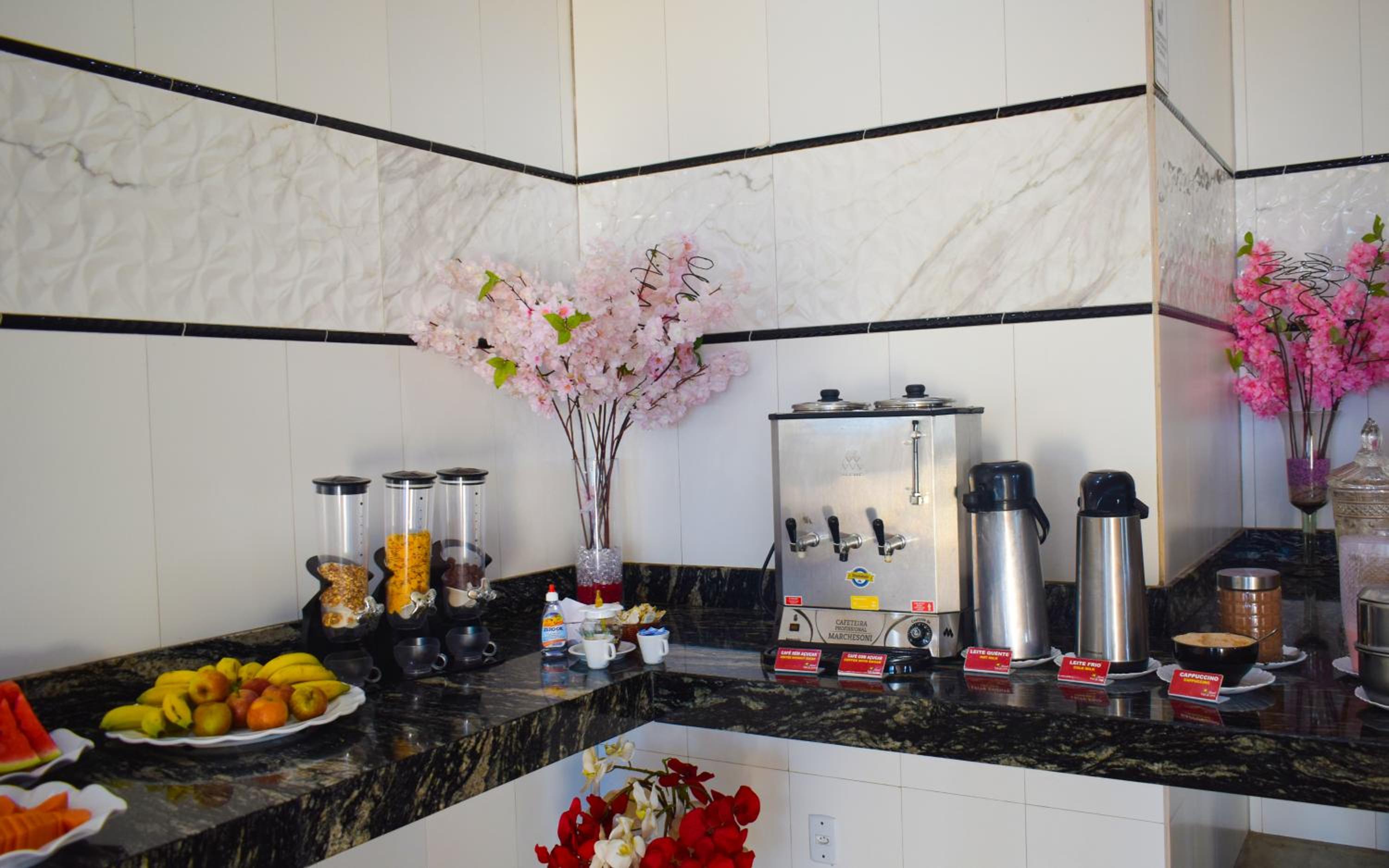 O Café da manhã é muito bom e as atendentes são muito simpeticas e prestativas