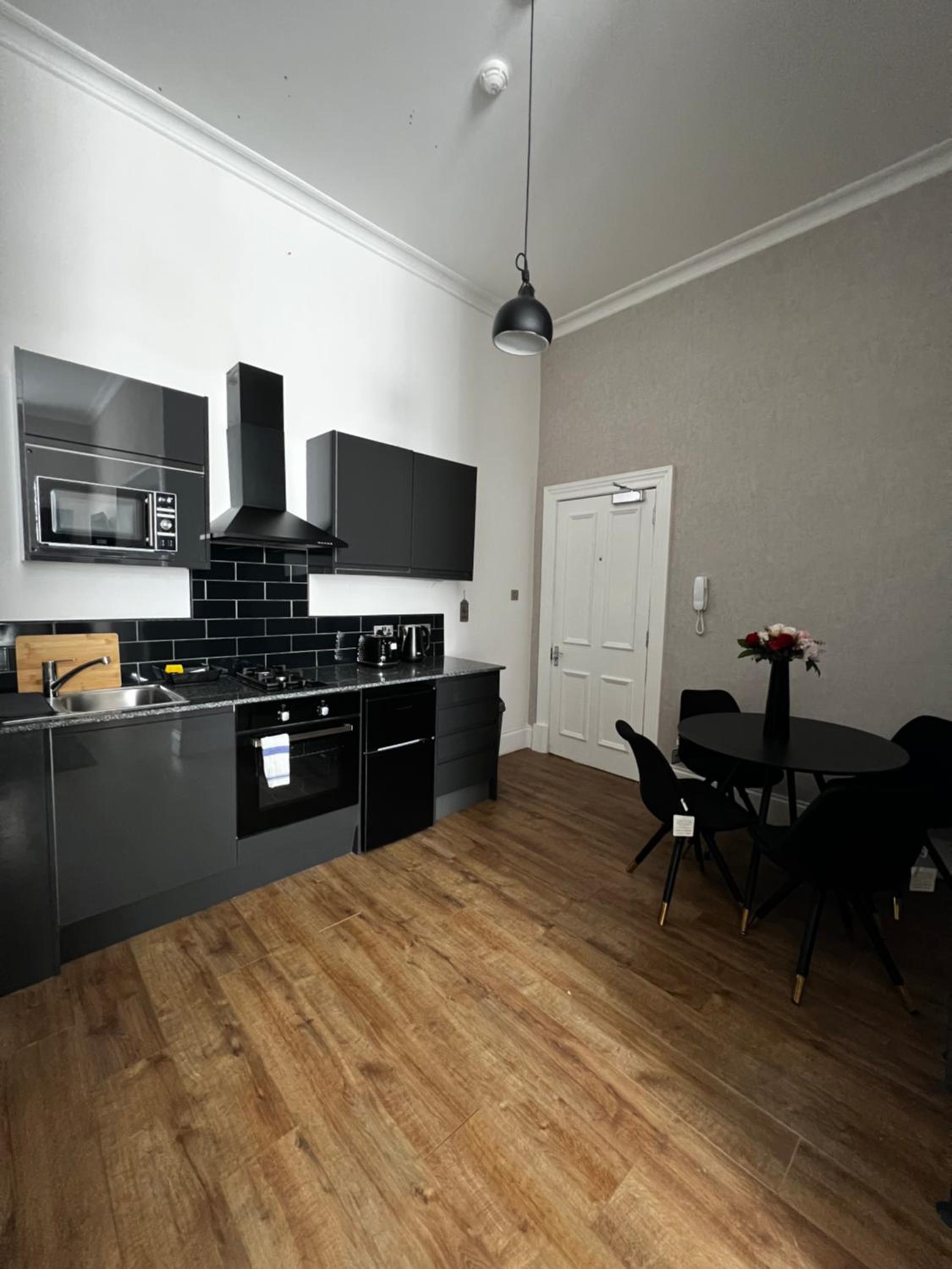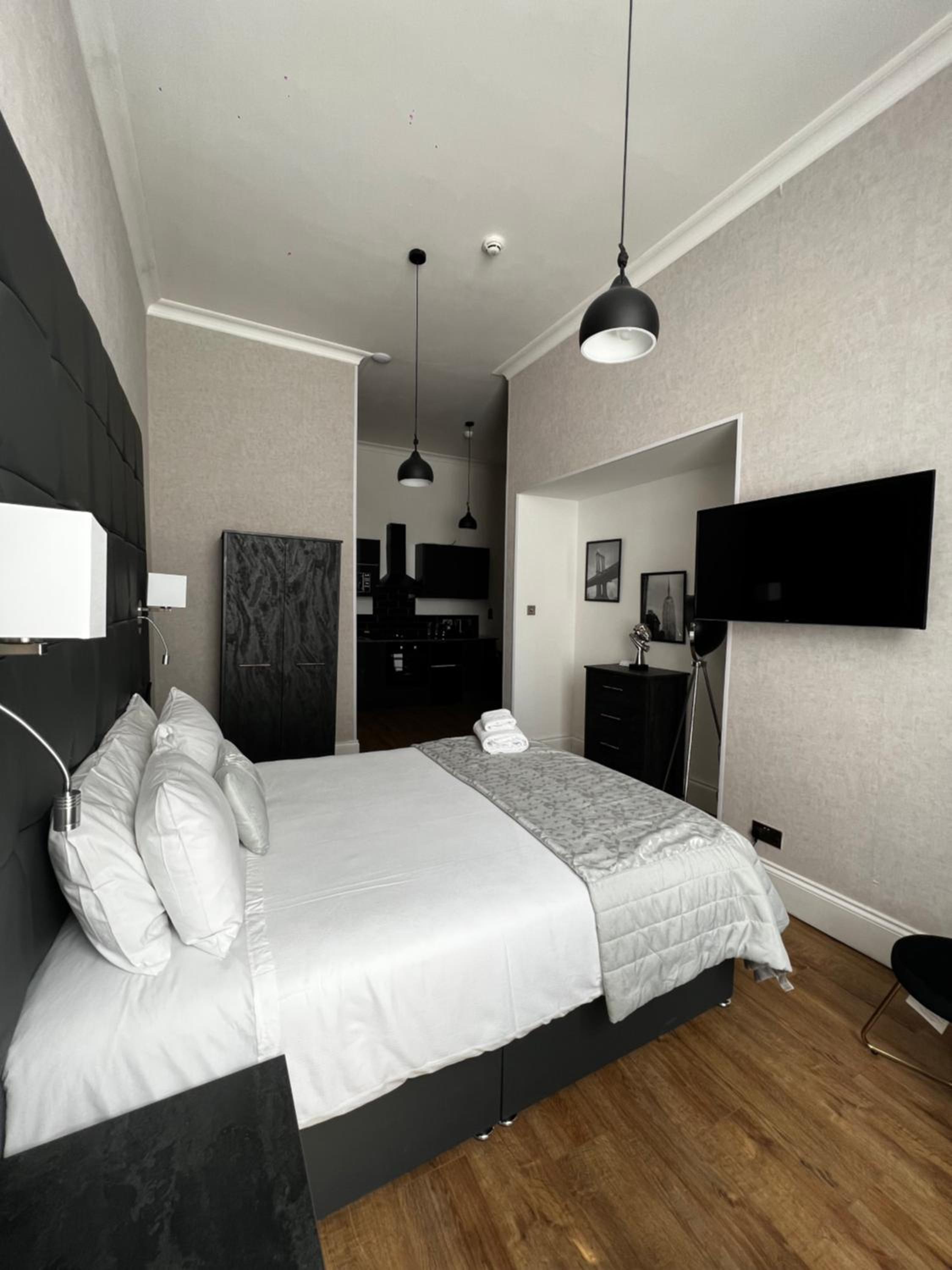 Amani Apartments - Glasgow City Centre offers recently renovated accommodations with free WiFi, fully equipped kitchens, and stylish parquet floors. Each unit features modern amenities such as a flat-screen TV with streaming services and a private bathroom with walk-in shower and slippers.