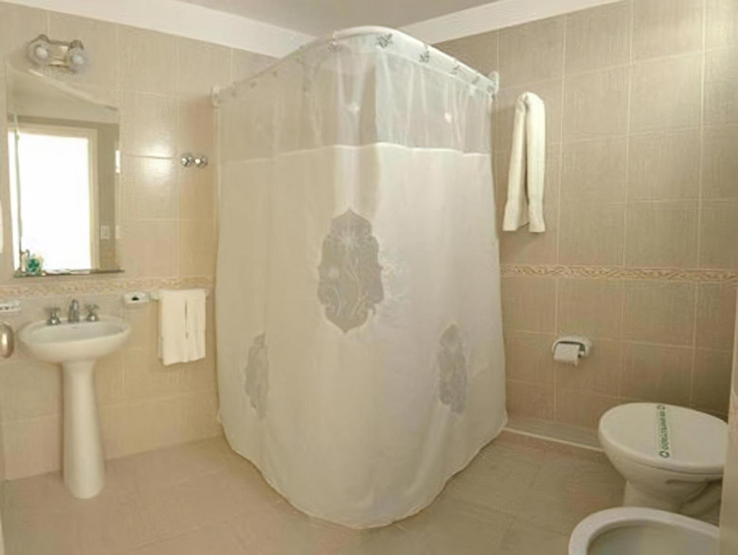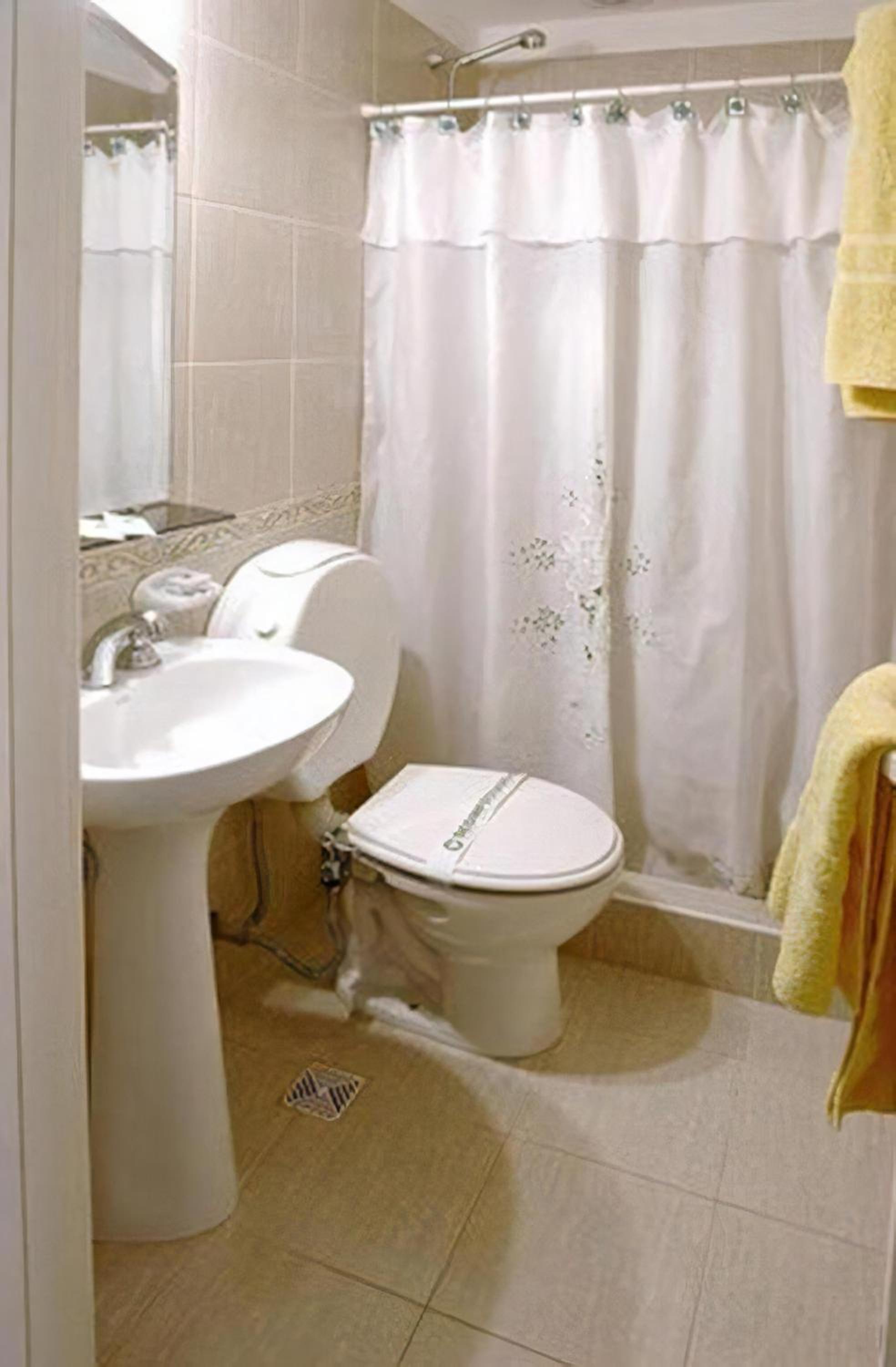Ducha muy pequeña, sin Internet. Mesas de luz sin luz. Poca ventilación xq la habitación da a un pulmón. Olor a humedad.