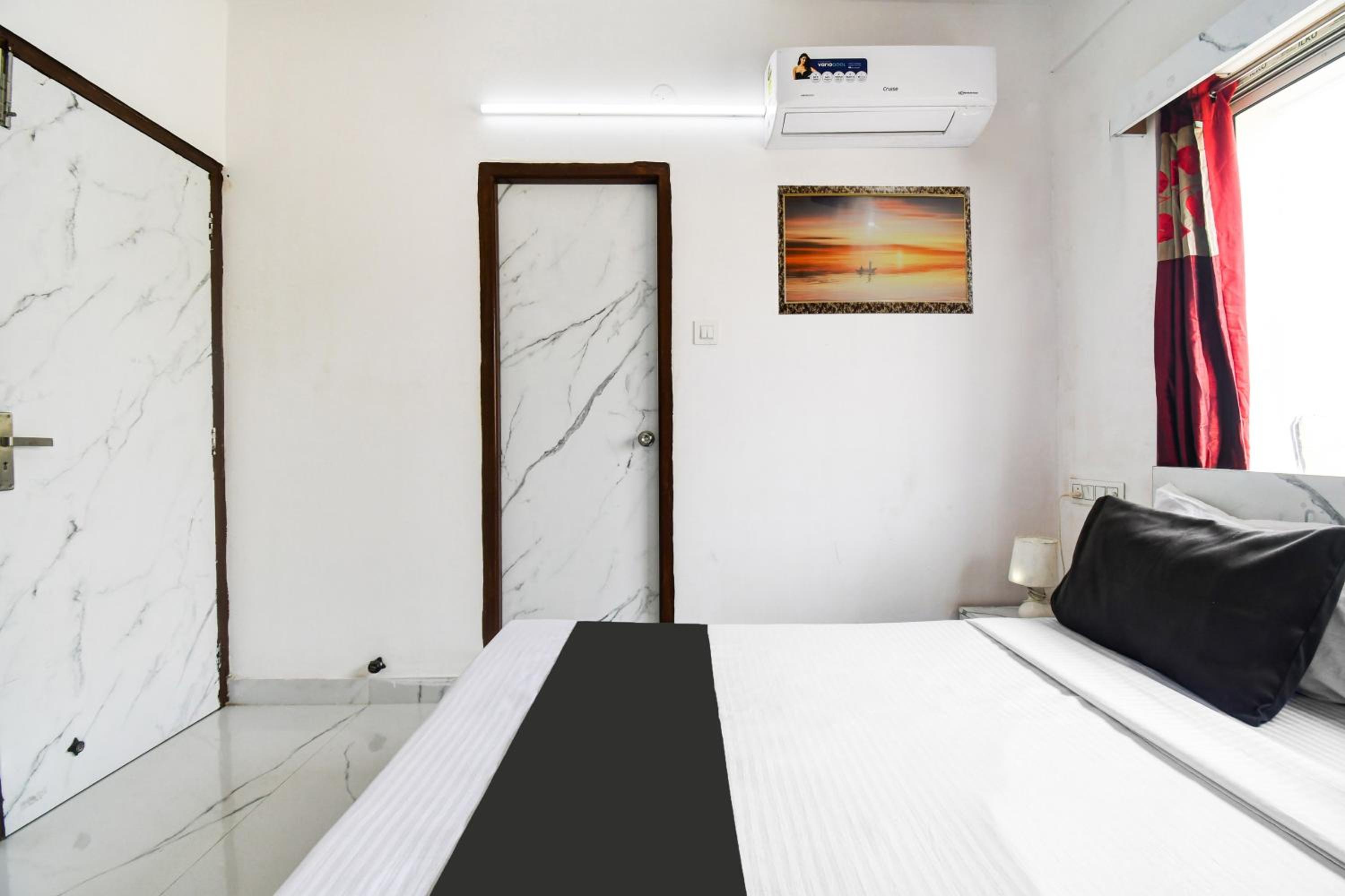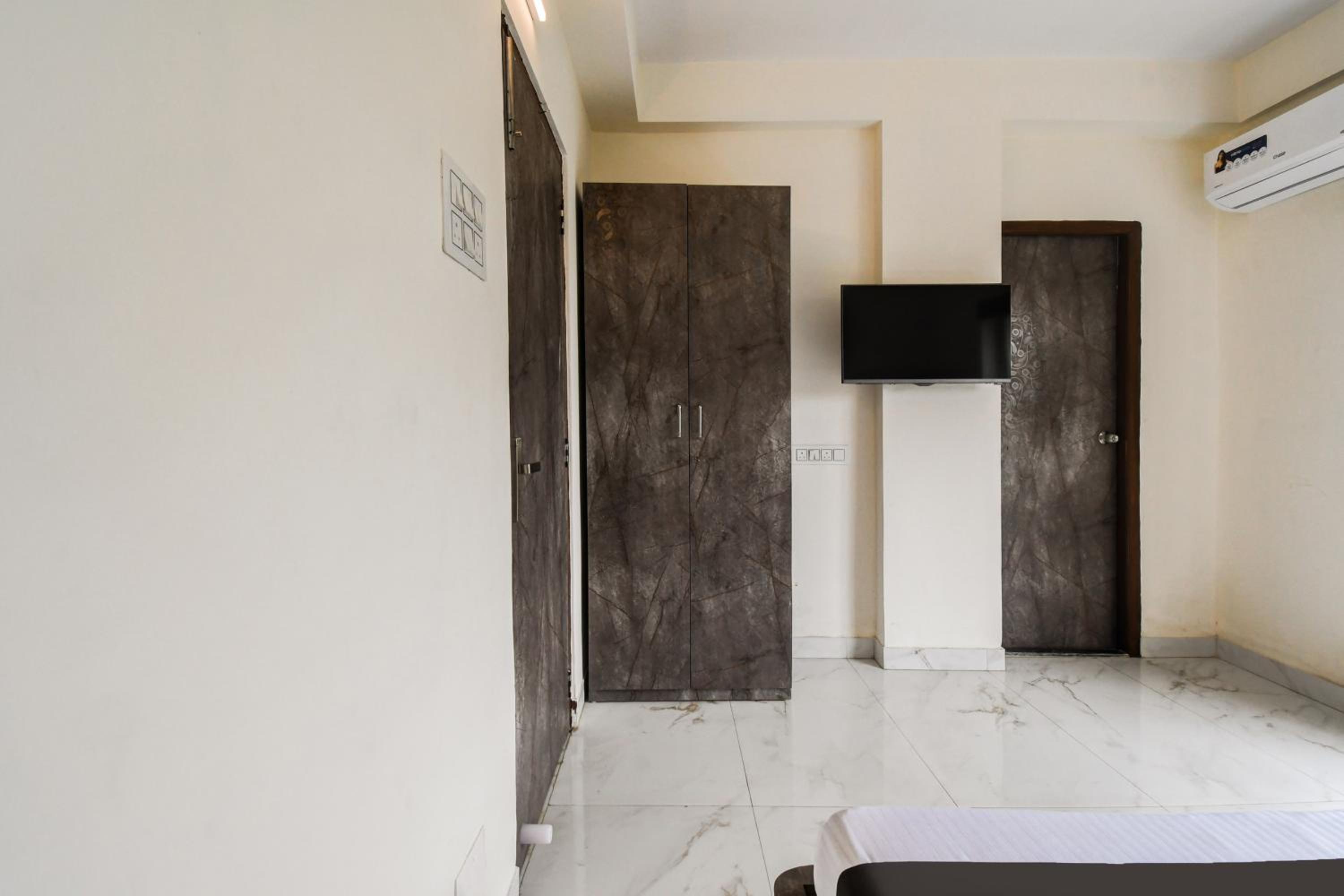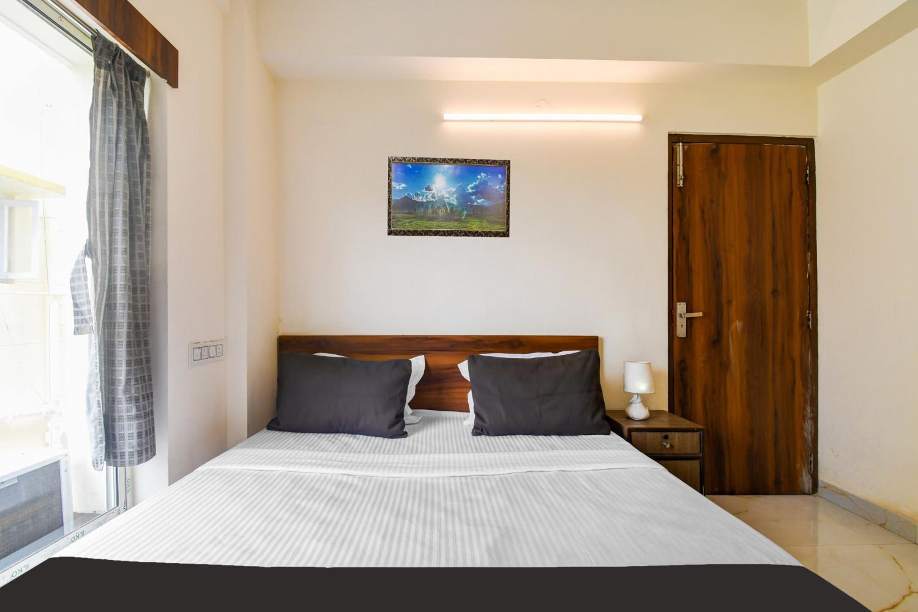 The guest rooms at Hotel O Atithya Inn are equipped with modern amenities like air conditioning, flat-screen TV, and a private bathroom, ensuring a comfortable stay for all guests.