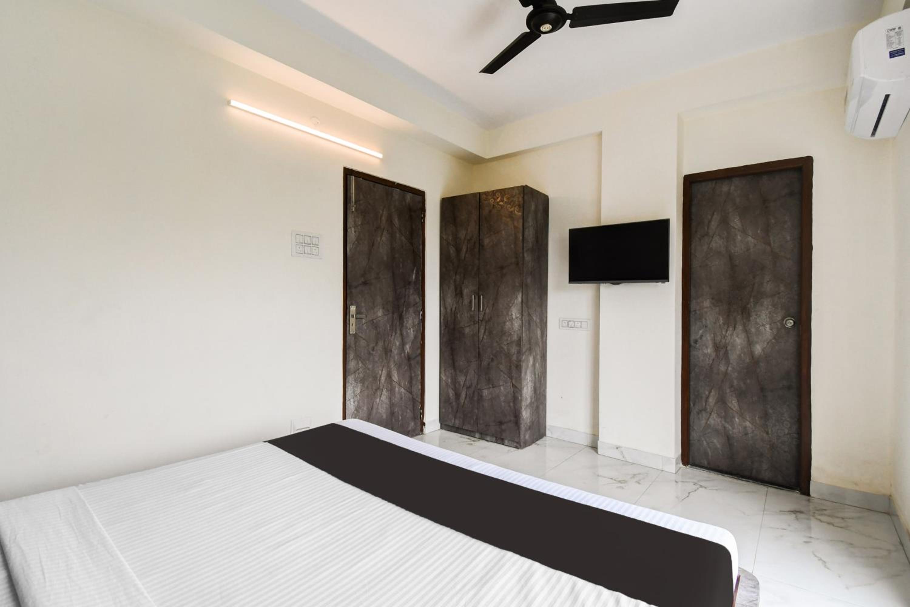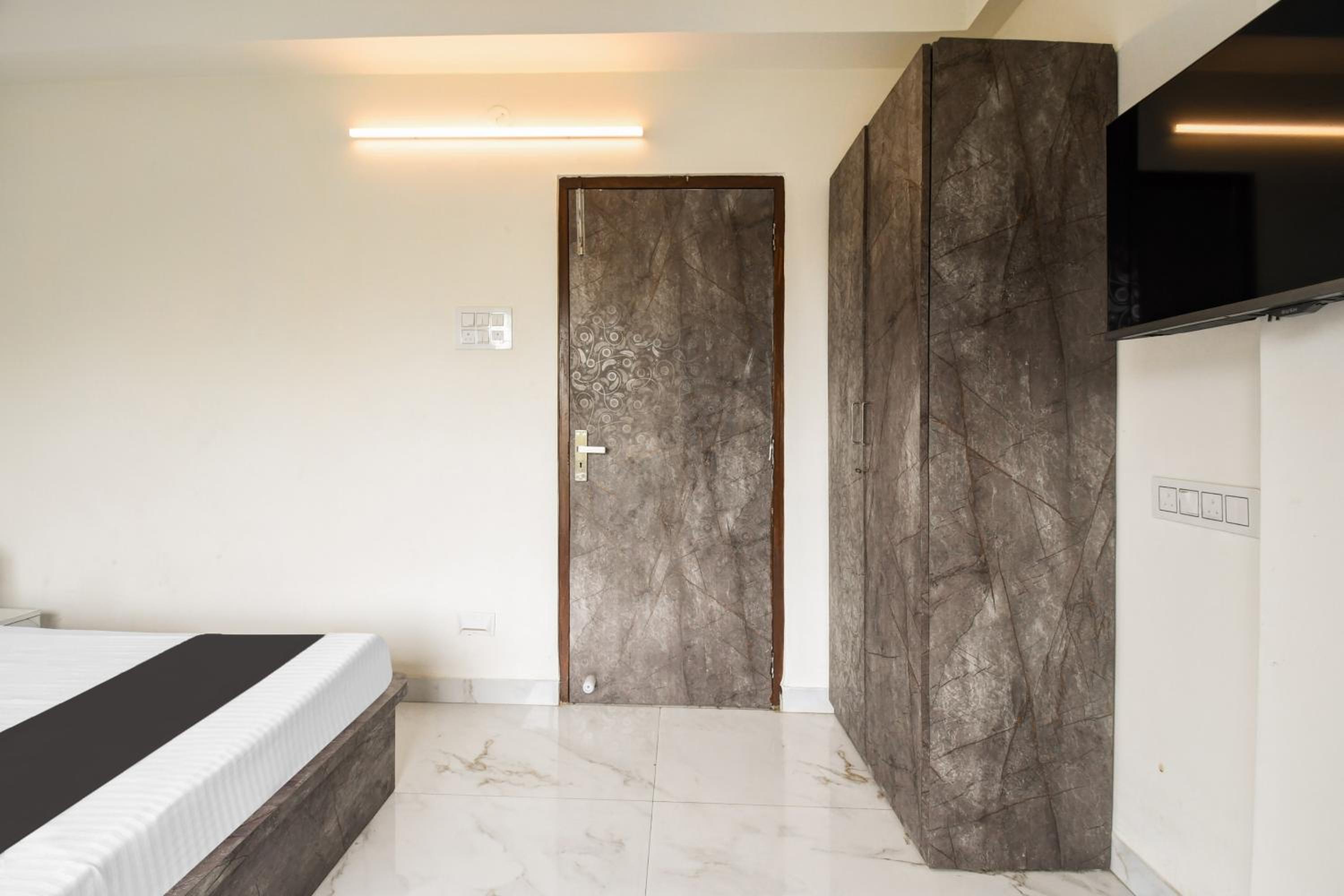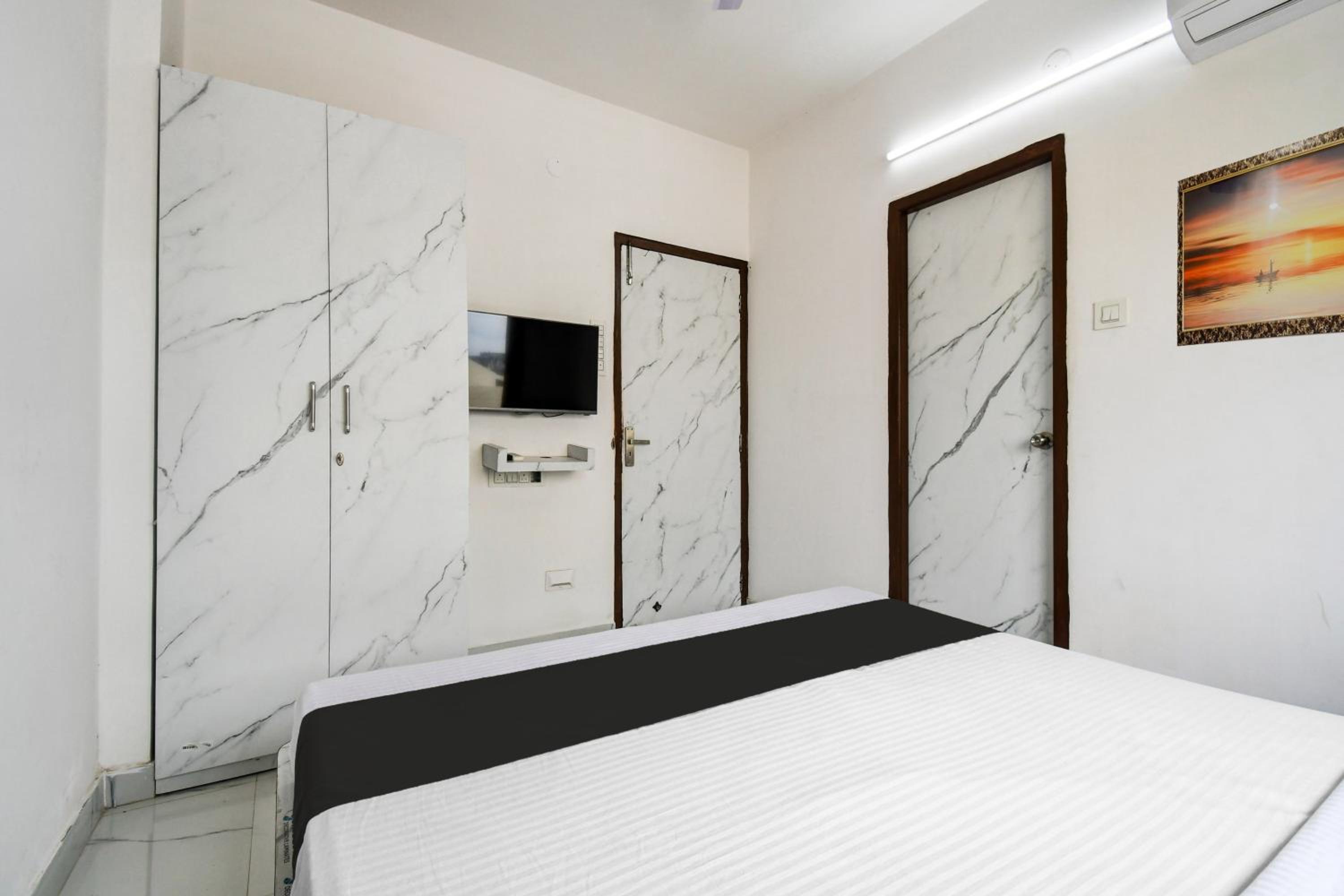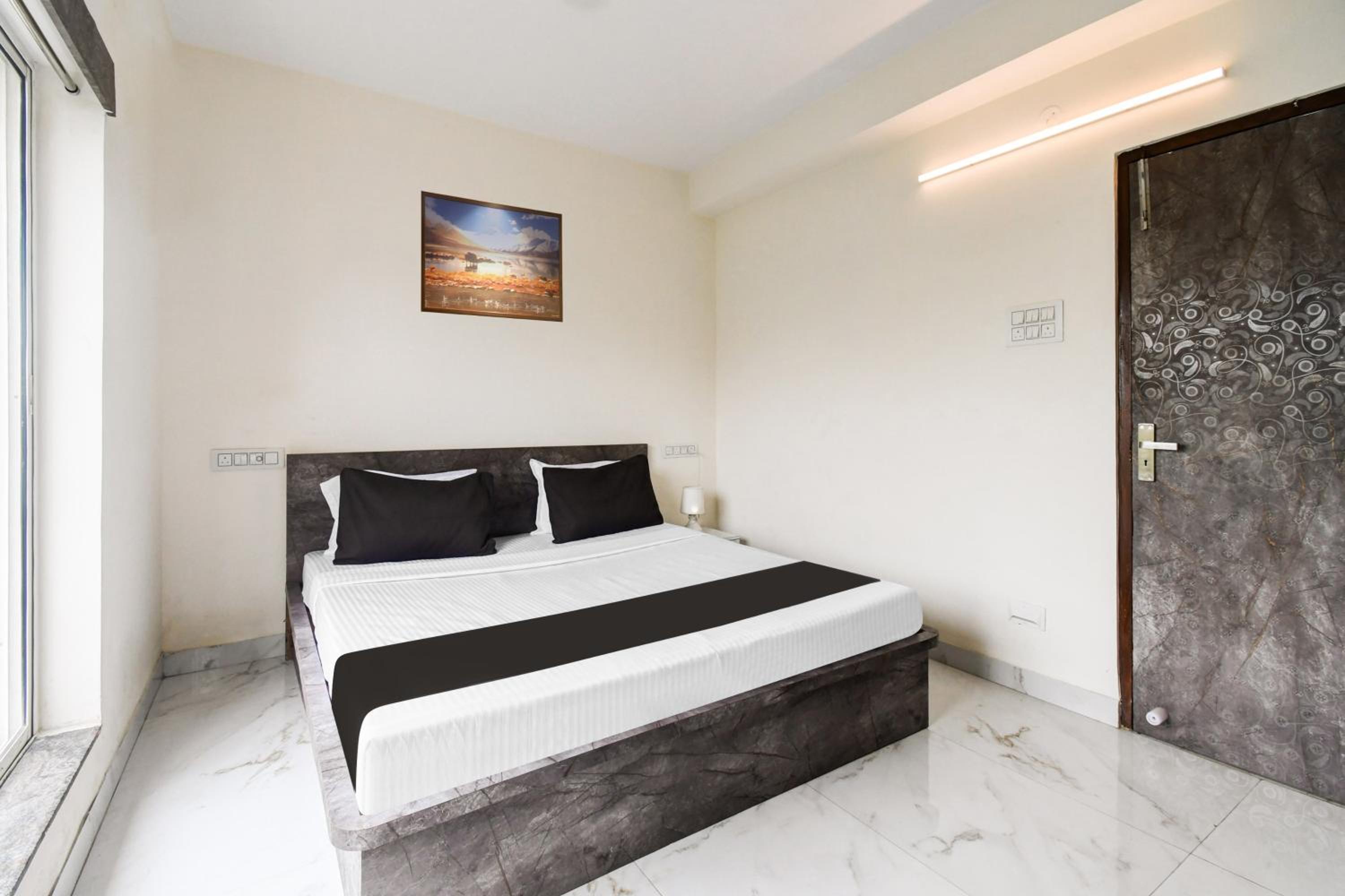 The guest rooms at Hotel O Atithya Inn are equipped with modern amenities like air conditioning, flat-screen TV, and a private bathroom, ensuring a comfortable stay for all guests.