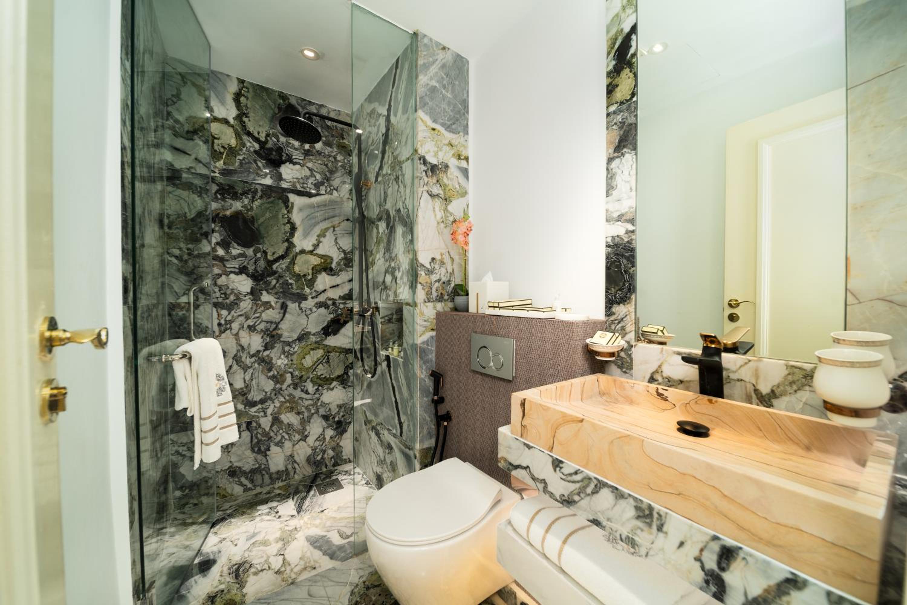 Příjemný a nápomocný personál na recepci, v restauraci i u bazénů. Do puntíku dotažený originální design hotelových místností, chodeb, vytahu, jídelní místnosti a salónku ...přehršel napadů a fotogeničnosti.