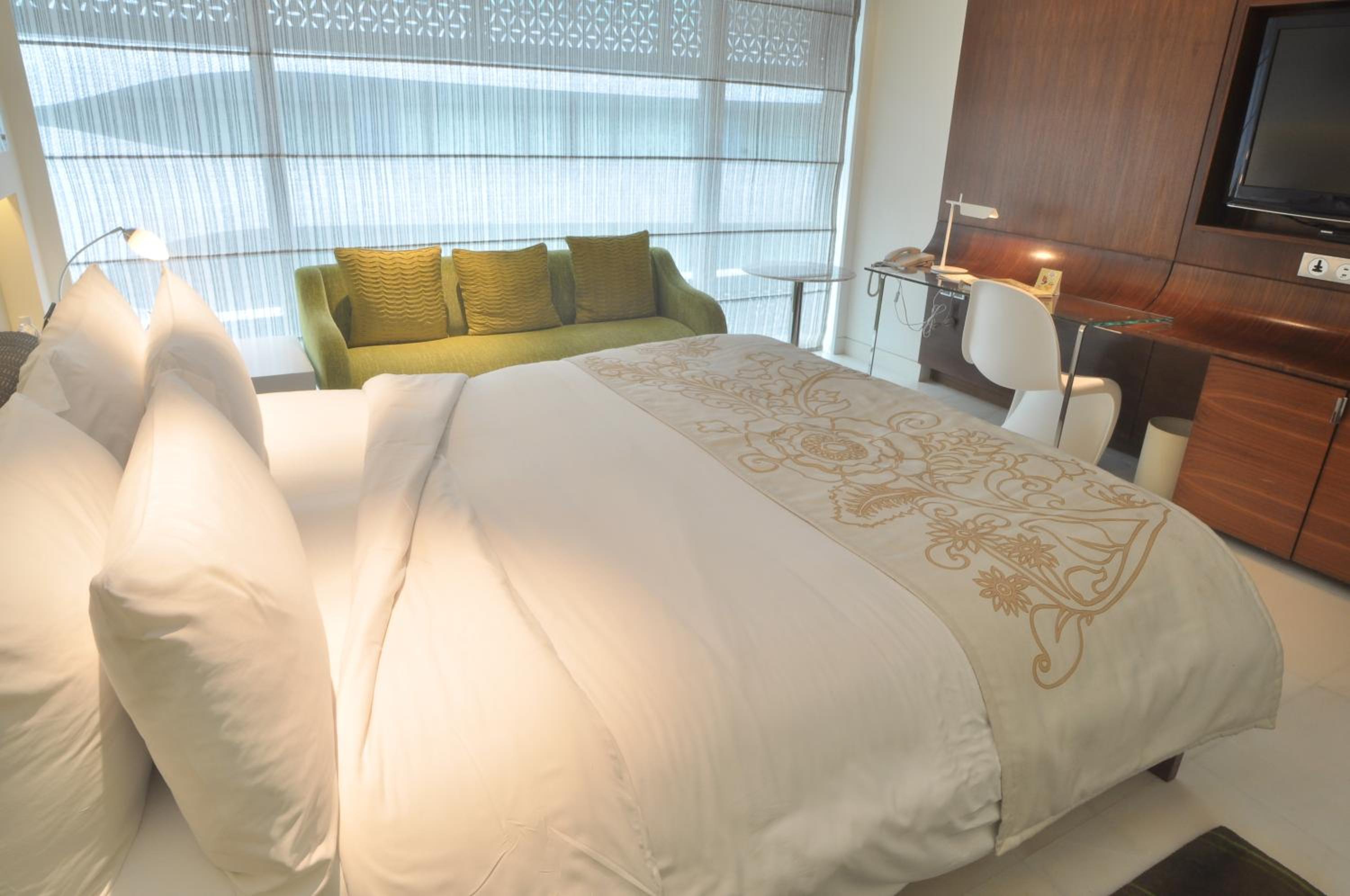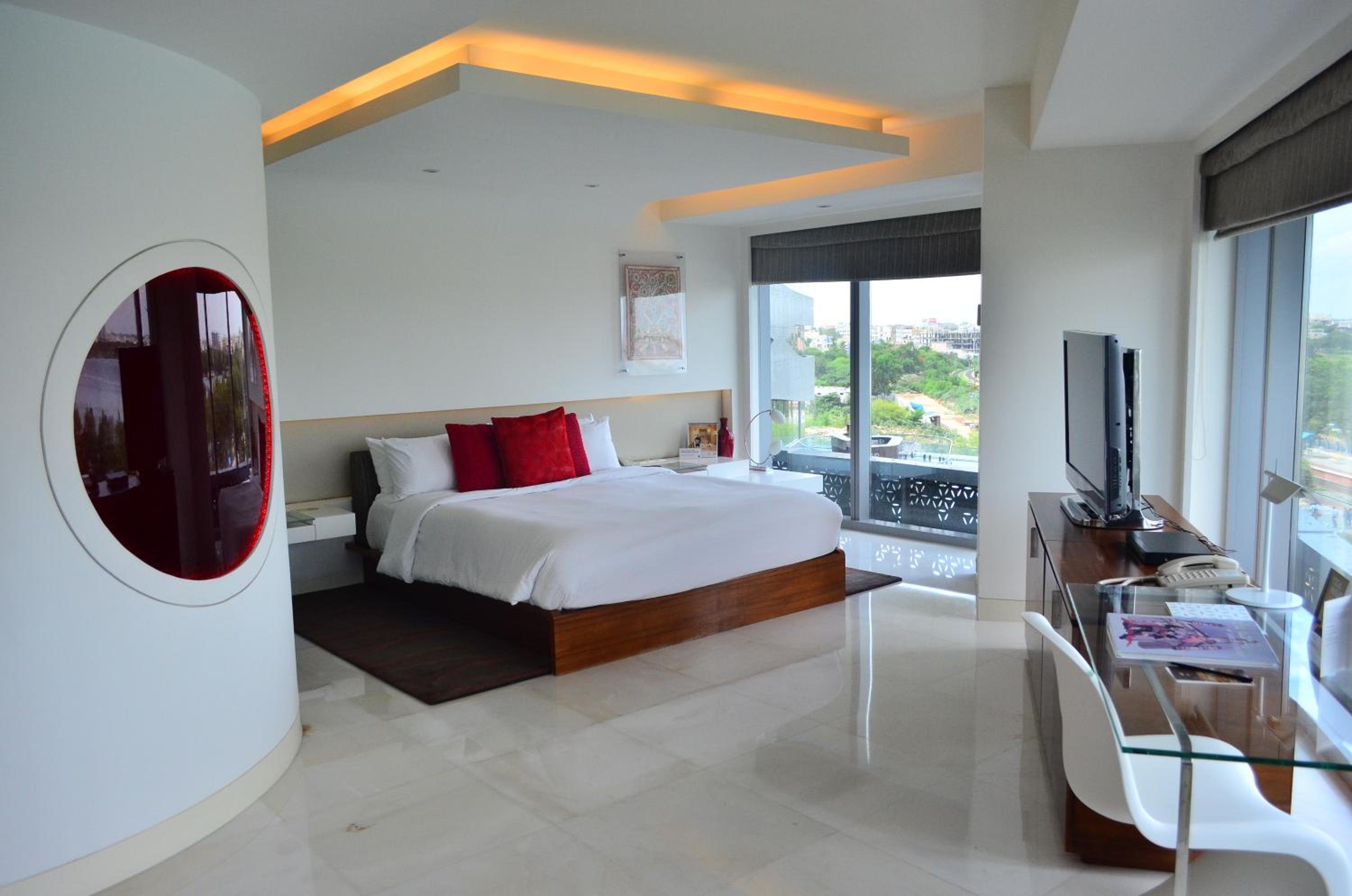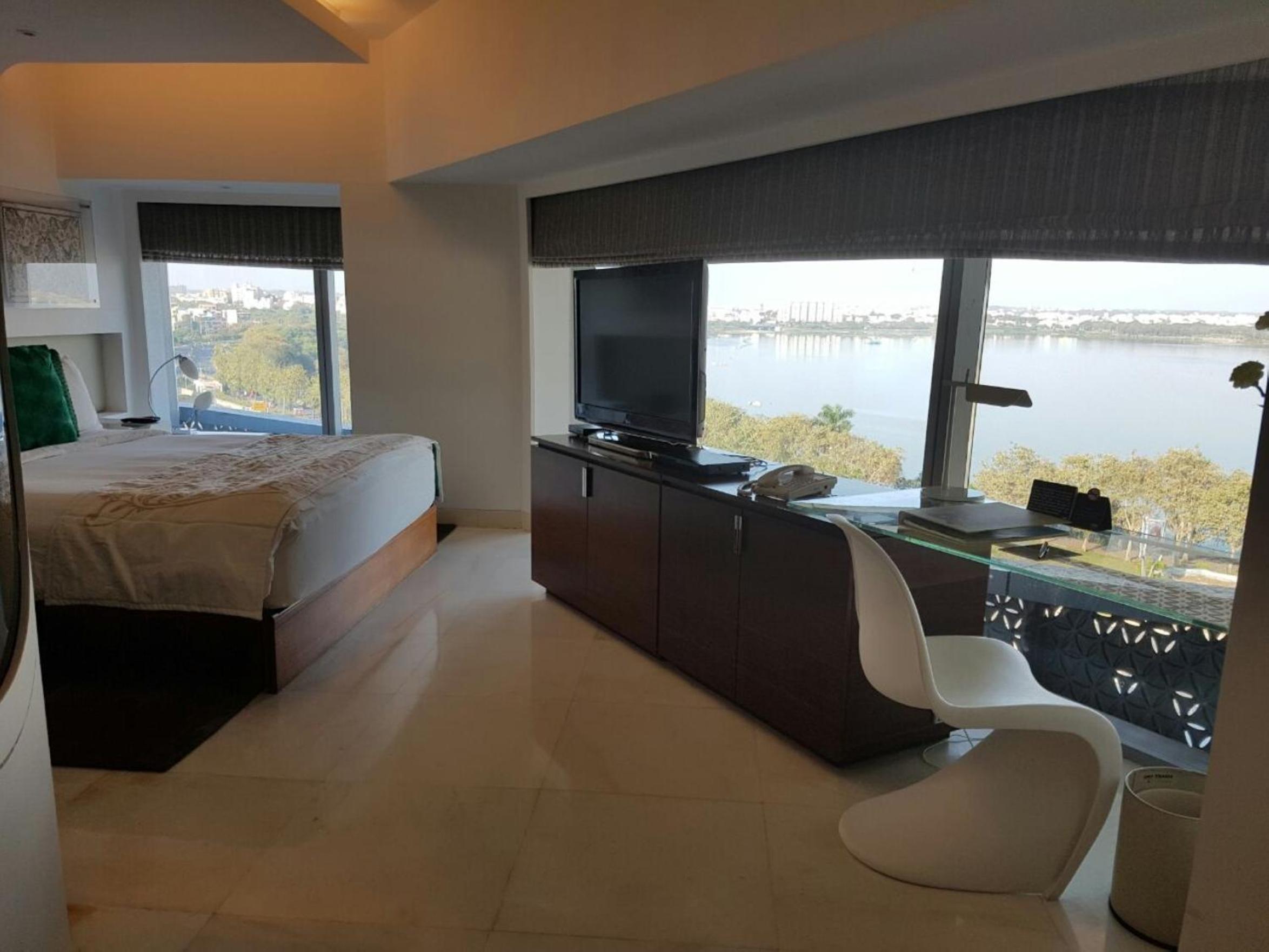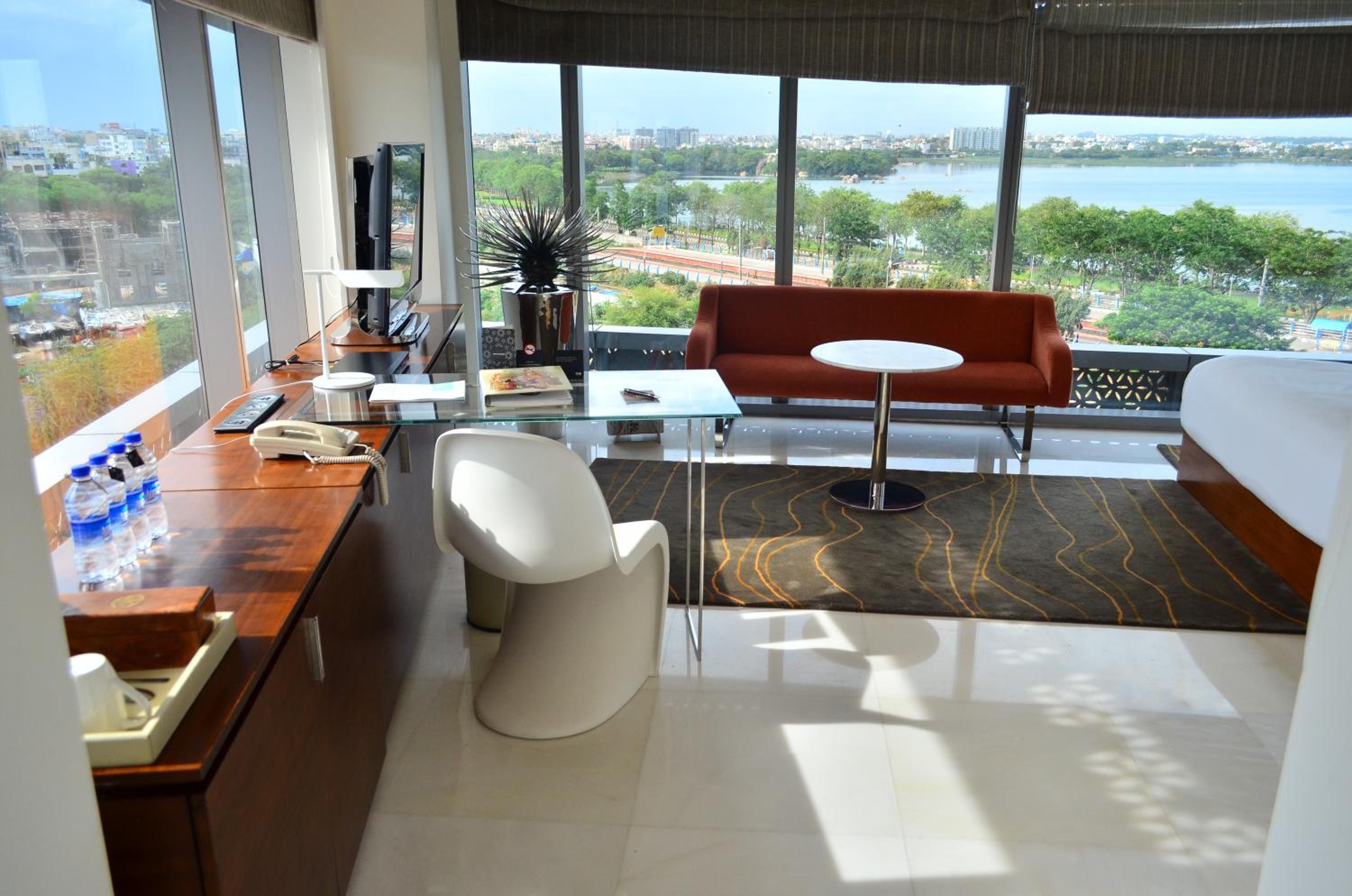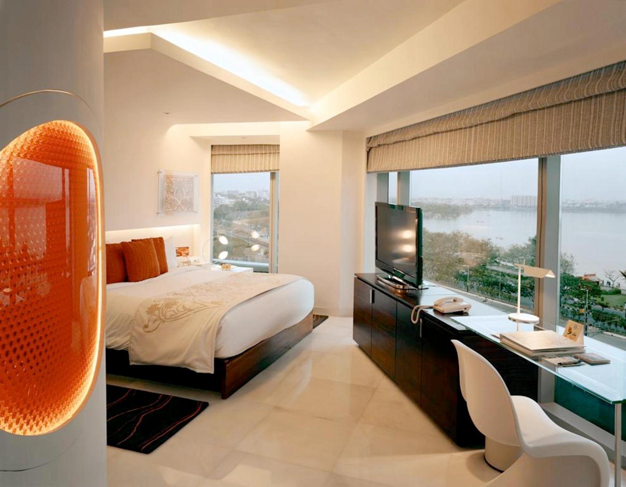 The Park Hotel in Hyderabad offers spacious rooms with private hot tubs, LCD TVs, and stunning views of Hussain Sagar Lake. Guests can unwind in bathrobes provided and enjoy the convenience of walk-in closets and minibars.