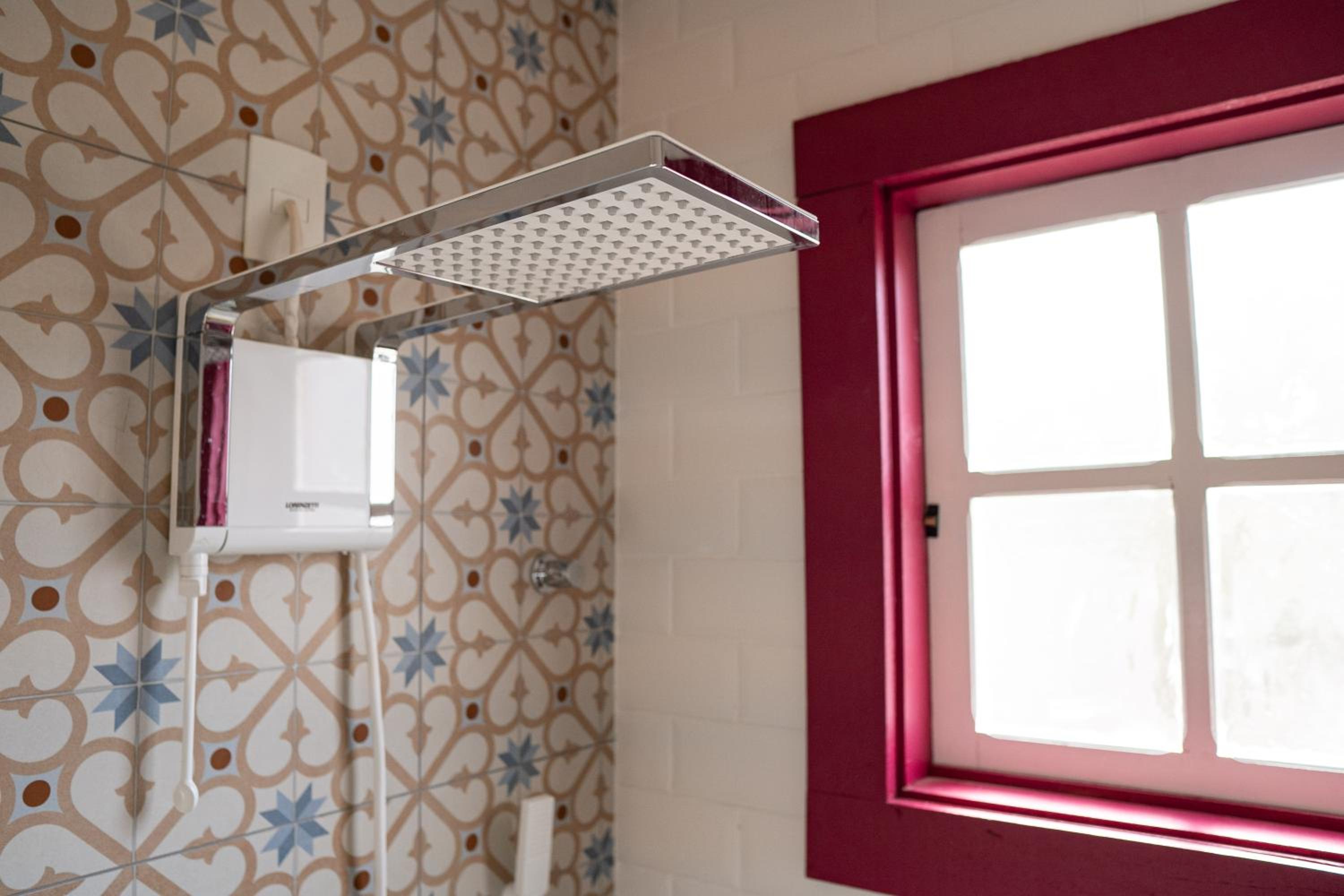 A pressão da água nos banheiros pode melhorar. Trocar os chuveiros elétricos por chuveiros normais, com aquecimento de água, seria uma boa providência.