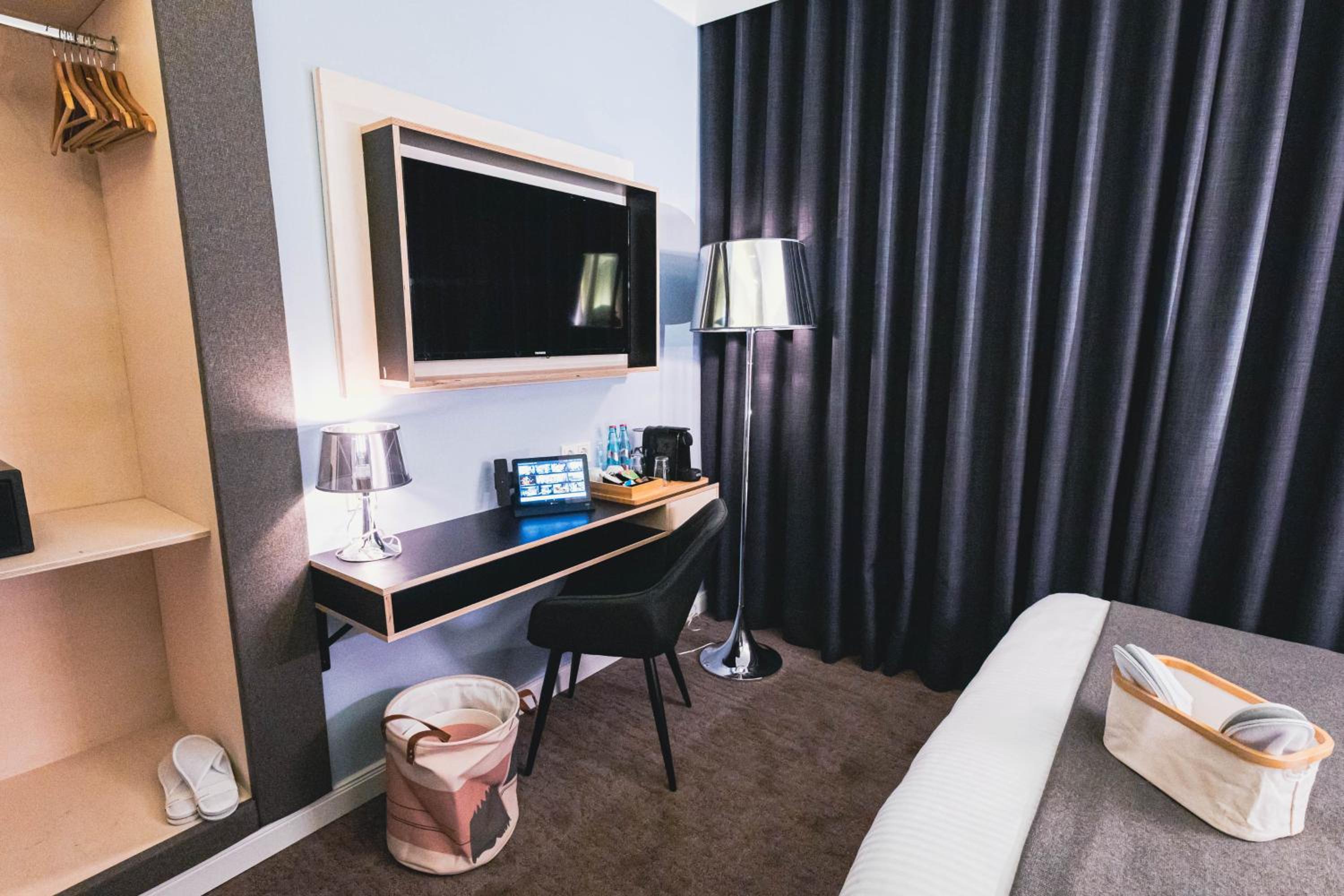 Zimmer ist schon klein. Wenn man einen Koffer hat, wird es eng. Das Laptop hat gerade so Platz.