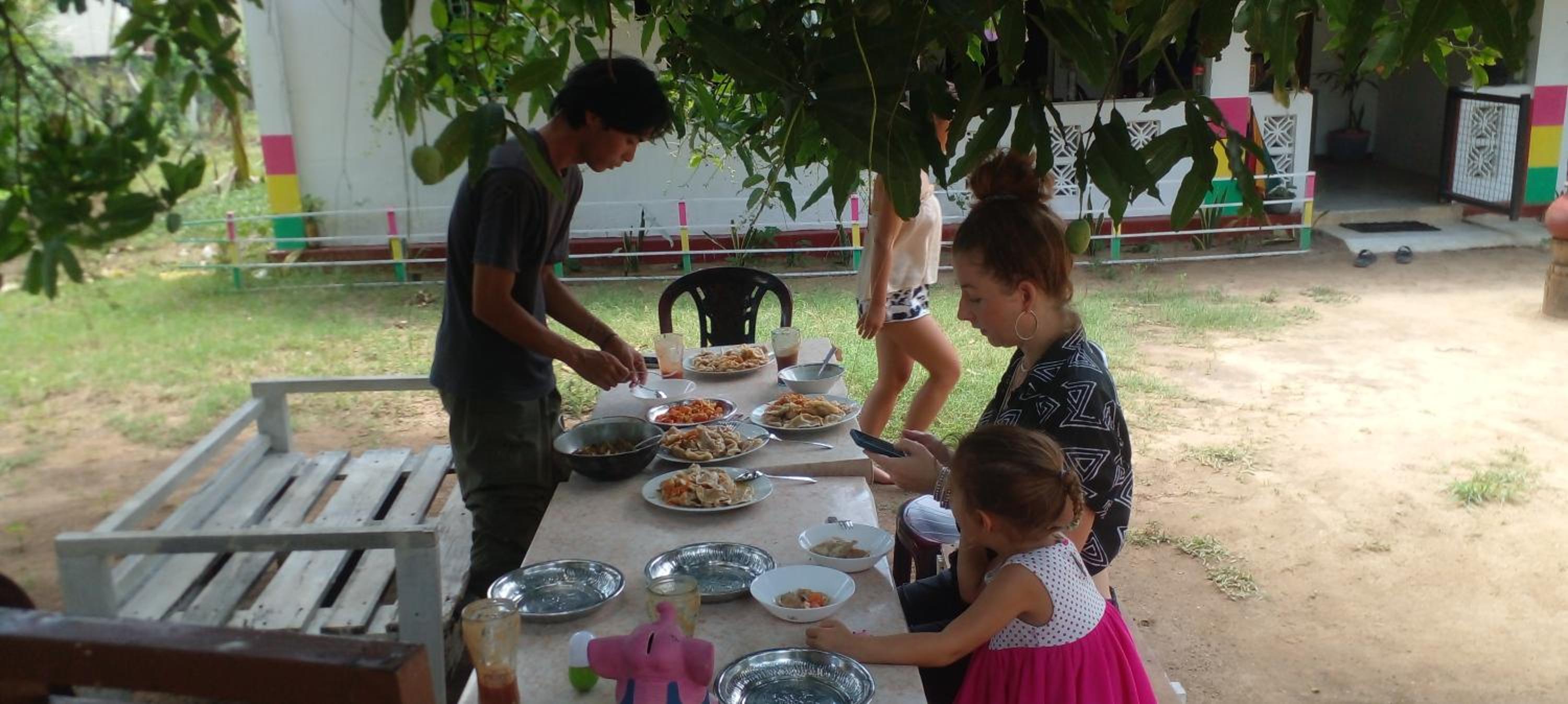 We stayed 3 nights with two kids (8y/10y). Our kids loved the garden with hammock and coconuts. And Nimal loves kids (has 3 daughters). He showed our kids how to open coconuts, gave them tuktuk lessons, and they helped to cook in the kitchen. We ate every evening and morning at his place, as the food which his sister is creating is great and different every day - and she will prepare some special things to try if you want. One evening, the family and friends of Nimal dropped in, and we all celebrated his birthday. Also, on the other days, we often had long discussions with him about culture, family and life in general. Nimal is a local and very well connected: he organized the boat to Pigeon Island for a fair price and organized seats on an A/C bus to Sigiriya. I have not met any other location and person who is so open and heartful. We will keep this place as one of the best experiences in Sri Lanka!