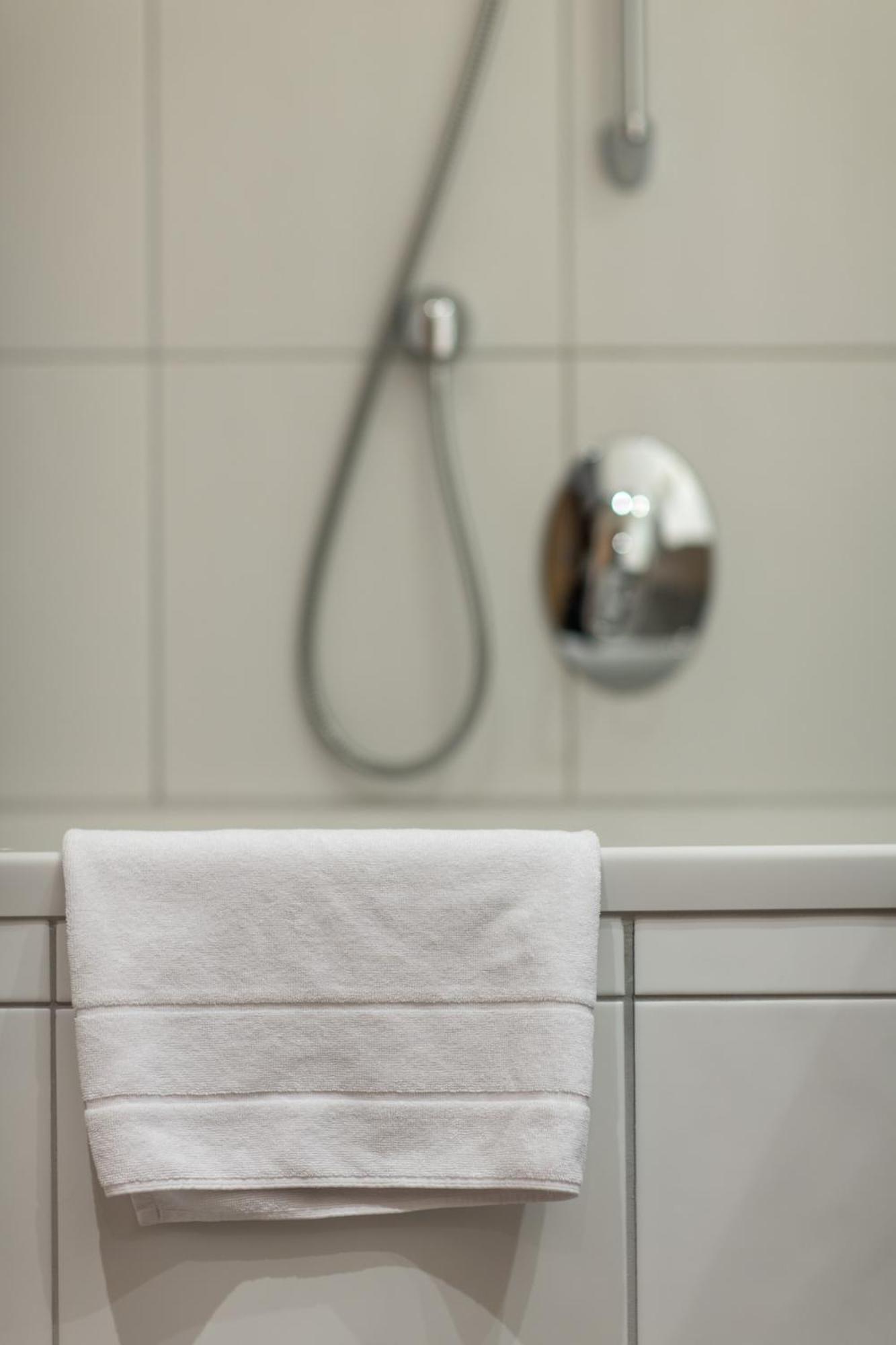 Open bathroom layout, meaning there was a warning that showering with hot water for too long may trigger the fire alarm.