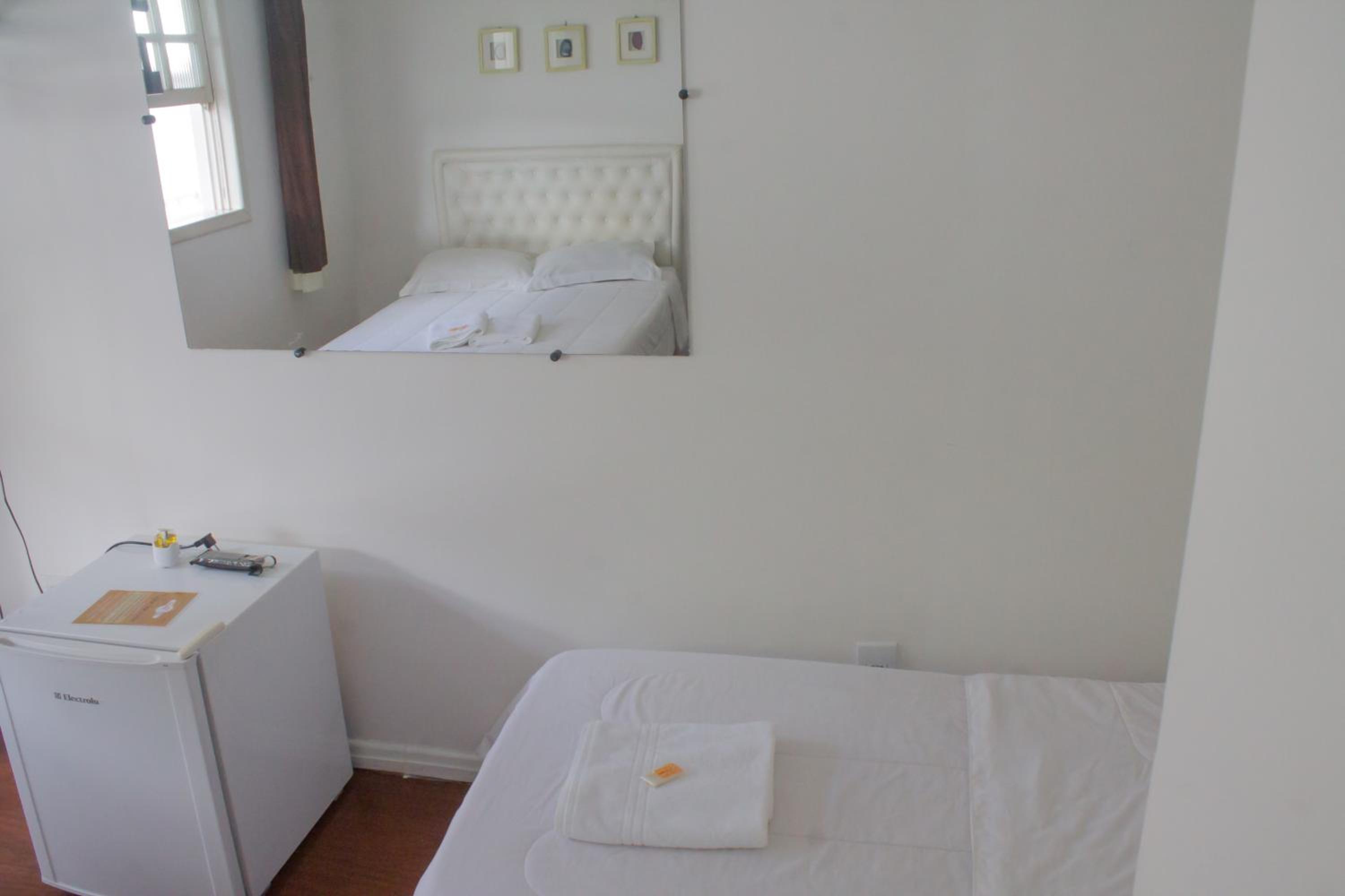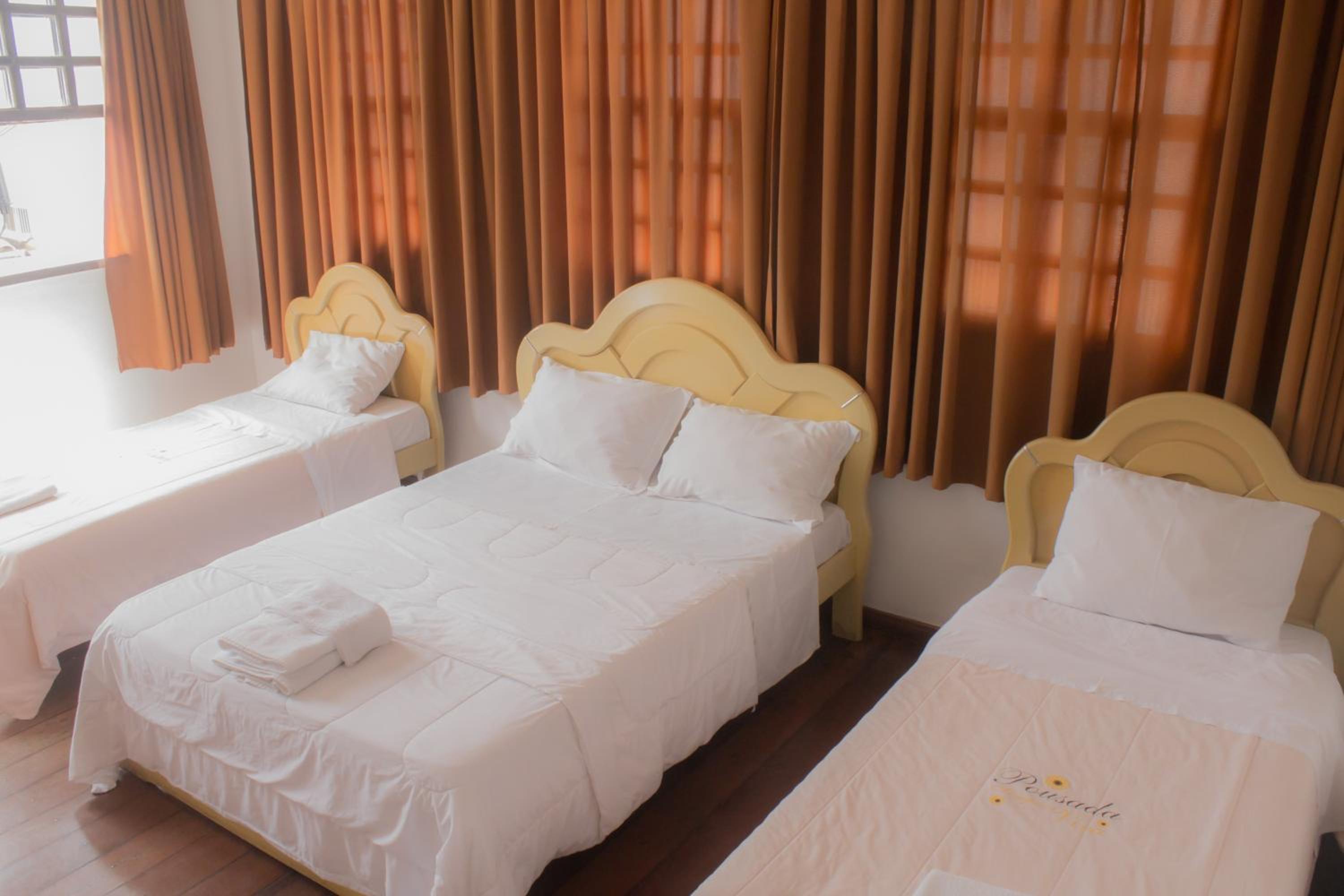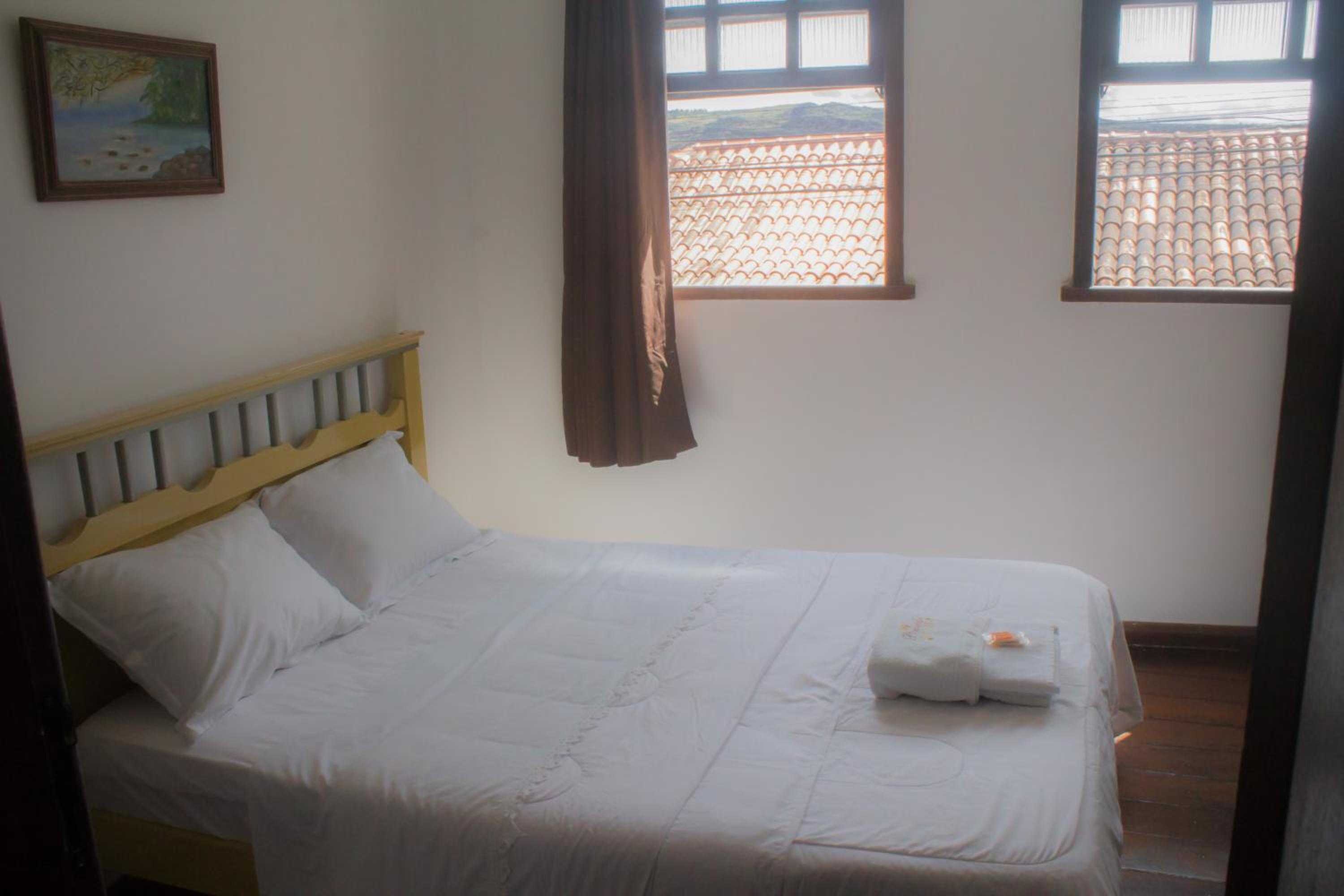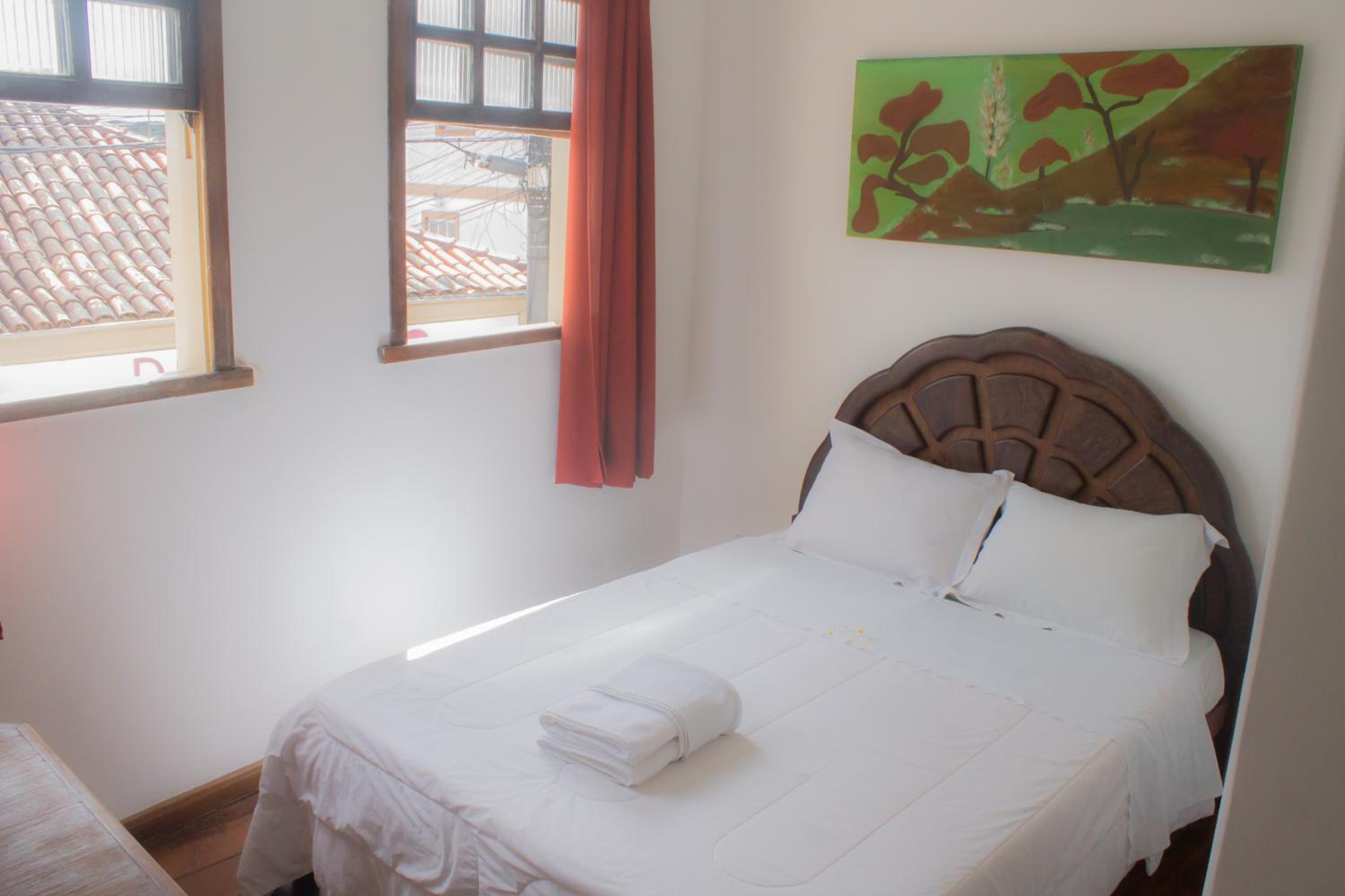 Quarto pequeno. Áreas em comum limpas. Roupa de cama suja, amarrotada e até rasgada. No dia que cheguei, pedi dois lencóis para colocar debaixo da coberta e o moço da portaria me trouxe dois lencóis ( aparentemente sujos e com manchas), inclusive com cabelos grudados nas manchas e que não tivemos coragem de usar. Banheiro com a fechadura estragada, não fechava. A pousada usa um estacionamento próximo, mas você corre o risco de não achar vaga, são três ou quatro(não me lembro) e se você chegar e não tiver vaga vai ficar na mão, porque de frente à pousada a rua é estreita e não possui vagas também. A atendente que chegou no meu último dia de estadia deu um sorriso. A outra que estava, quando chegamos e no dia seguinte, é eficiente, prática, faz o atendimento mas não faz nenhuma questão de ser simpática ou agradável. Café fraco e repetitivo.
