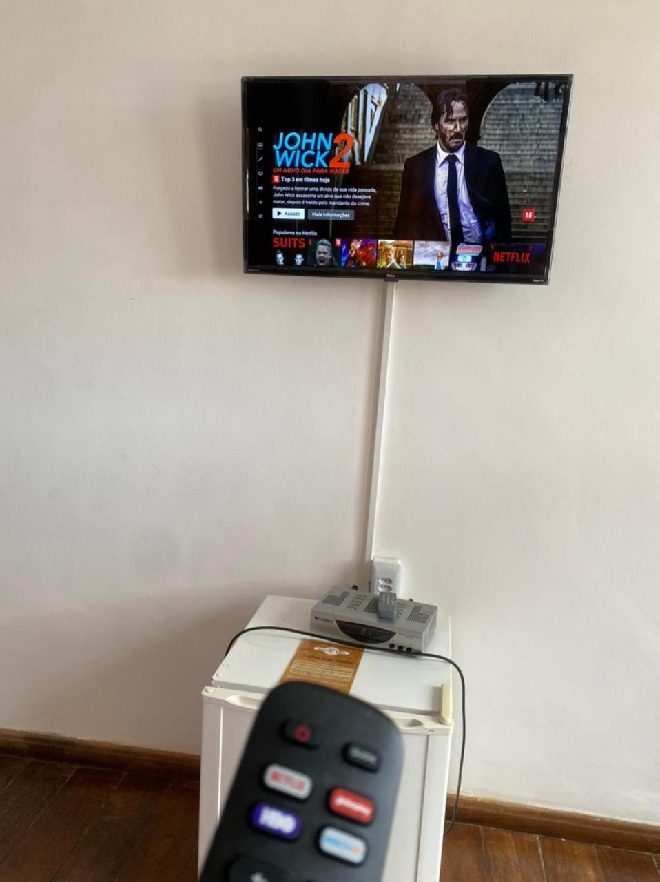 O frigobar gela bem e o chuveiro é ótimo.