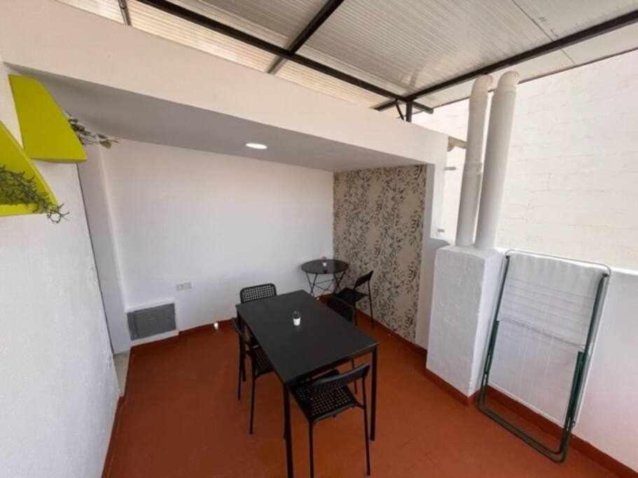 La terraza muy bonita para sentarse a trabajar o a tomar un café y la cocina está bien equipada.
