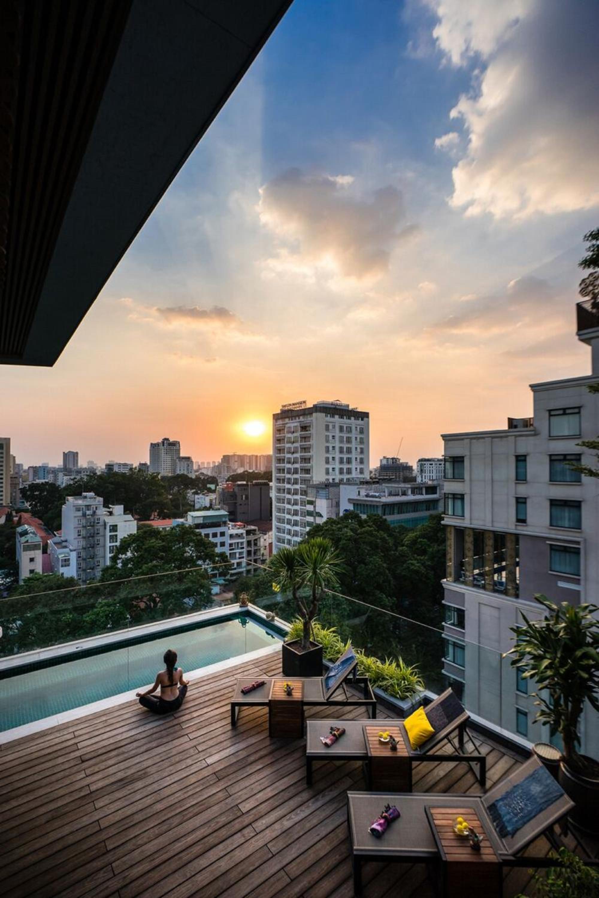 Le rooftop la piscine reposant après une grosse journée de chaleur