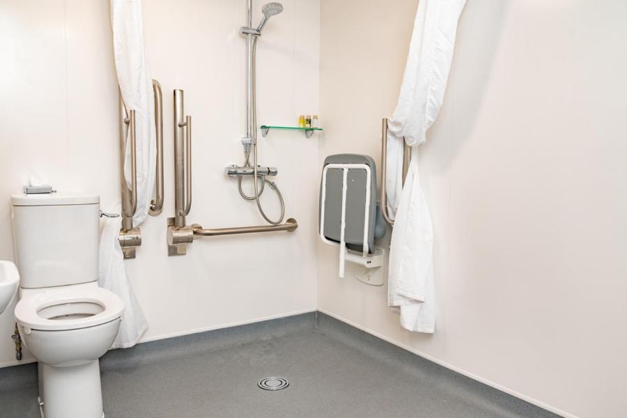 We were allocated room 19 with access to it via several corridors & stairways & through heavy fire doors (which accept is a necessity). The bathroom was along a corridor from the bedroom with 3 steps up to it. There was no sensor light in the corridor (which there are in other corridors) & as light switch not immediately outside bedroom door, & because of 3 steps to the bathroom, the corridor light was left on all night for safety. The shower is over the bath but not anti slip. No hooks to hang towels etc and no shelving to put toiletries on. Feedback on this aspect was given to reception.