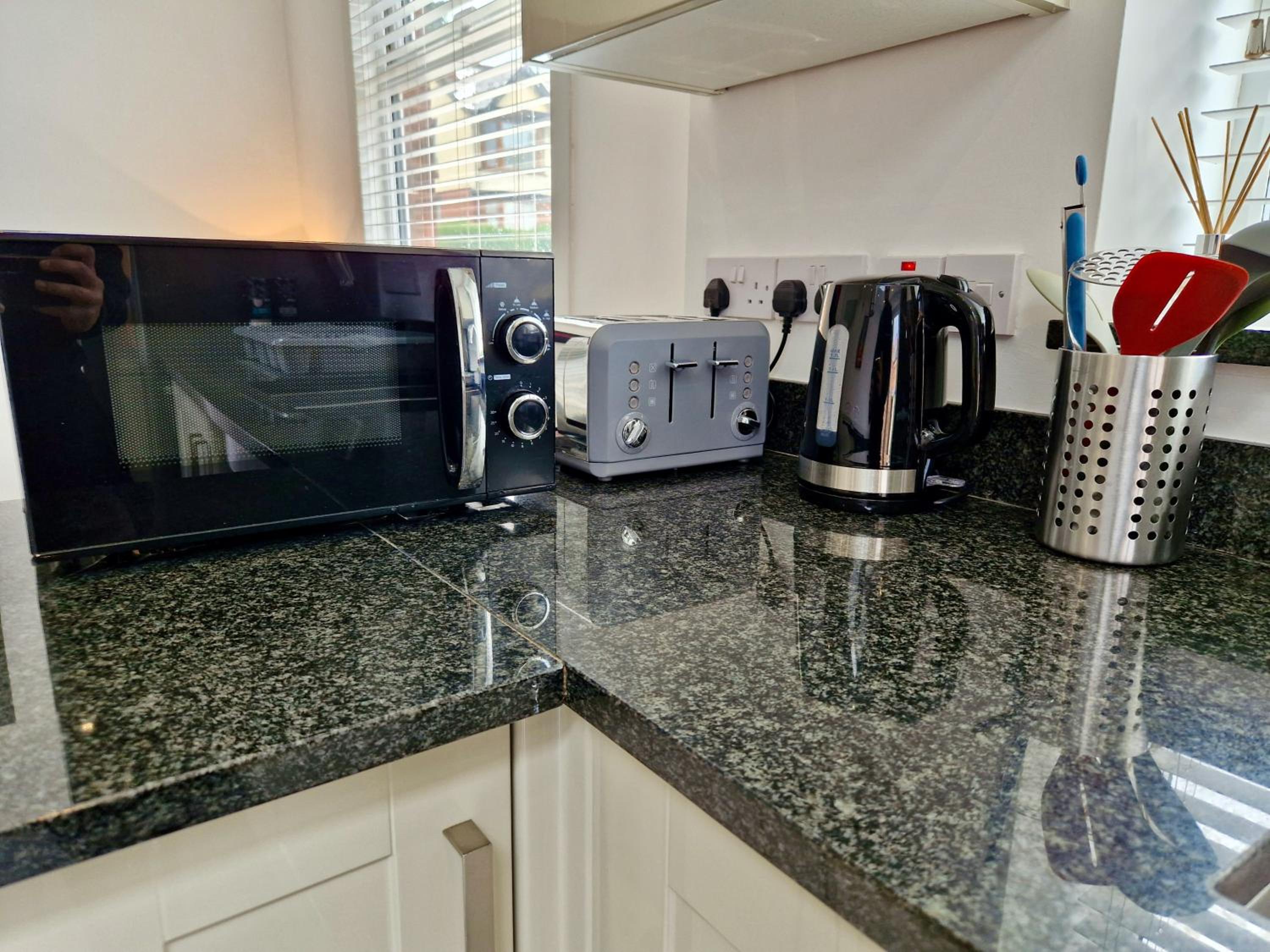 The bedroom carpet had to wear socks as it was very stained .Couldn't find the hair dryer till the day I left as it was very high and I'm small would be better in a drawer .Need more information maybe taxi numbers as I had a broken wrist olso local eating place's.