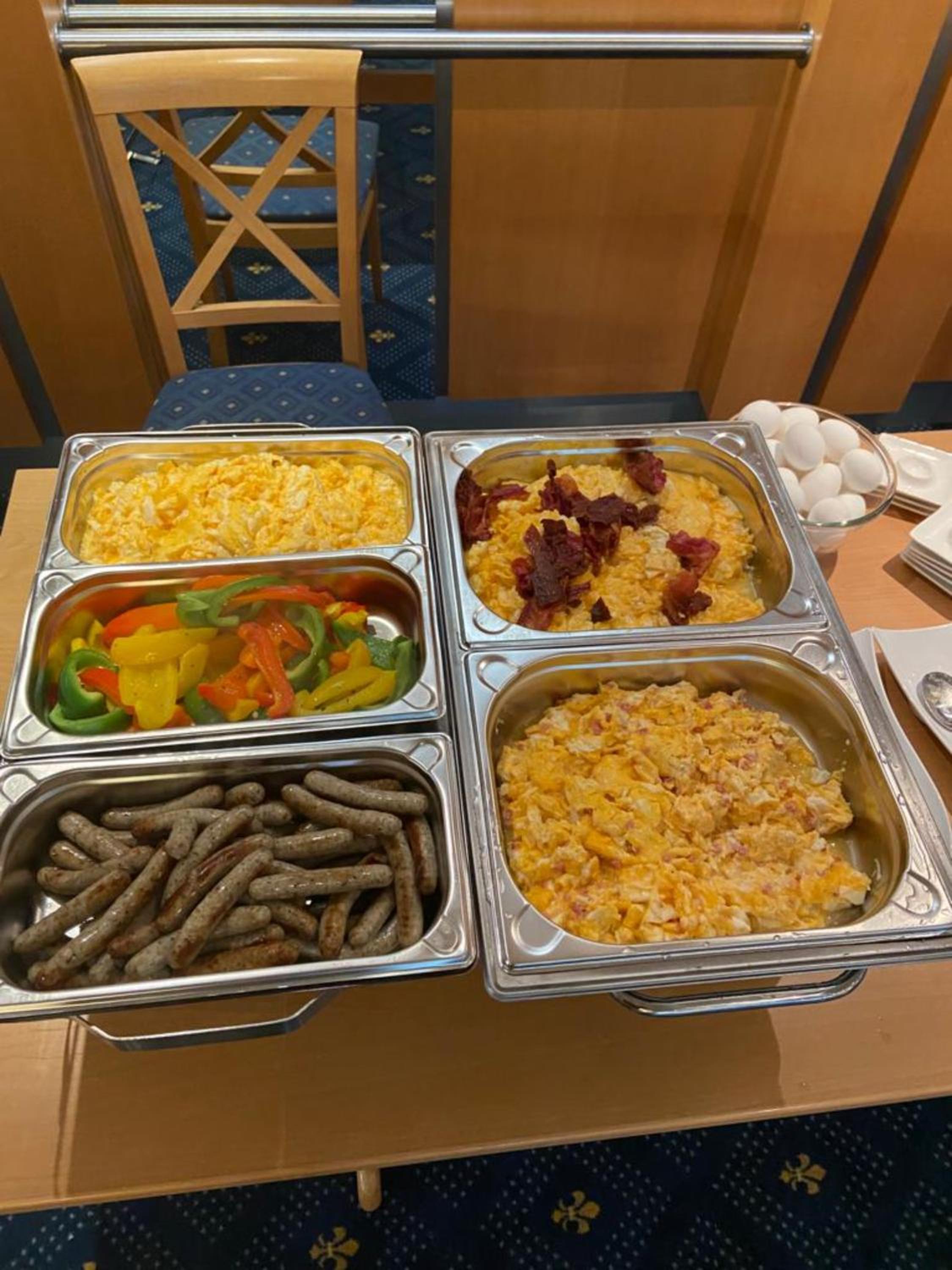 Смачний завтрак . Дуже зручне розташування: поряд зупинка автобусу, ресторани та кафе.