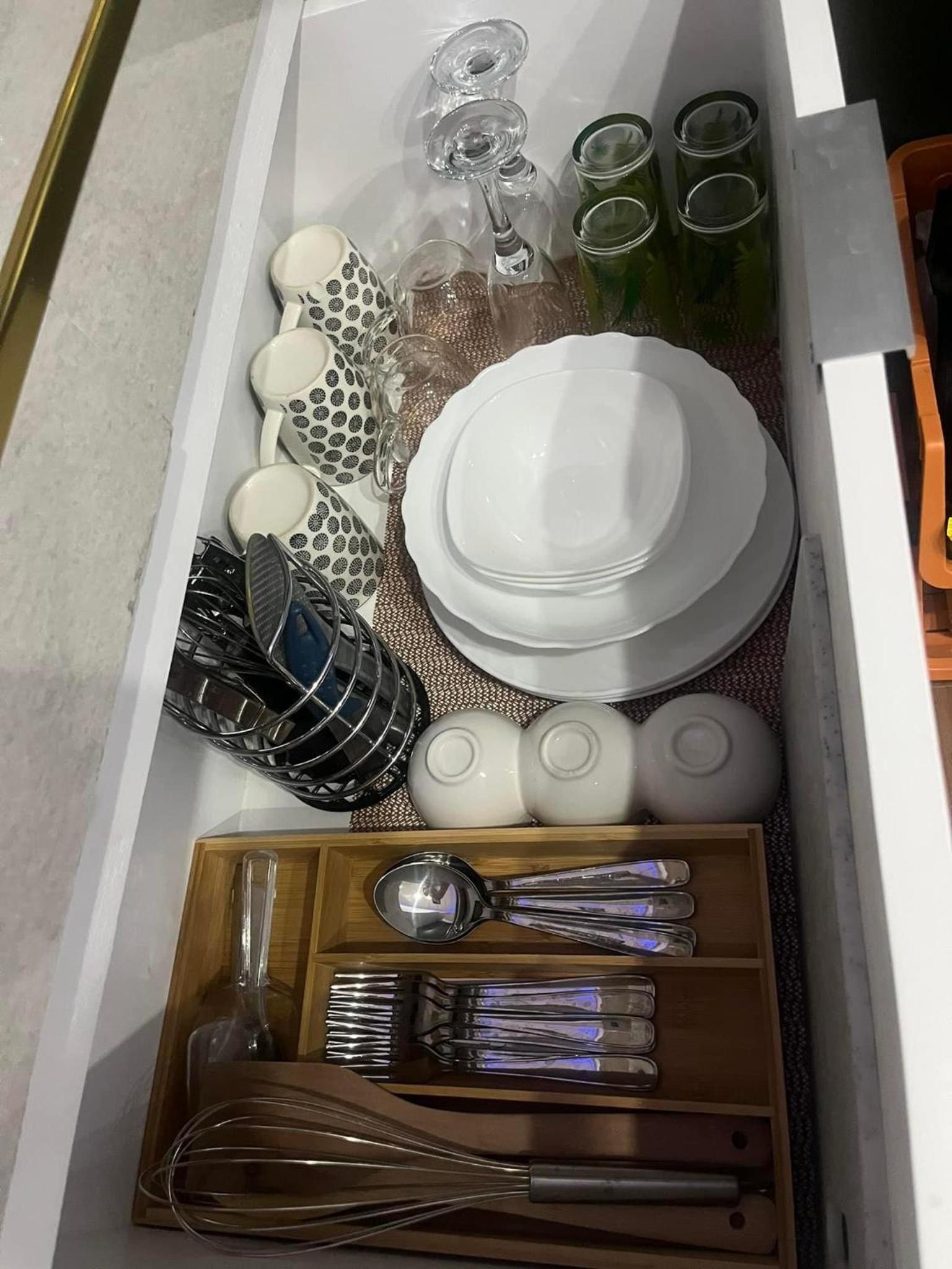 Indulge in luxury with a satellite flat-screen TV, a fully equipped kitchen including a dishwasher, fridge, and stovetop. The private bathroom offers bathrobes and slippers for a pampering stay.