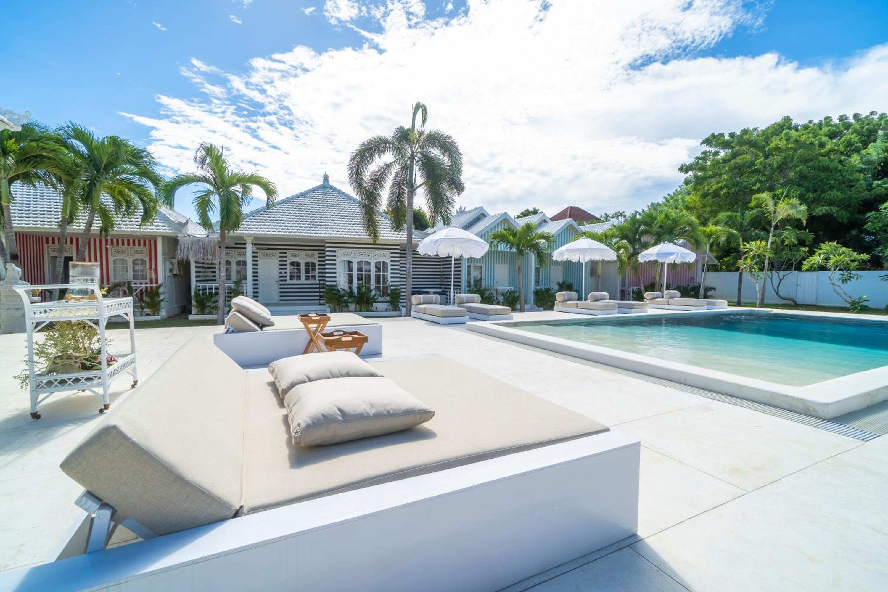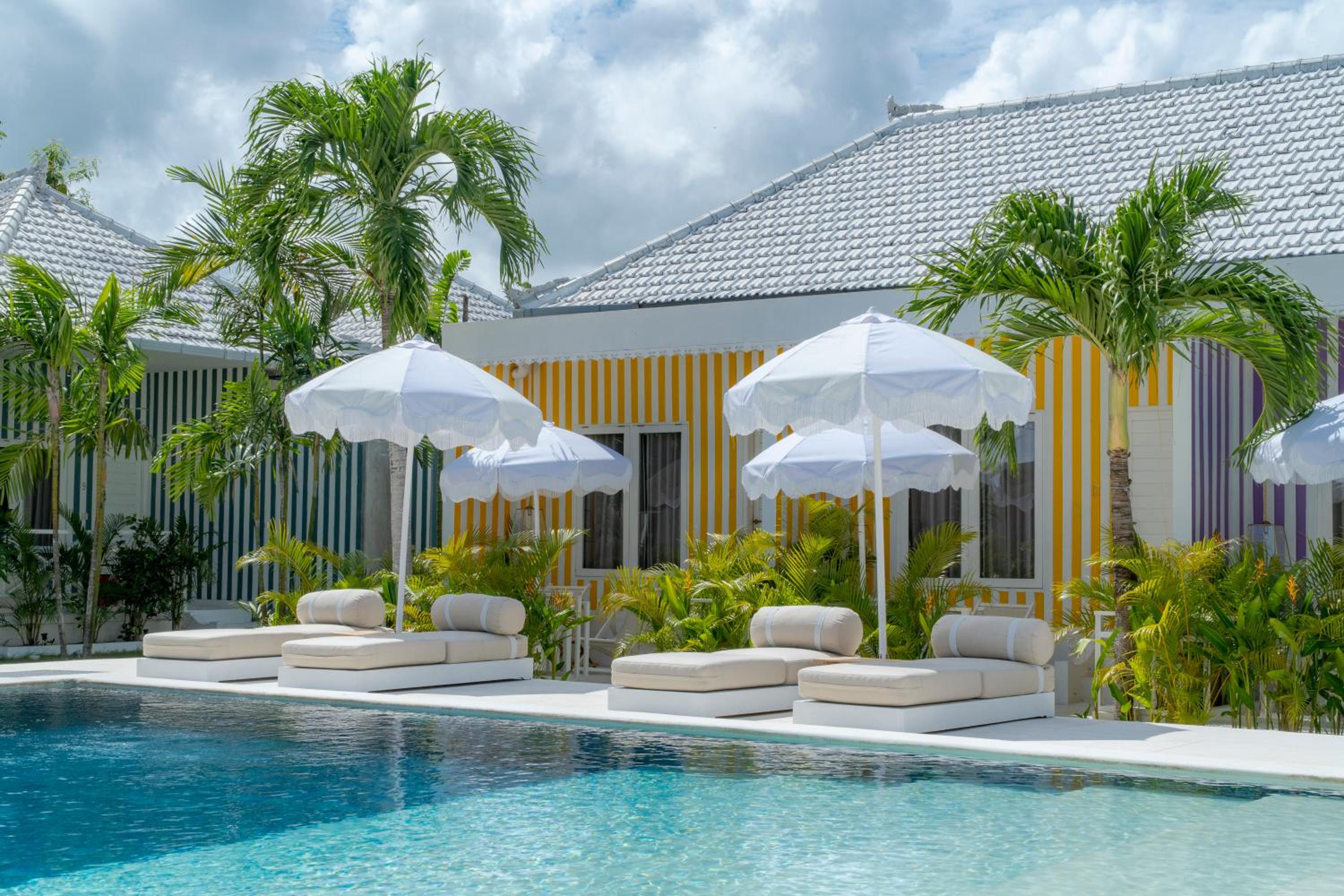 Enjoy stunning pool views at Ria Uluwatu, Tropical Chic Hotel with its outdoor swimming pool and lush garden.