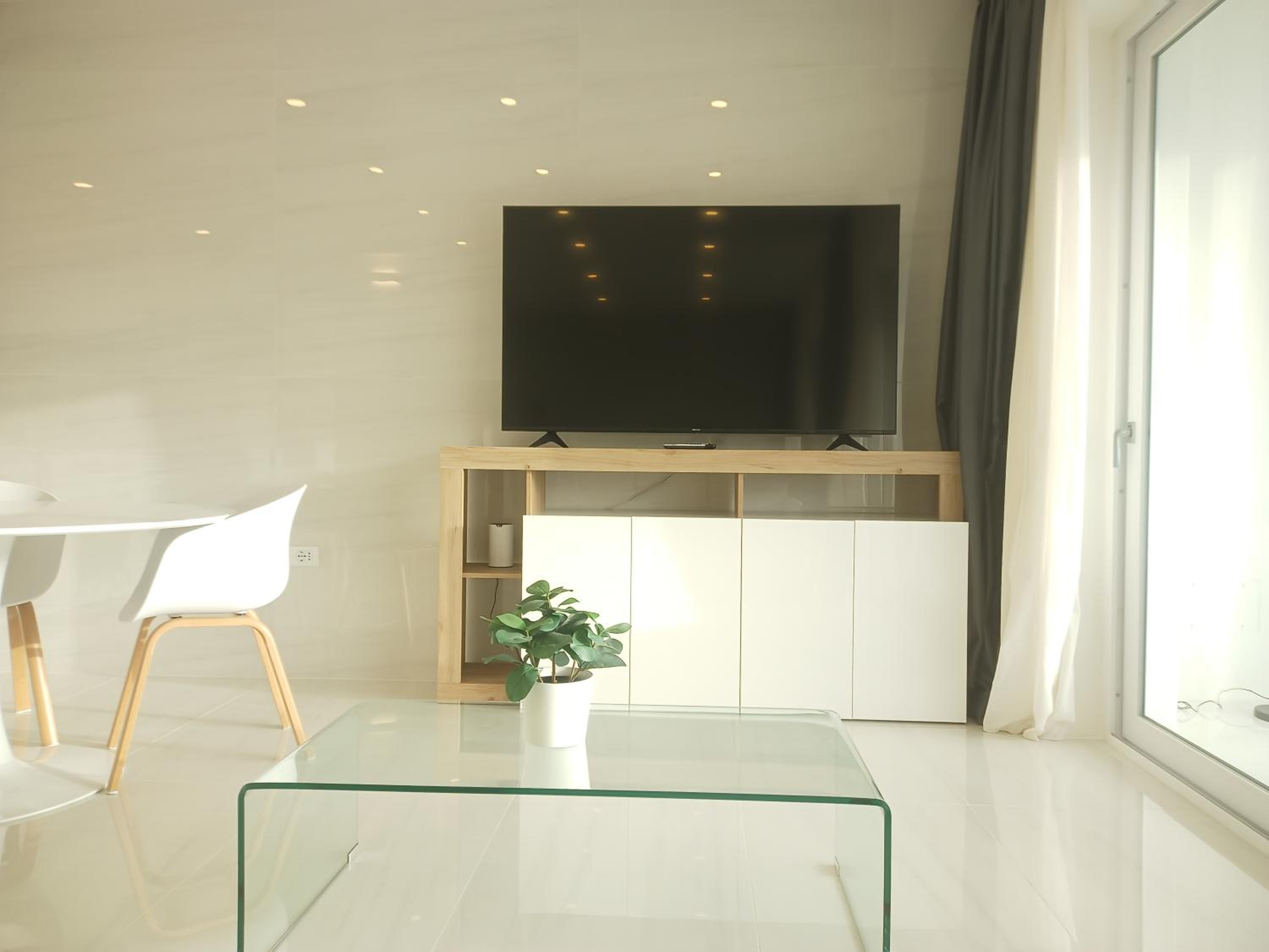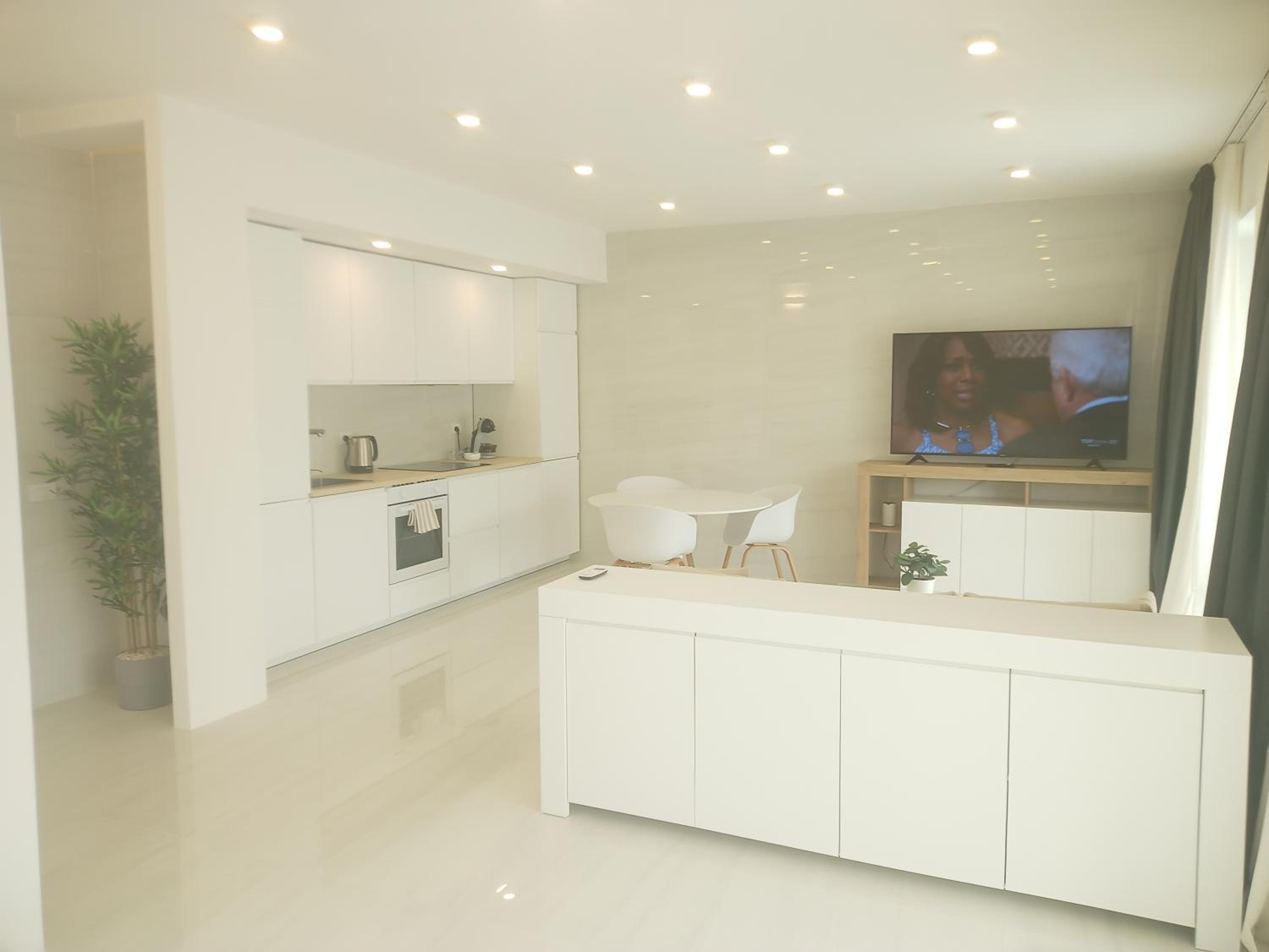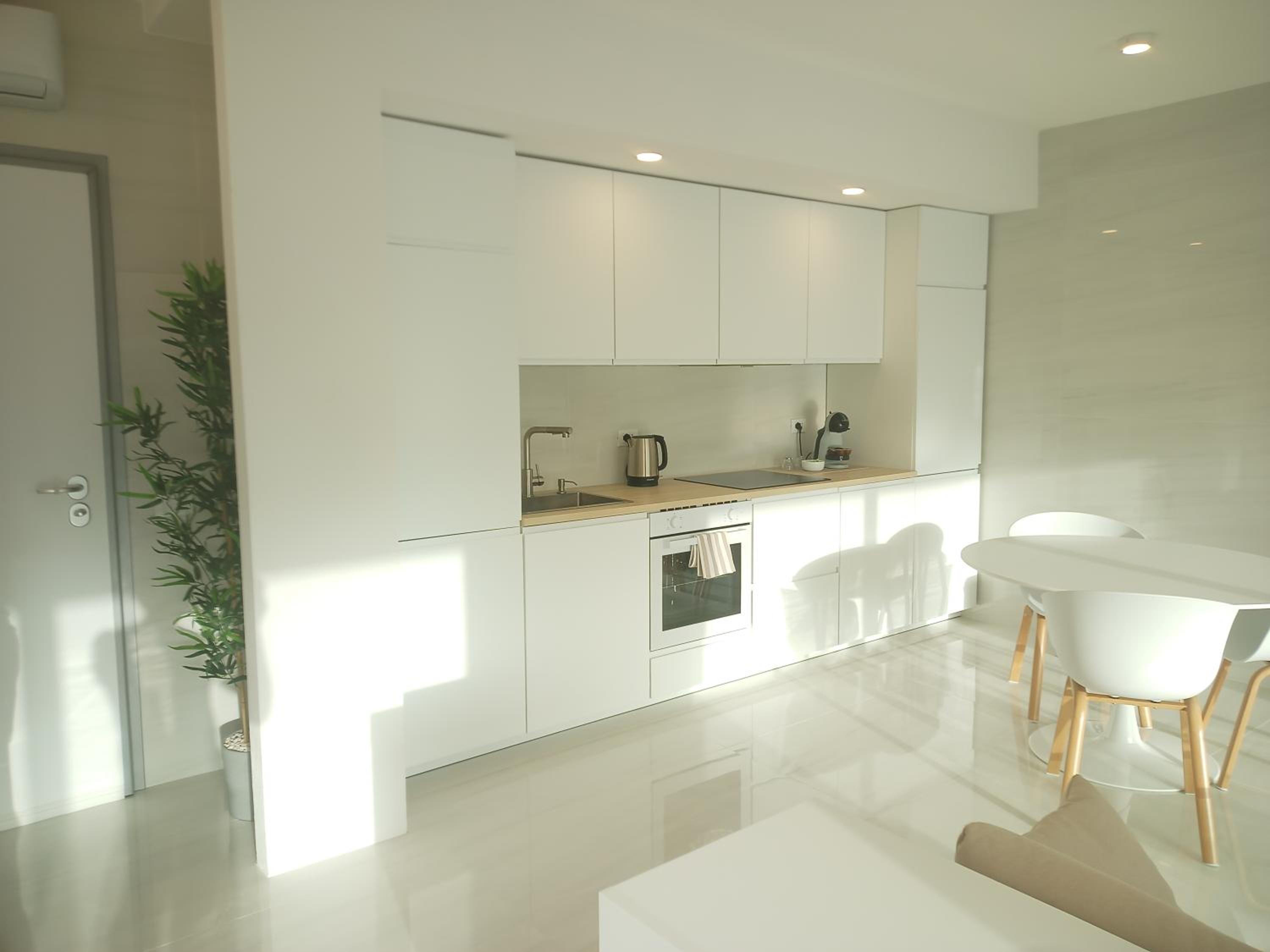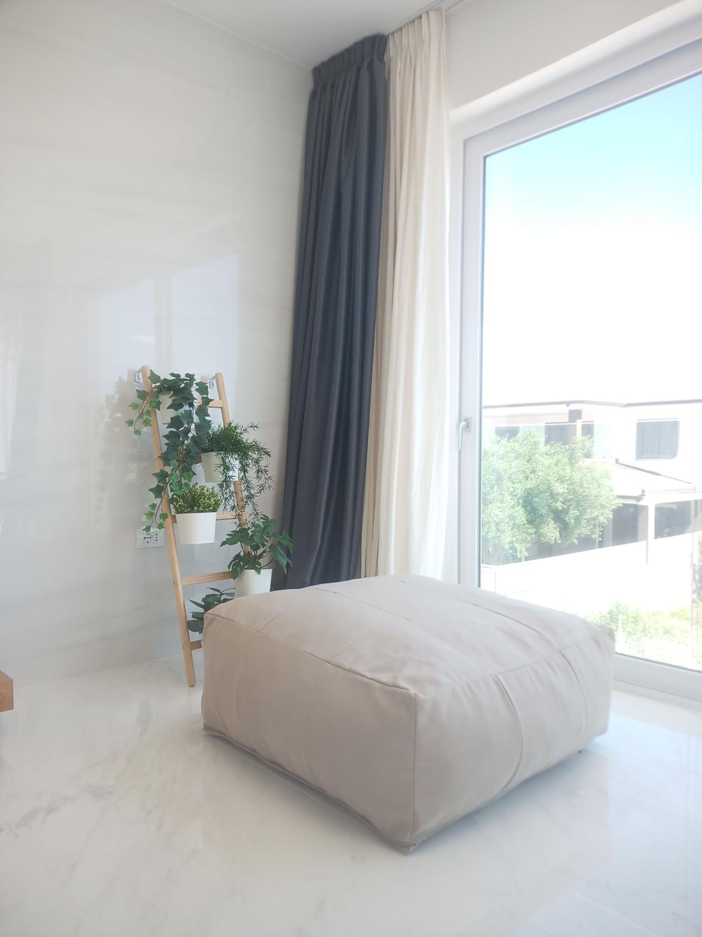 Prachtig ingerichte en ruime kamer met nieuwe materialen en veel wit marmer. Zeer ruime badkamer met rainshower. Alles ‘zorgvuldig gedesignd’. Klein terras met bank en twee ligstoelen. Centrum op 10 minuten lopen. Voor het strand heb je een auto nodig.