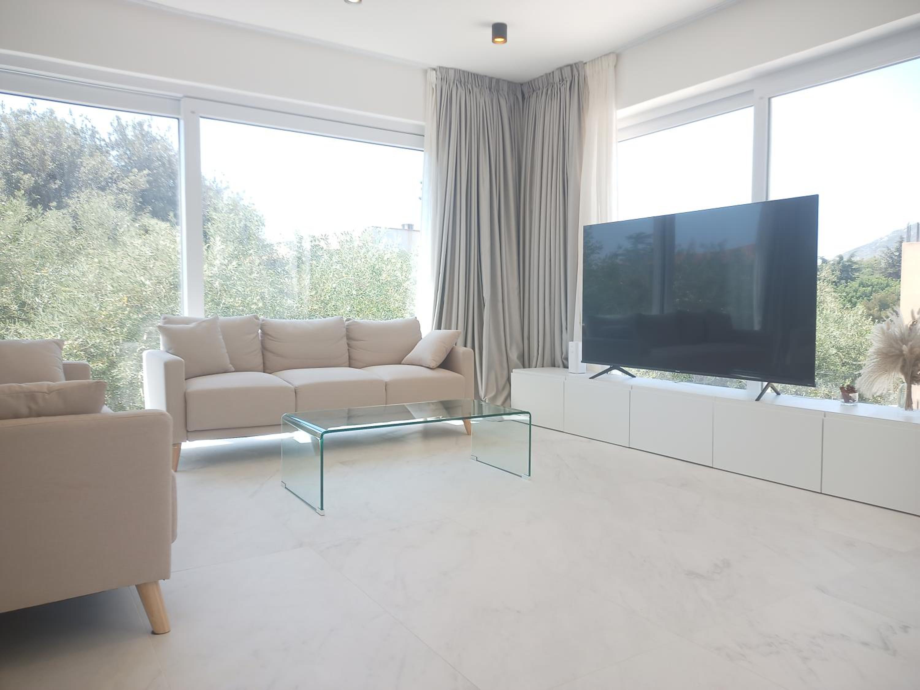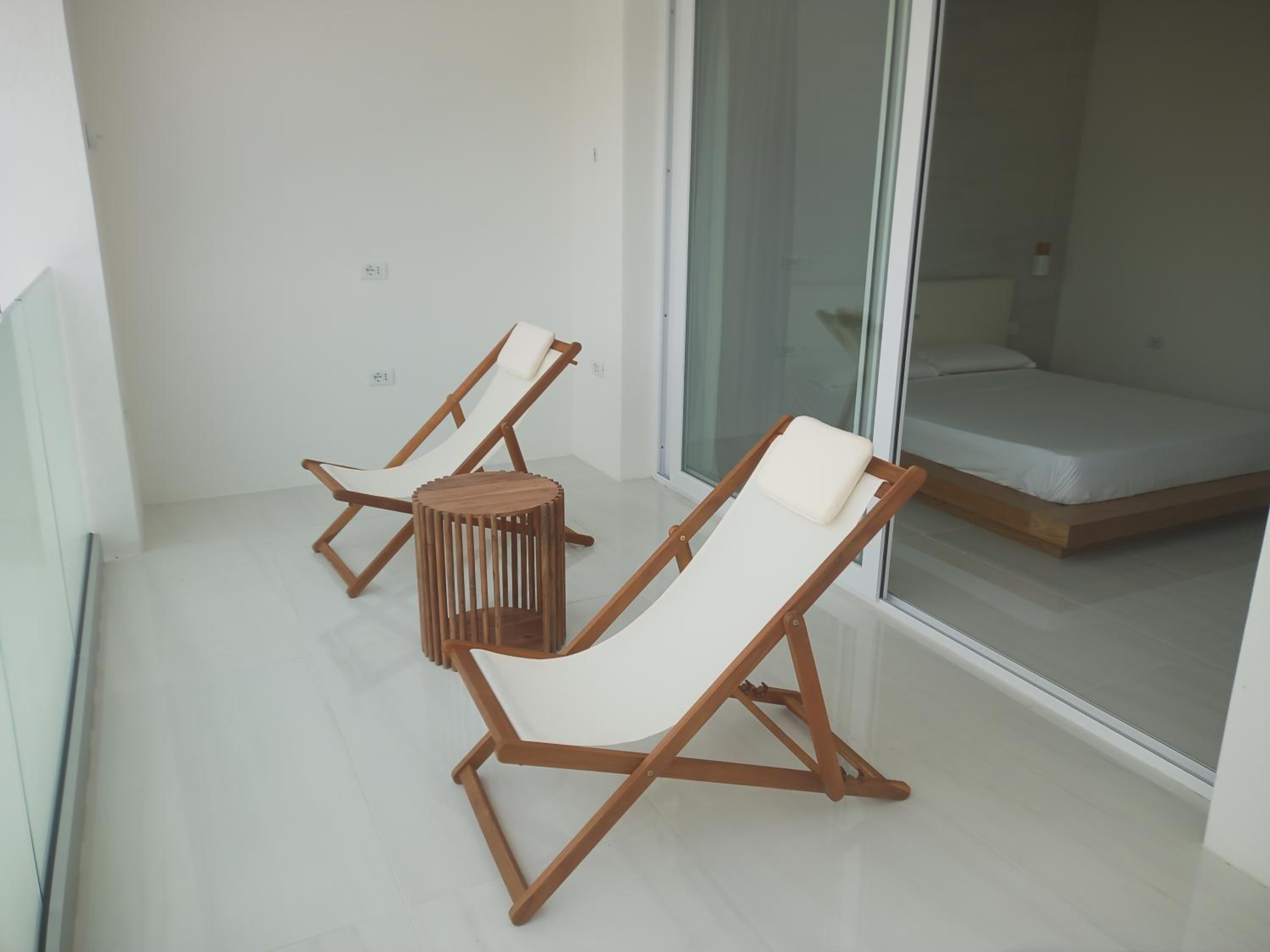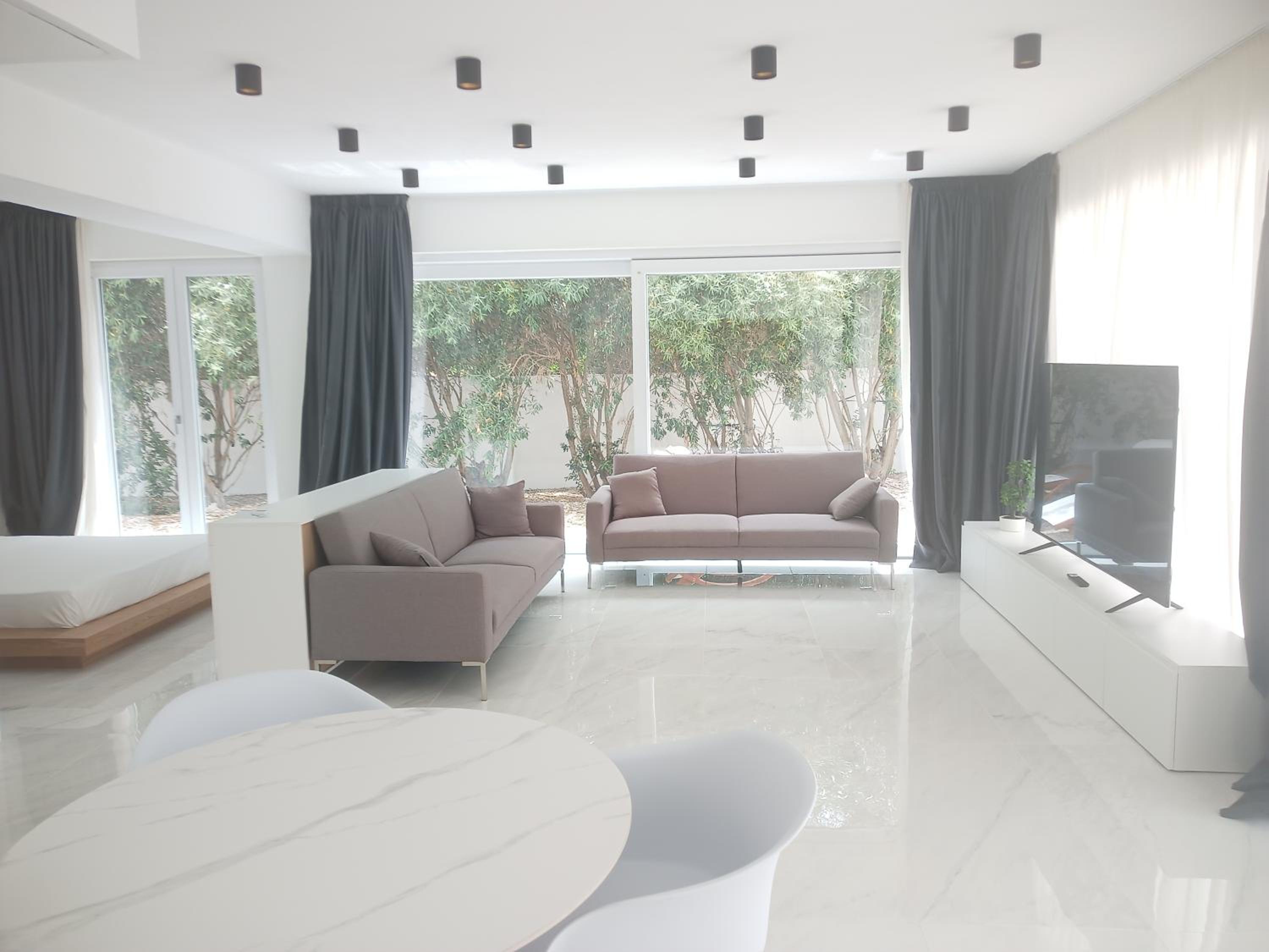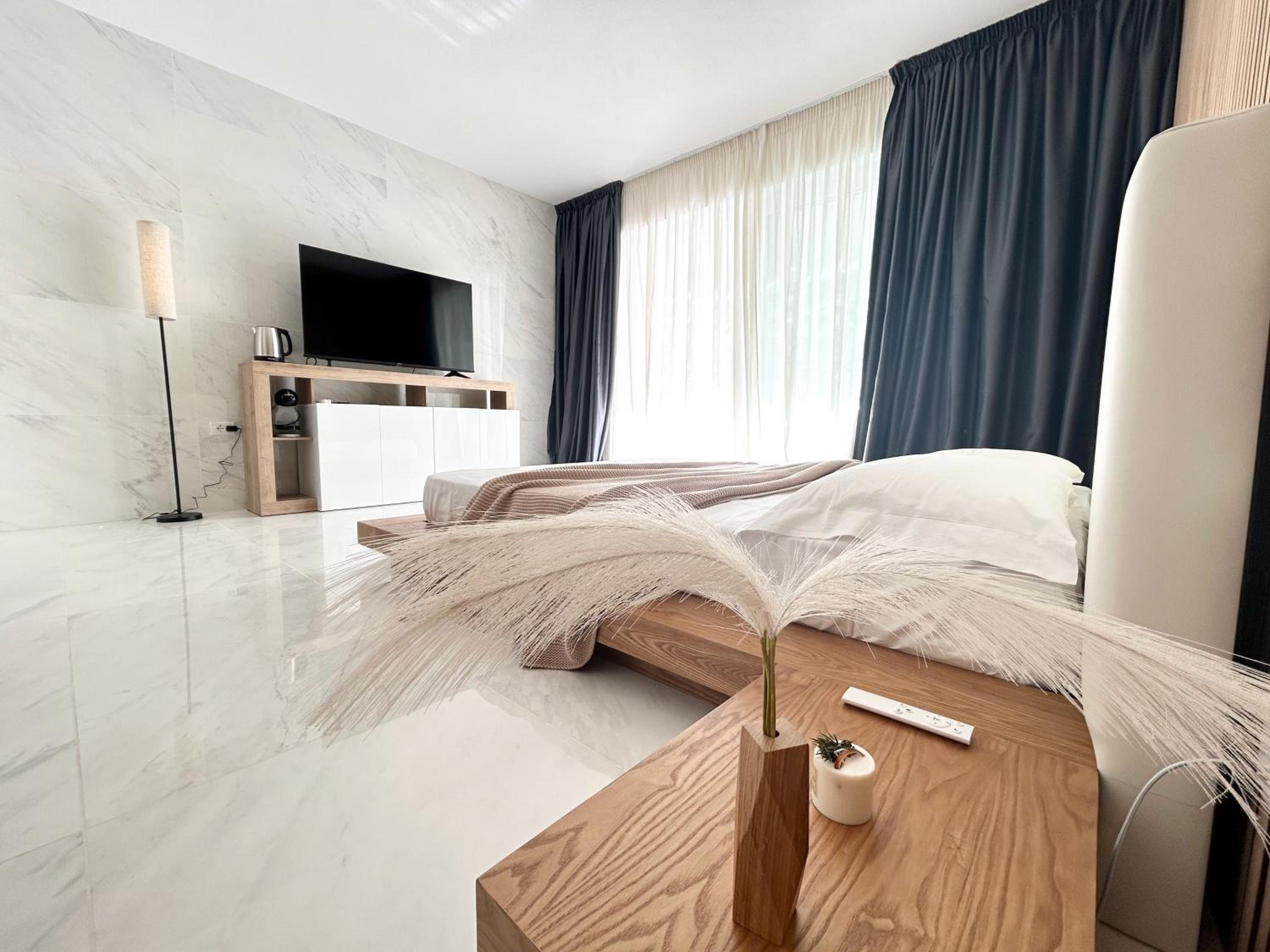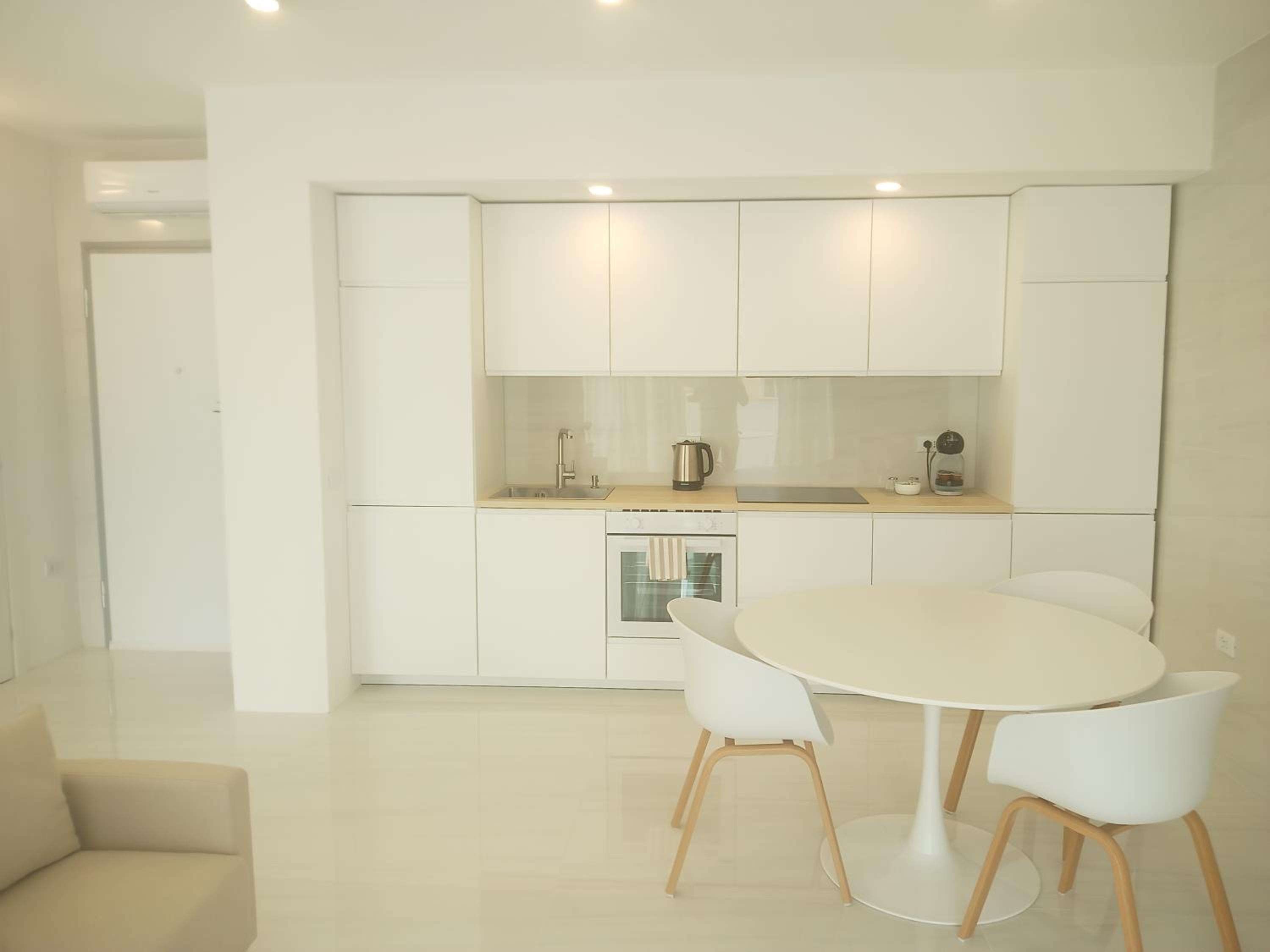 Prachtig ingerichte en ruime kamer met nieuwe materialen en veel wit marmer. Zeer ruime badkamer met rainshower. Alles ‘zorgvuldig gedesignd’. Klein terras met bank en twee ligstoelen. Centrum op 10 minuten lopen. Voor het strand heb je een auto nodig.