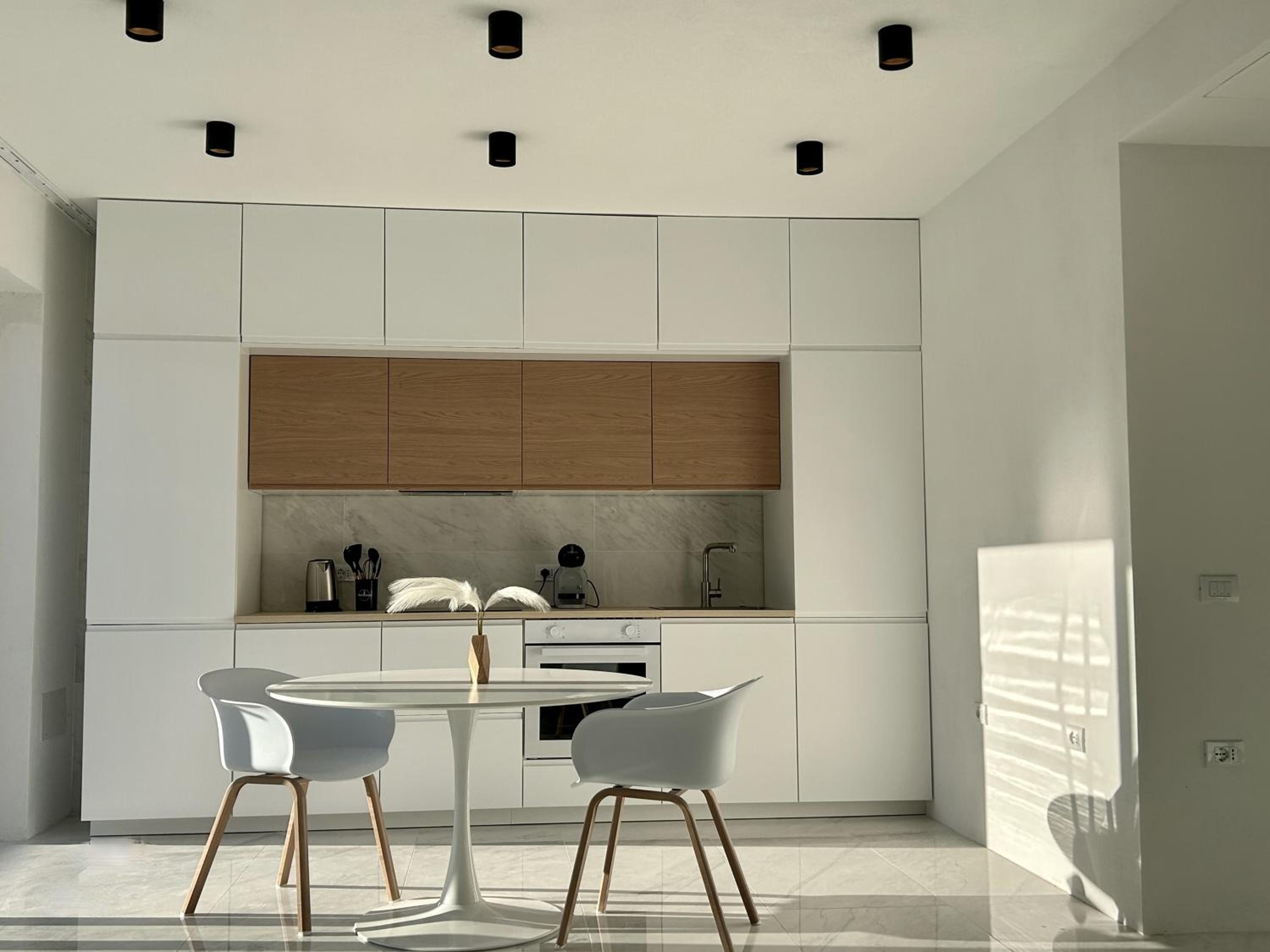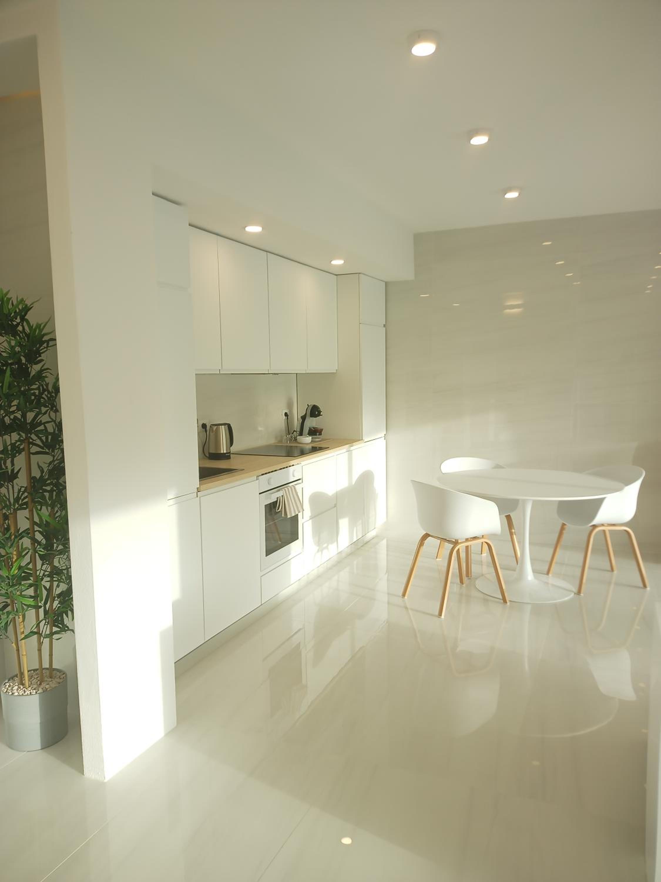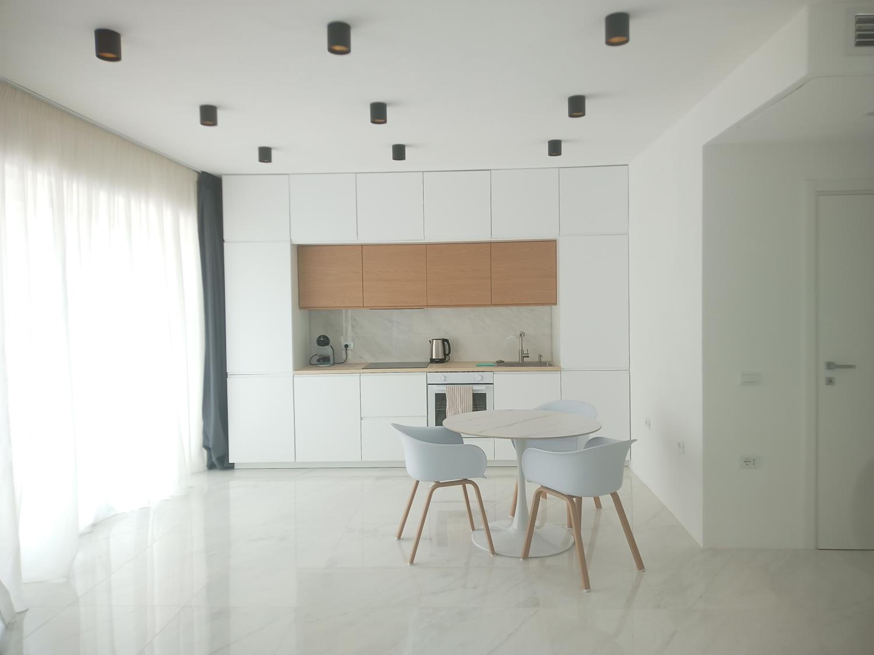 The modern look and feel of the apartment is very nice and the rooms are very spacious. The location is a little bit outside of the historic center of the city but everything is well within walking distance.