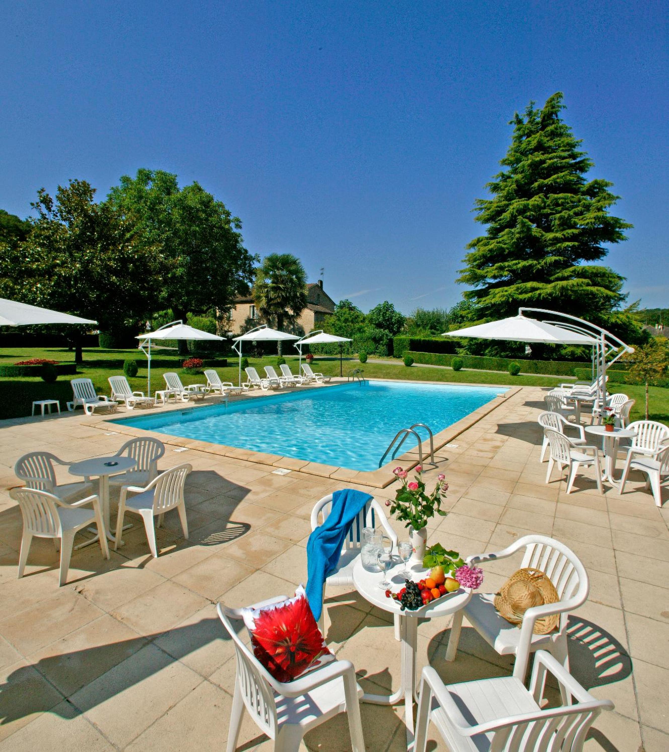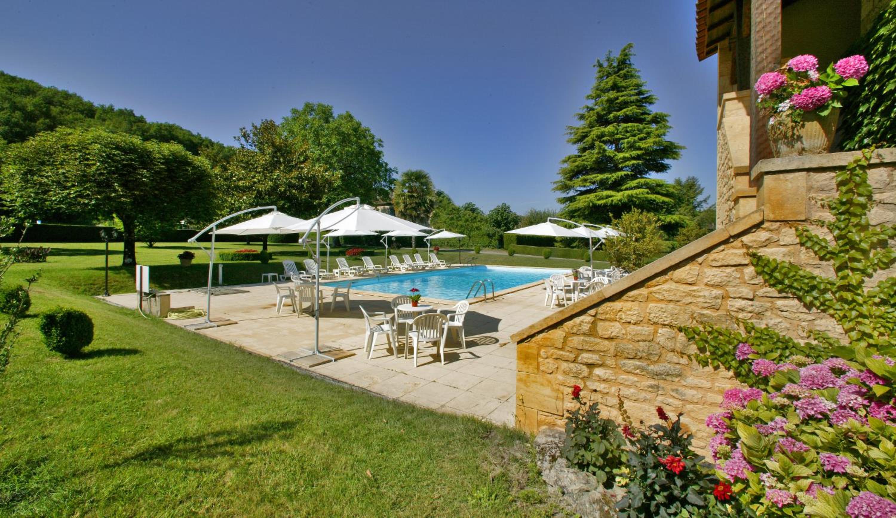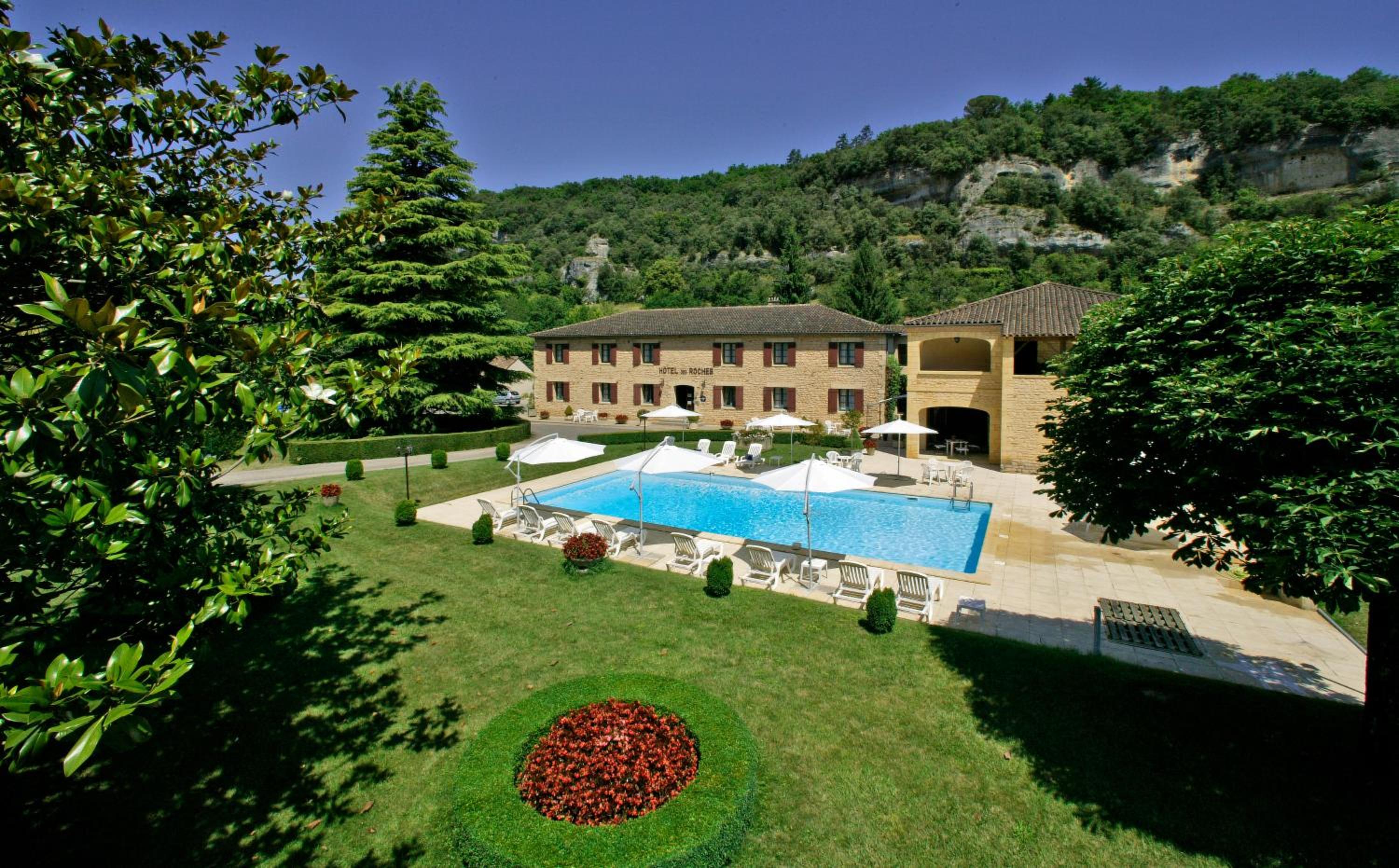 Experience the tranquility of the Hôtel des Roches, offering 41 air-conditioned rooms in a serene green setting at the foot of Les Eyzies cliffs.